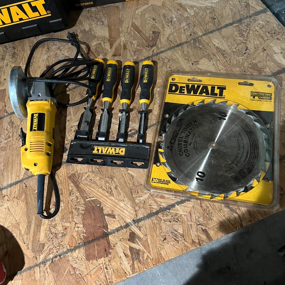 Dewalt Tools Lot - Grinder, Chisel Set, Saw Blade