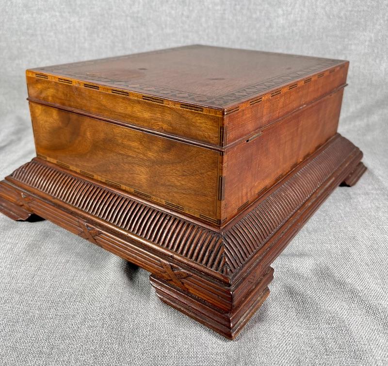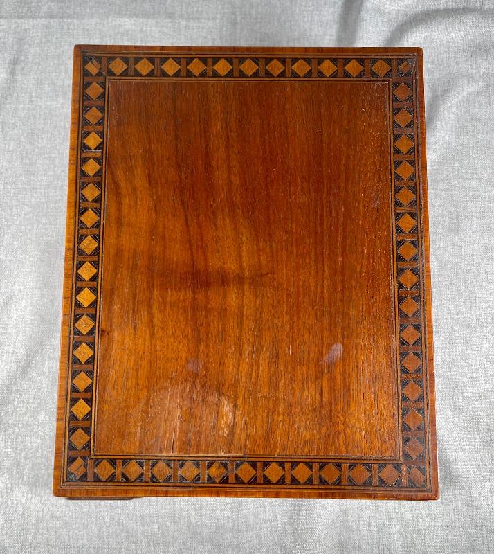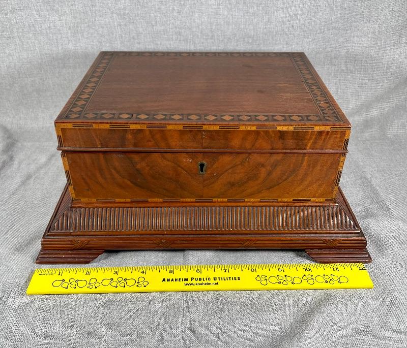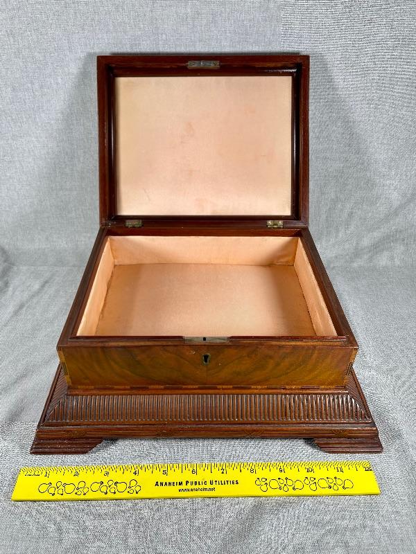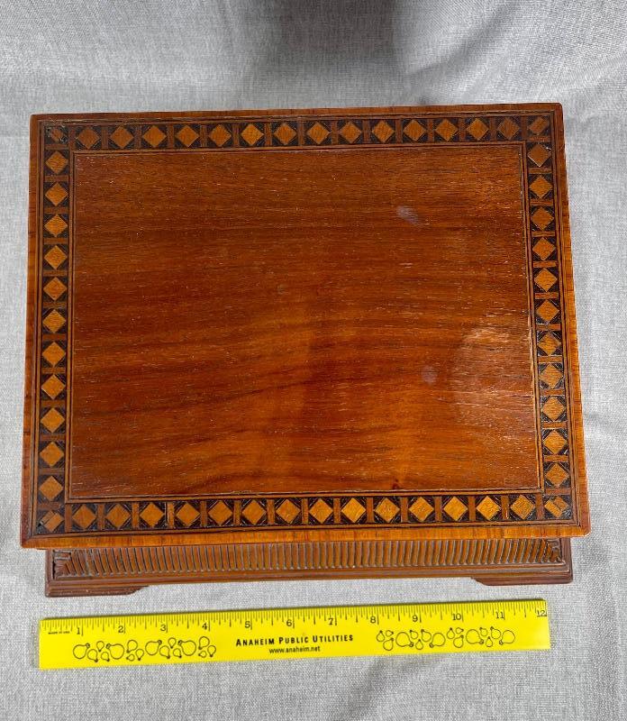 Vintage Large 12" Inlaid Design Lidded Wood Box