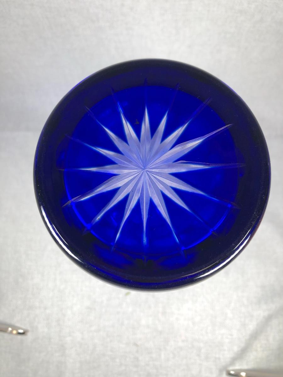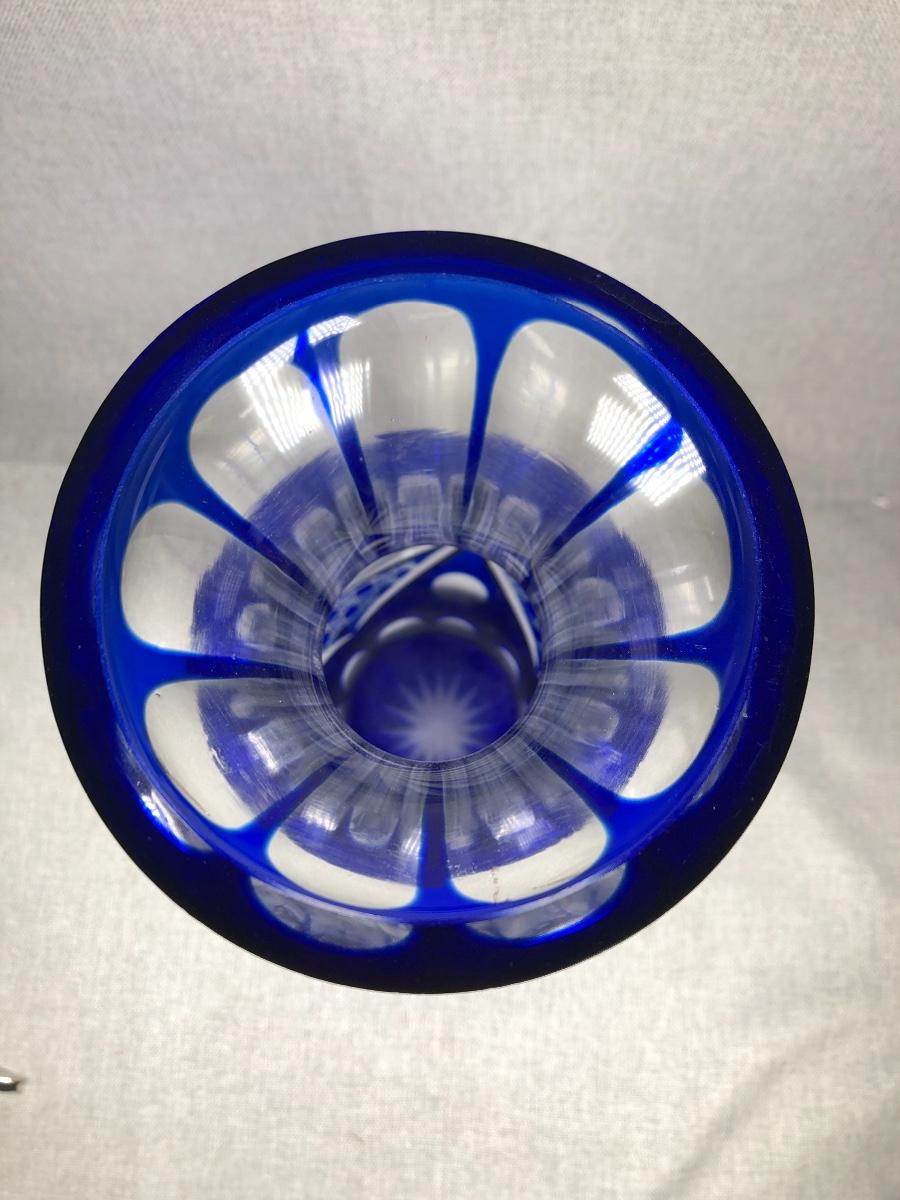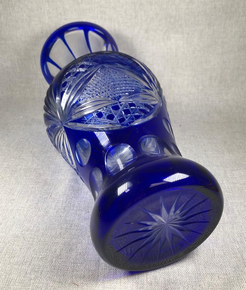 Cobalt Blue Cut to Clear Crystal Glass Flower Vase
