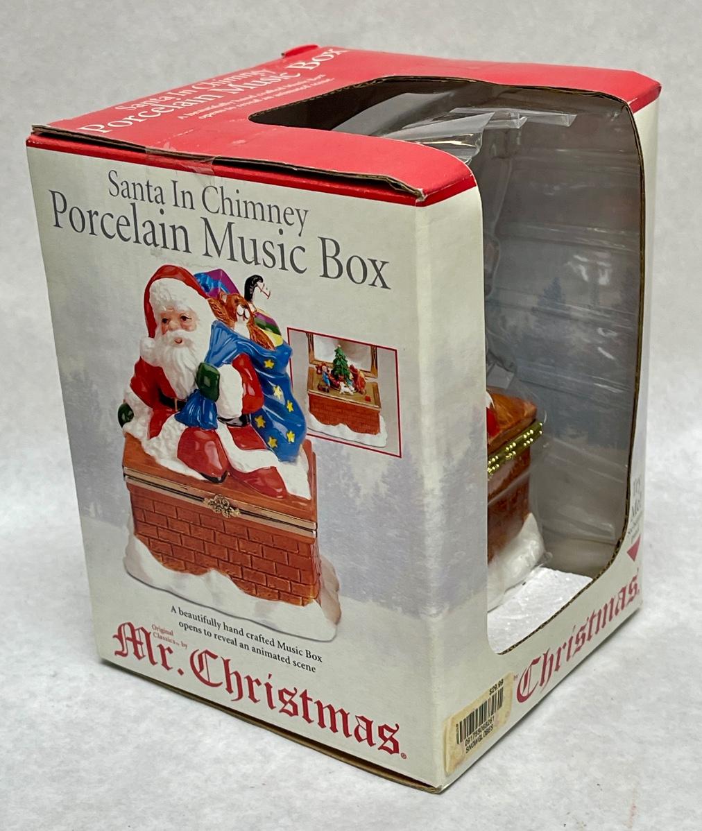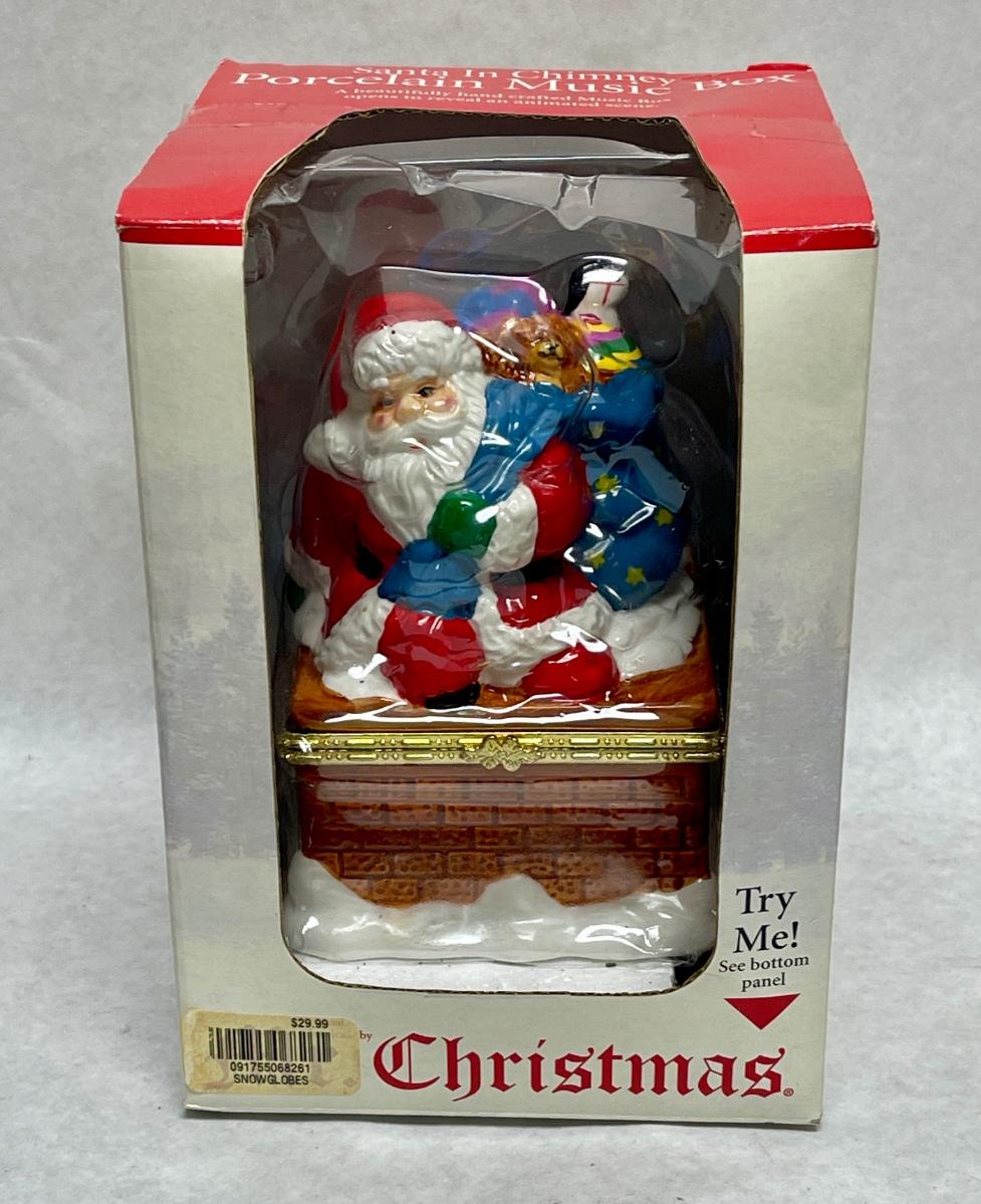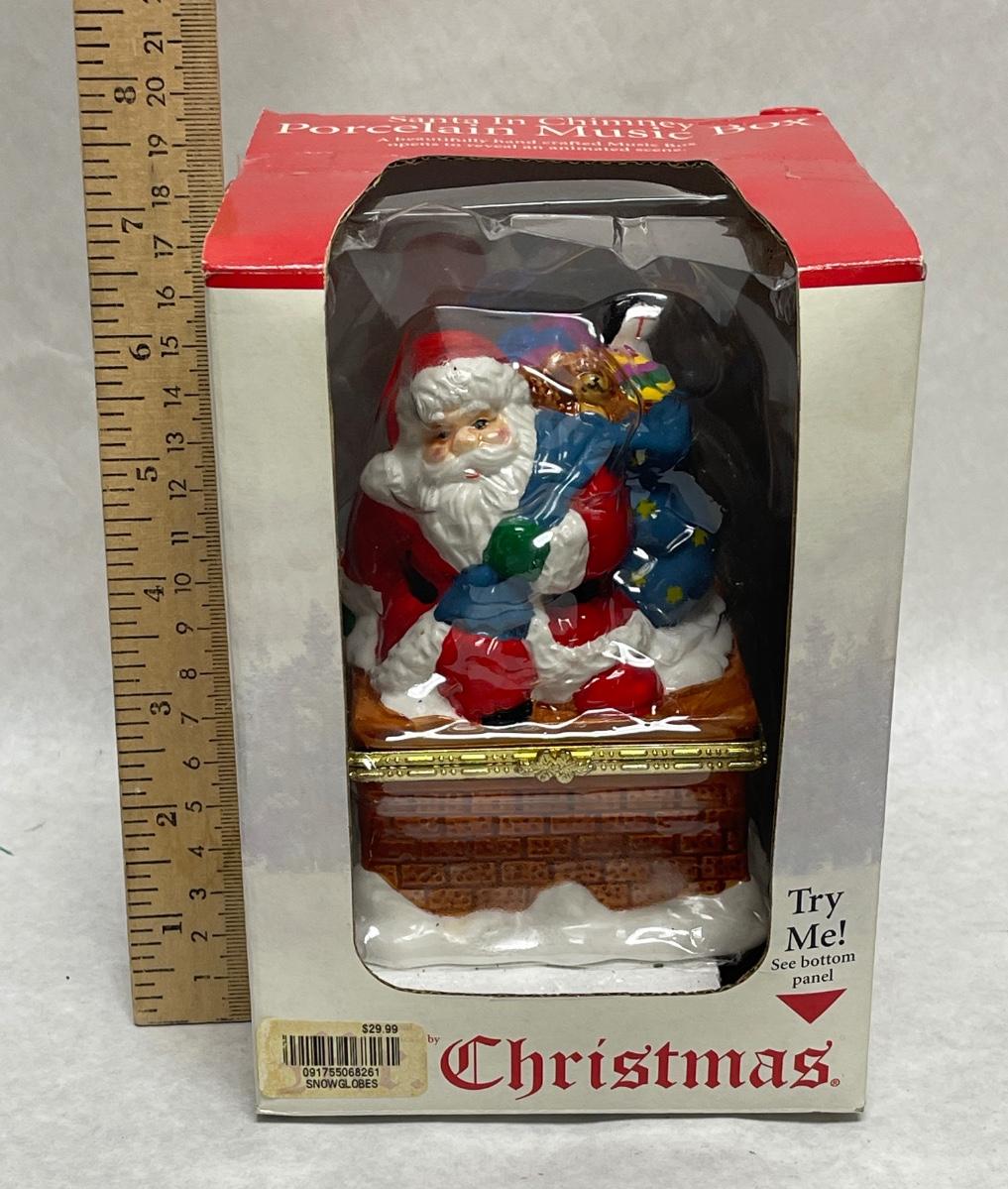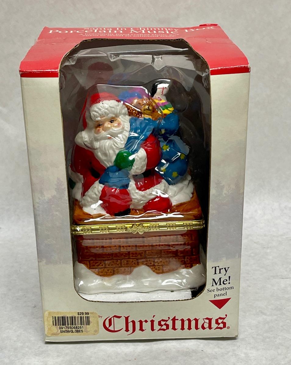 Santa In Chimney Porcelain Music Box