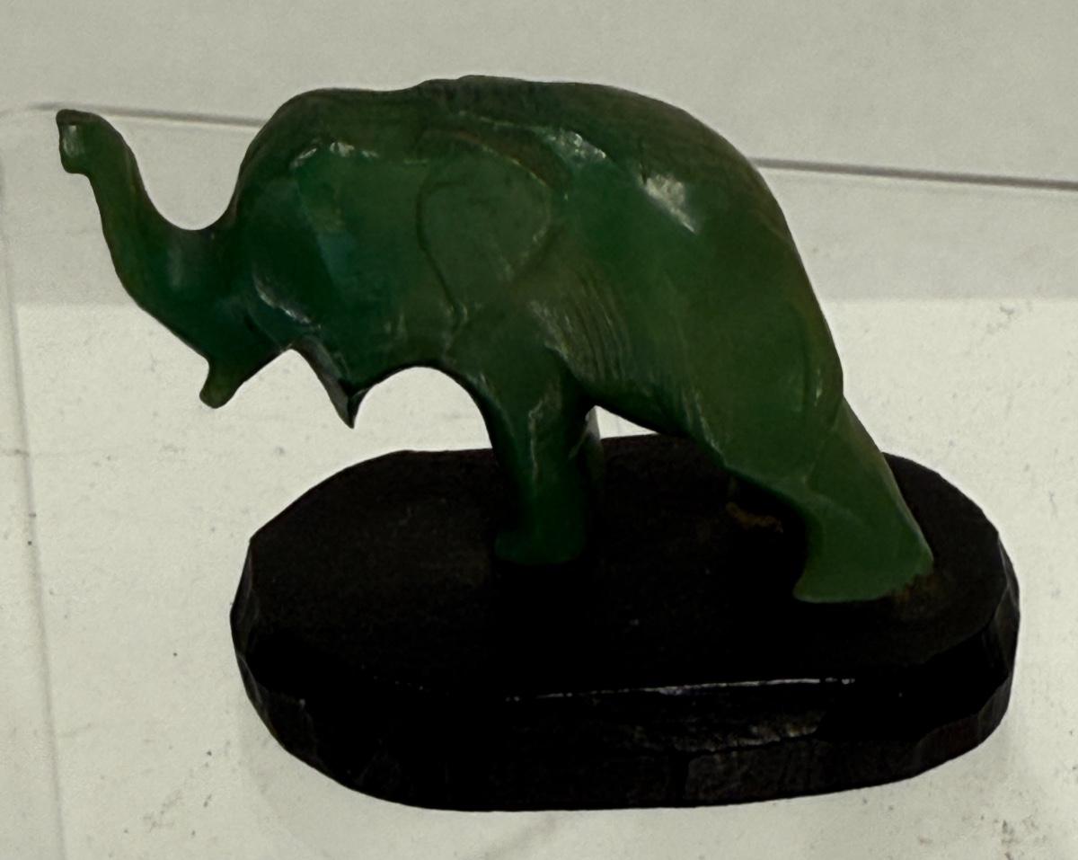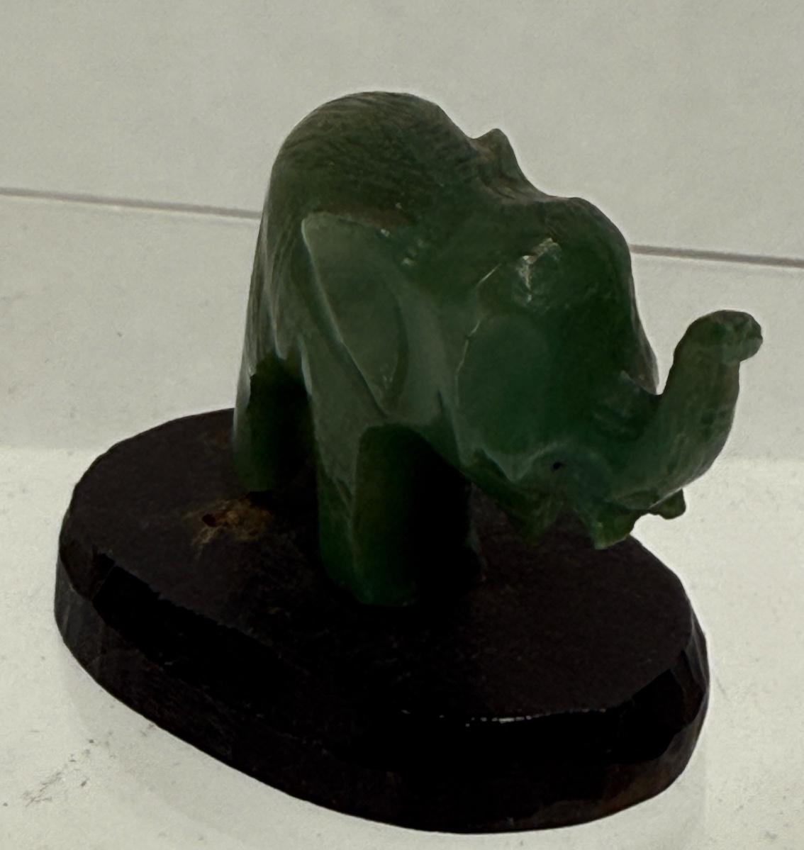 Vintage Hand Carved Dark Green Jade Elephant
