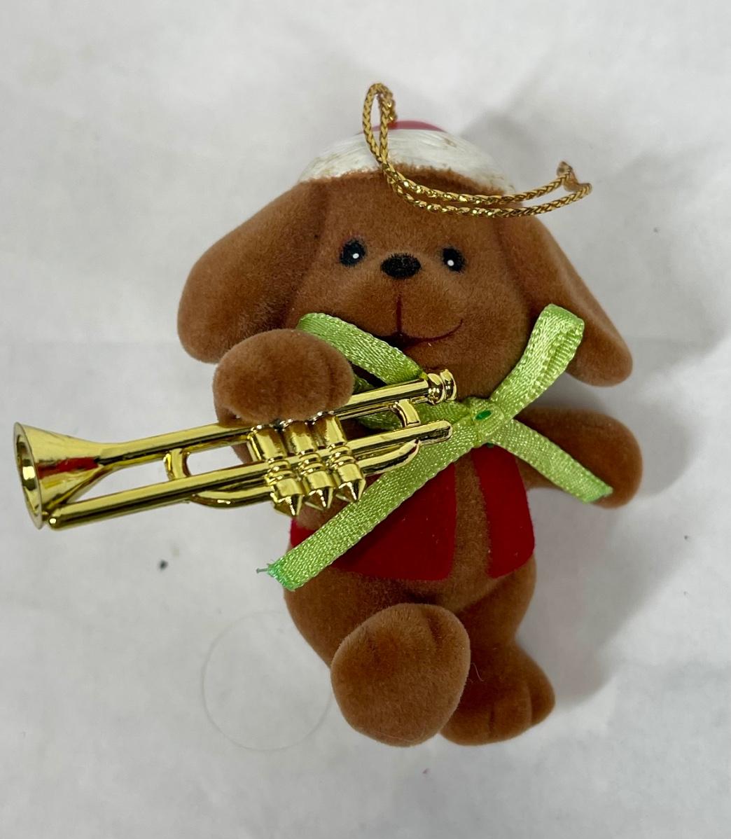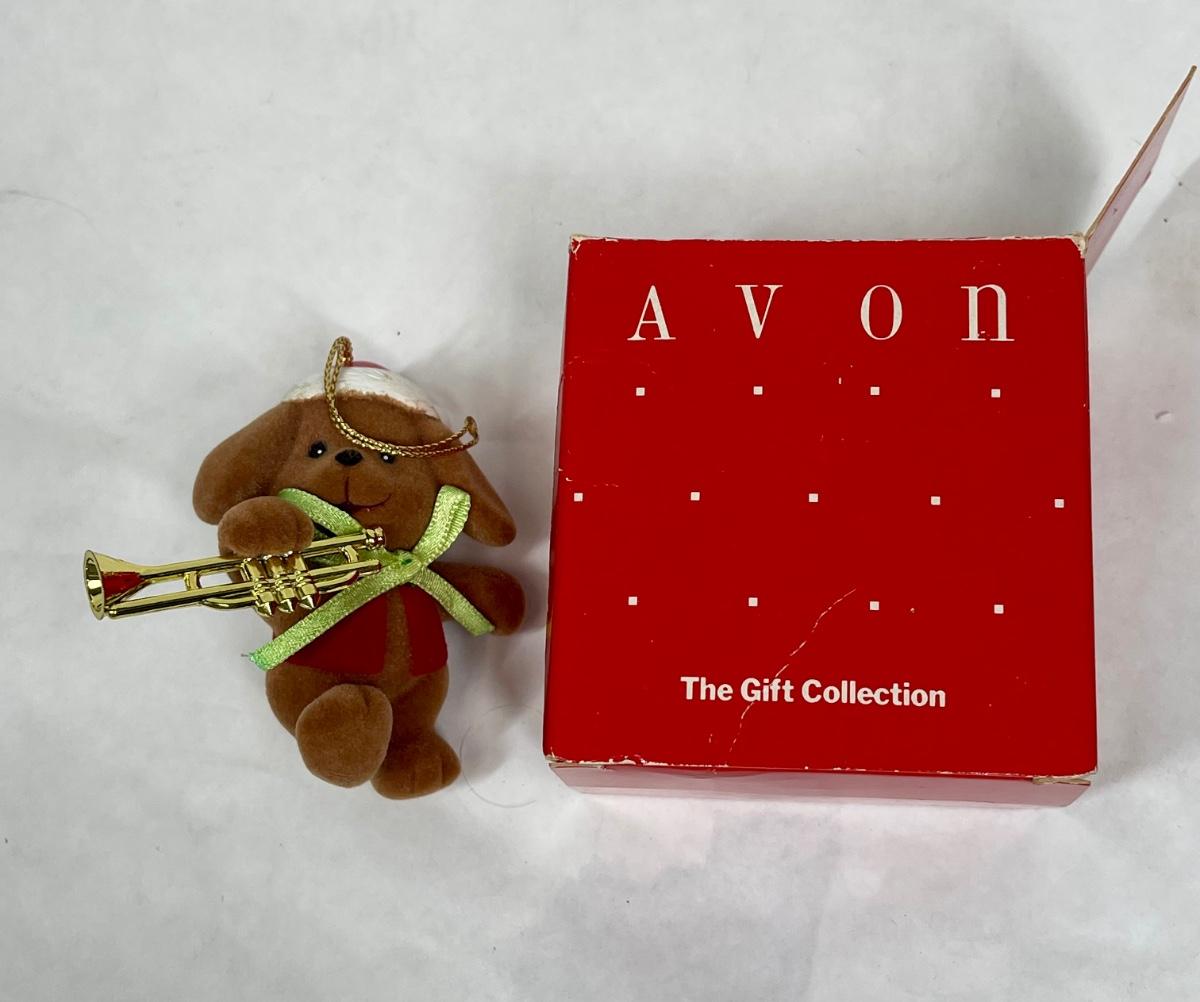Avon Gifts Flocked Puppy Dog with Musical Instrument Ornament