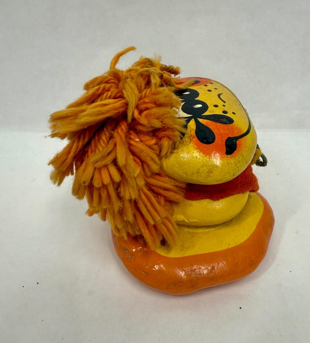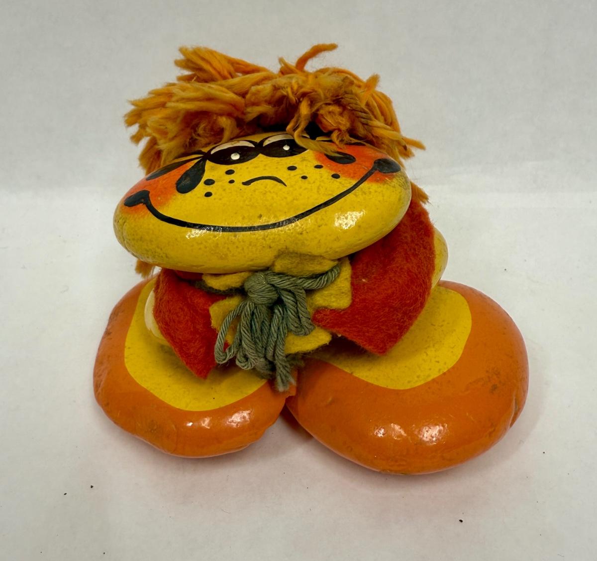 VIntage 1970's Kitsch Painted River Rock Figure Handcrafted Orange Yellow