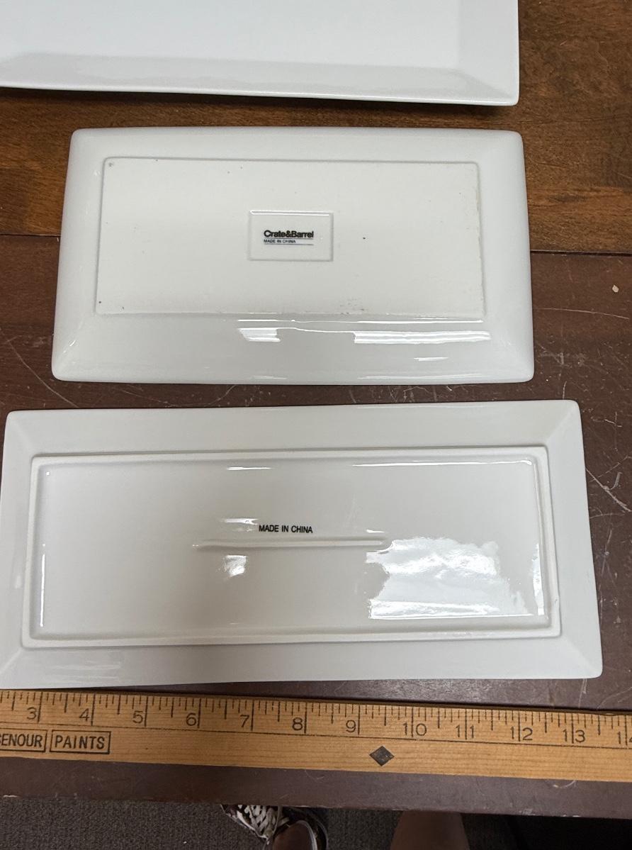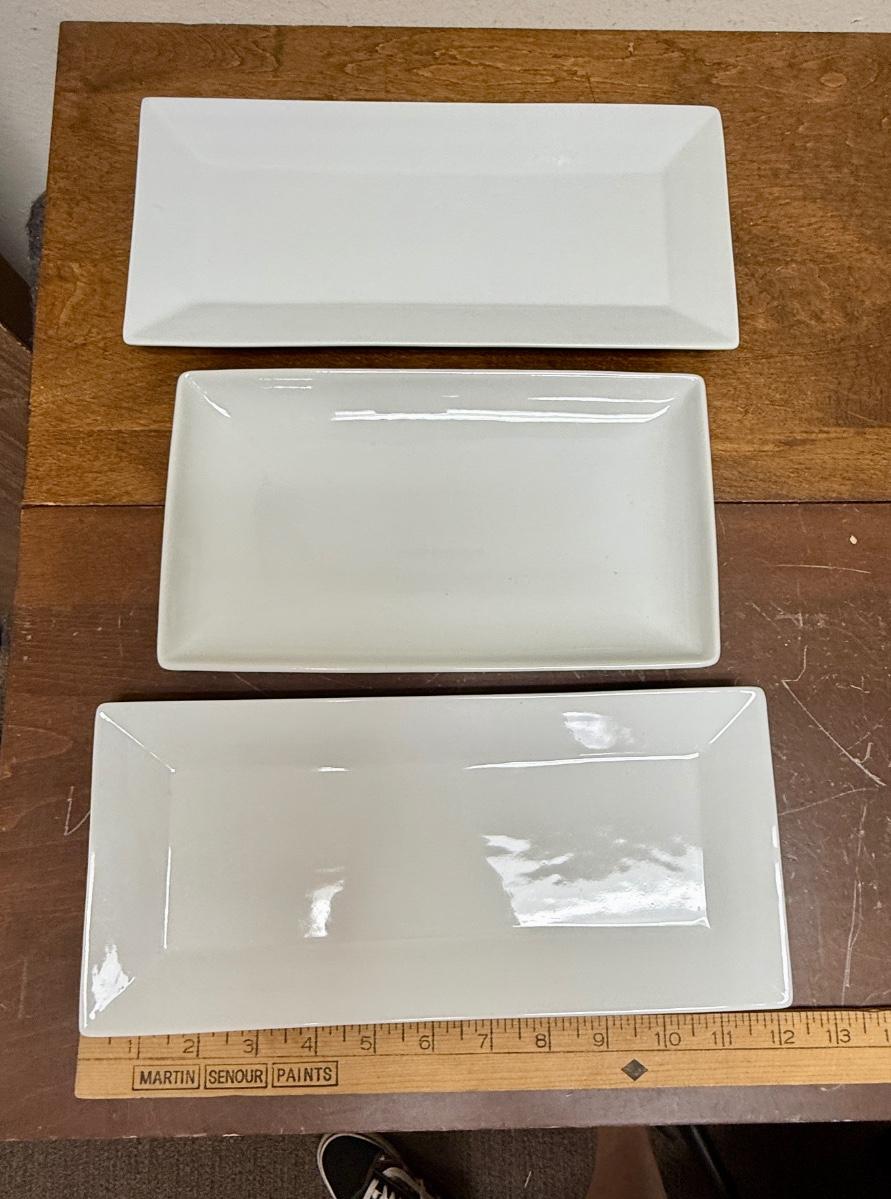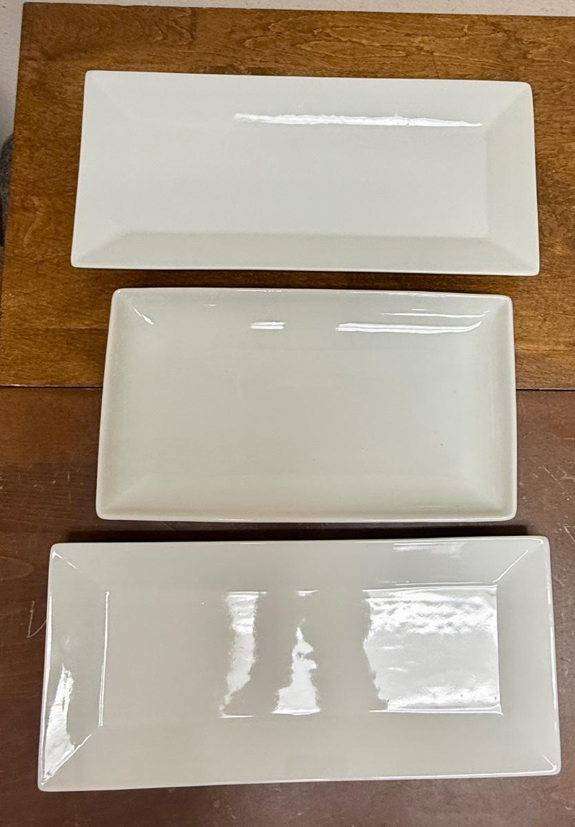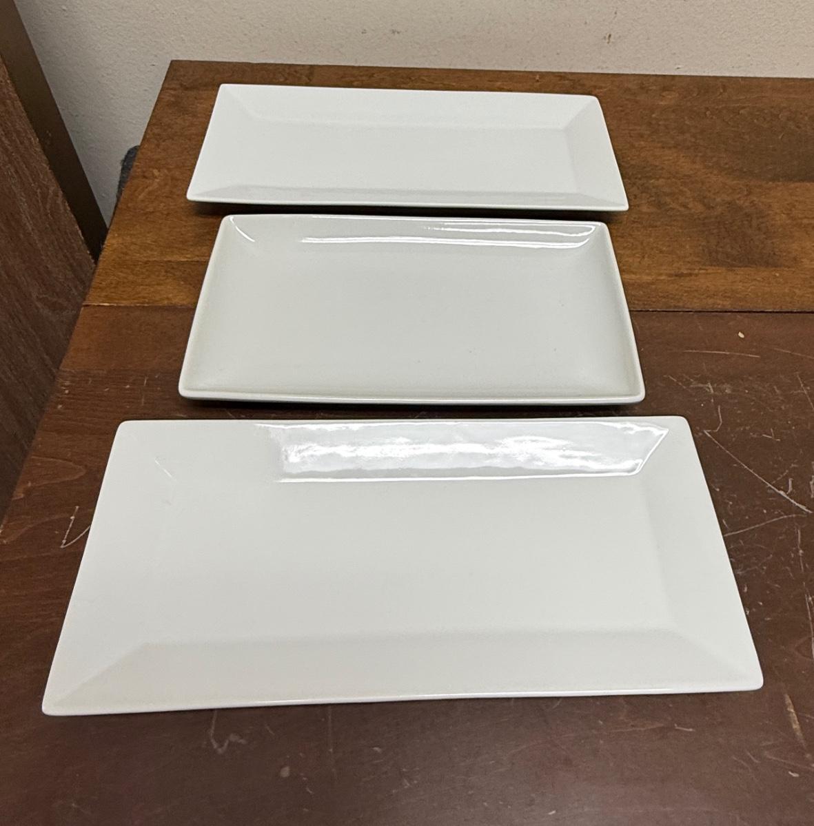 3 Rectangular White Porcelain Serving Trays