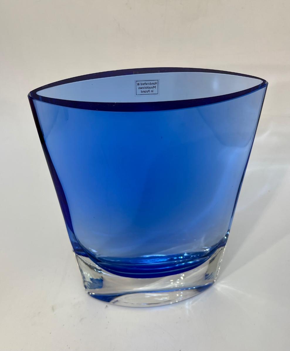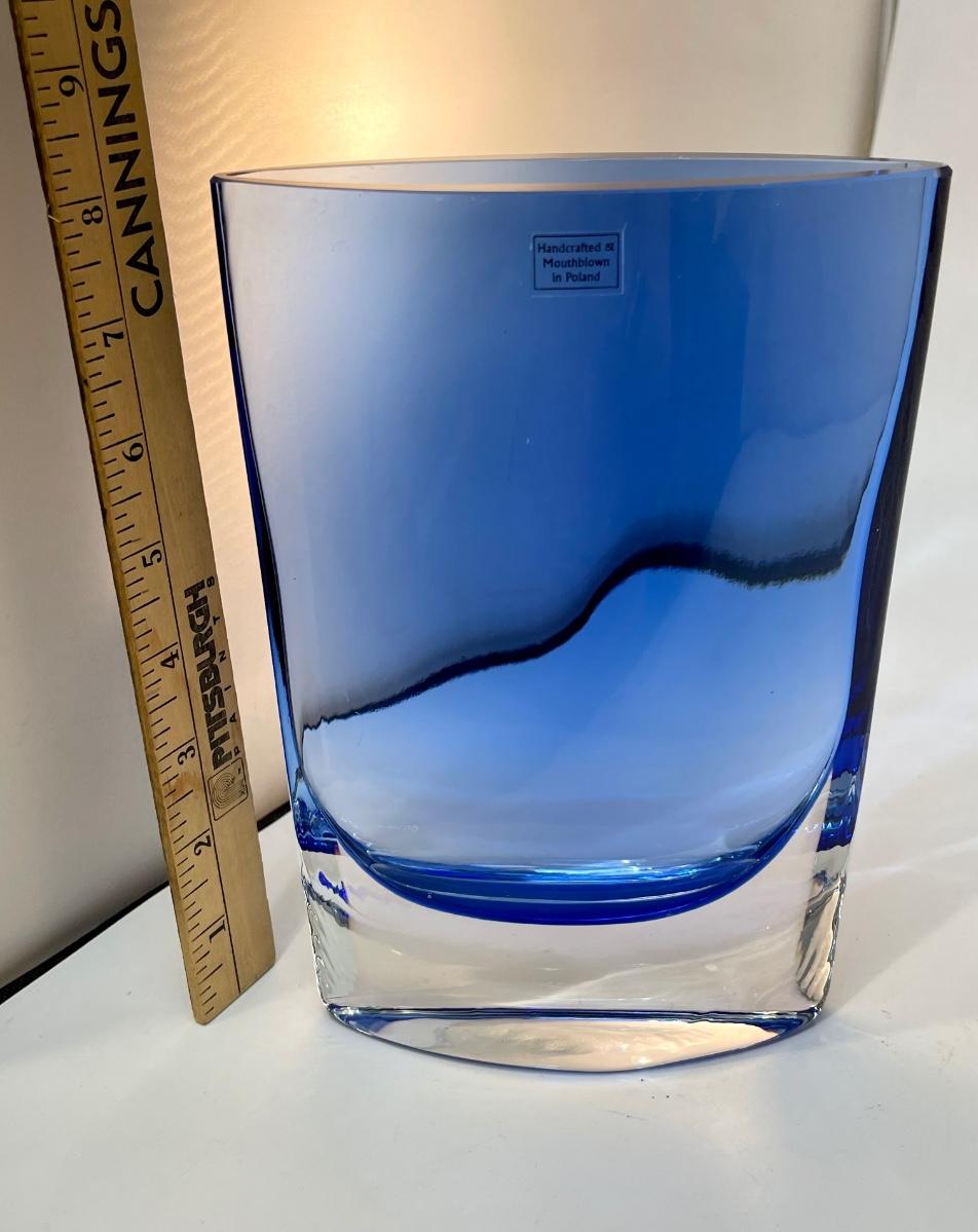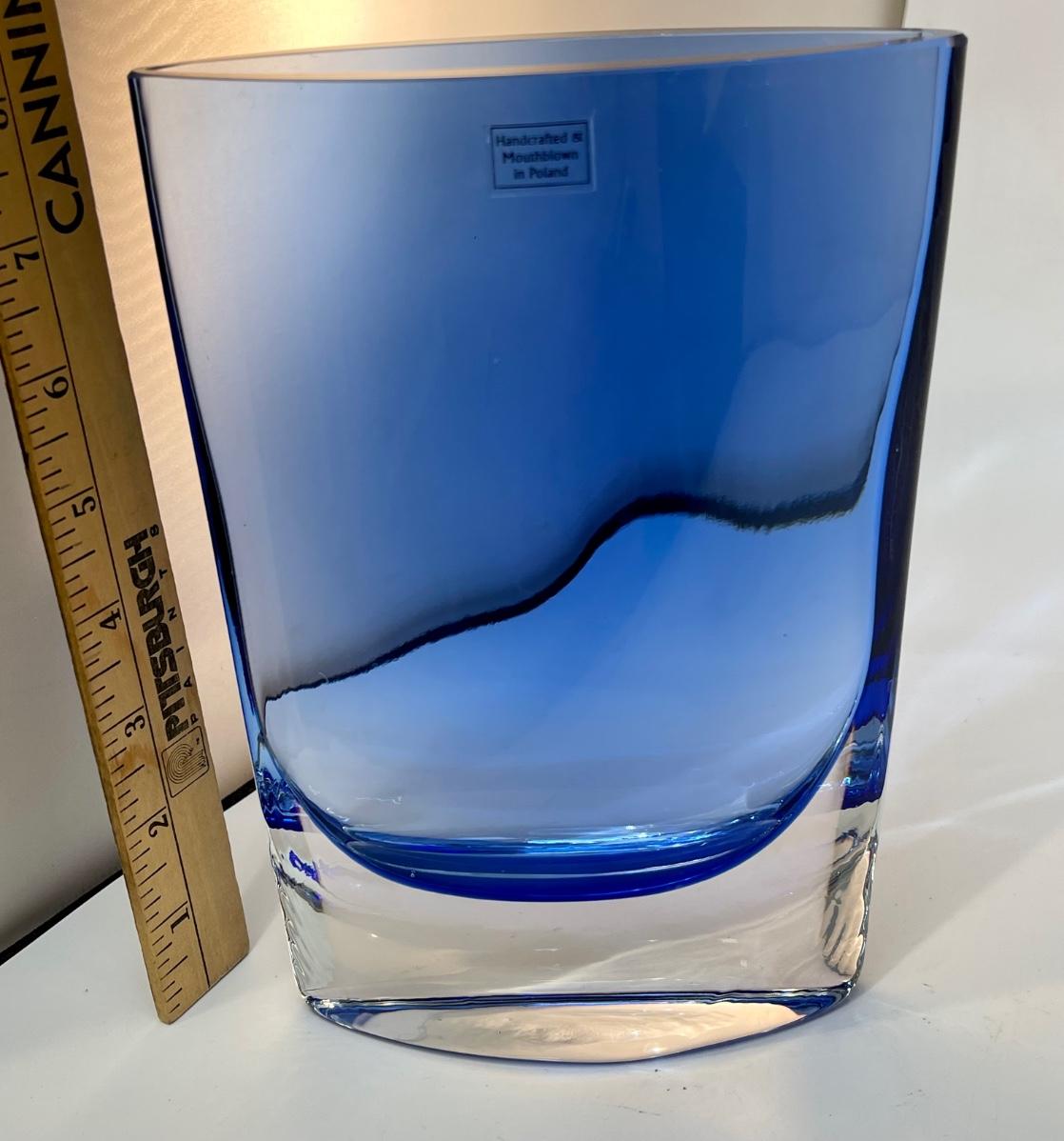 Modern Art Glass Cobalt Blue Vase Handcrafted & Mouth Blown in Poland Wide Vase