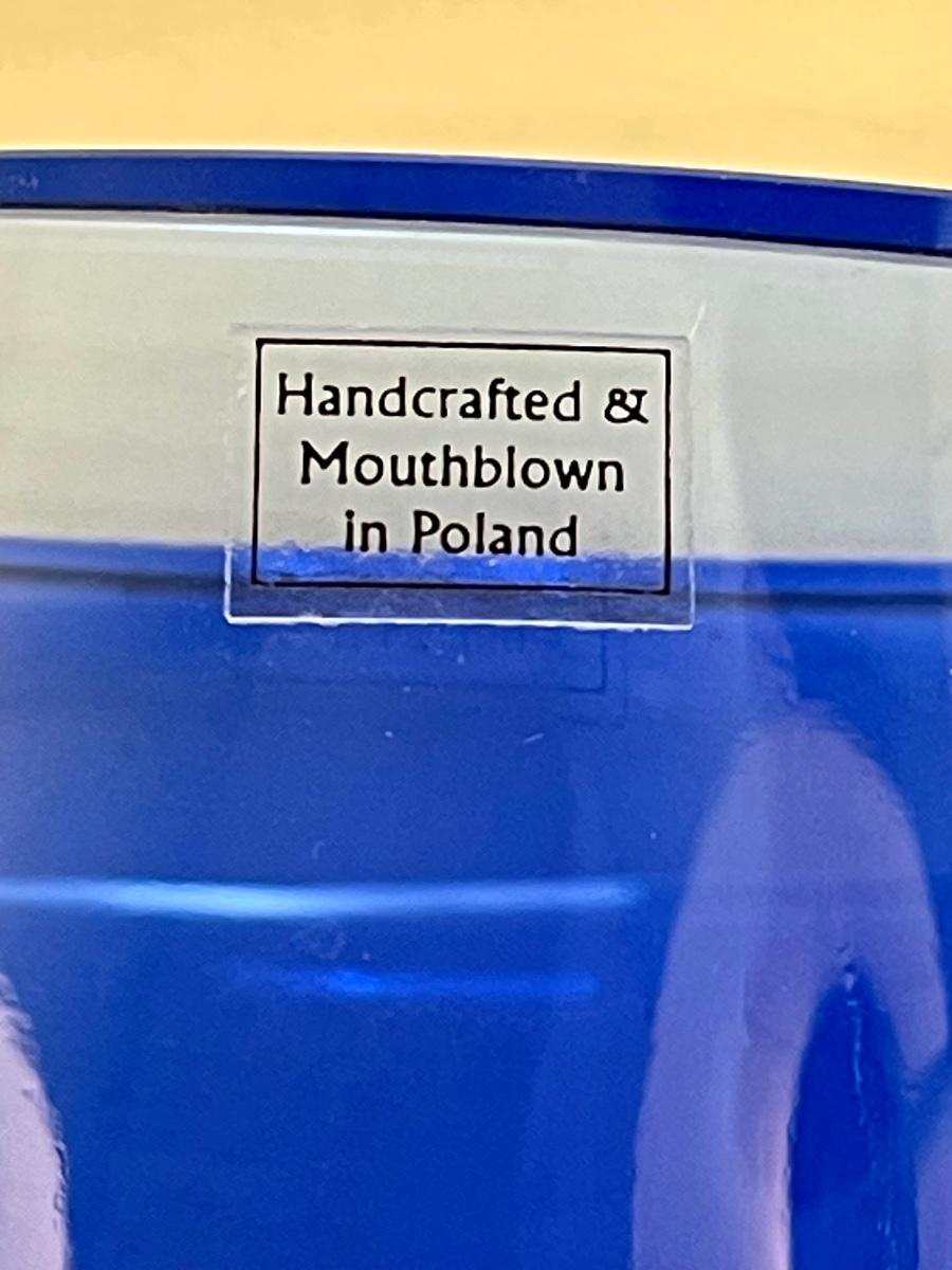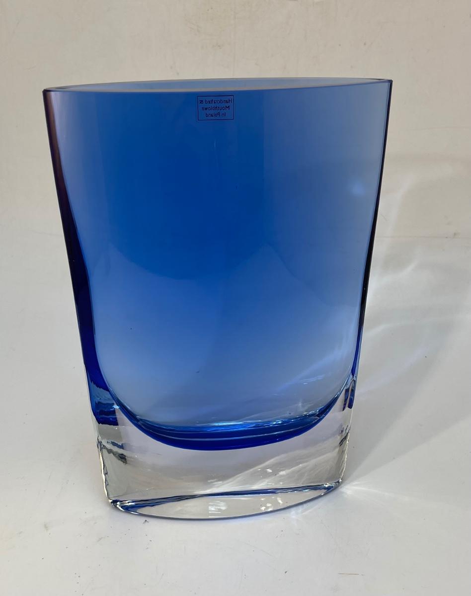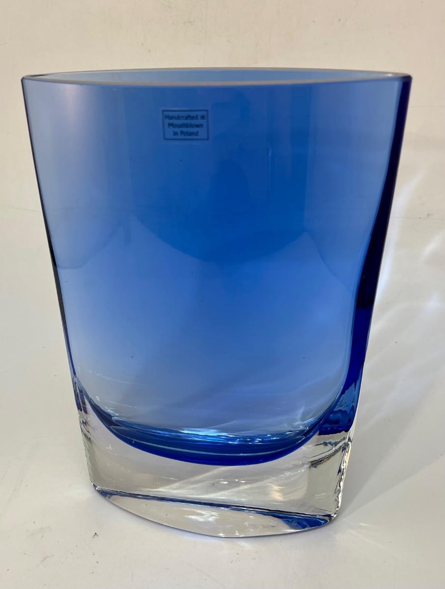 Modern Art Glass Cobalt Blue Vase Handcrafted & Mouth Blown in Poland Wide Vase