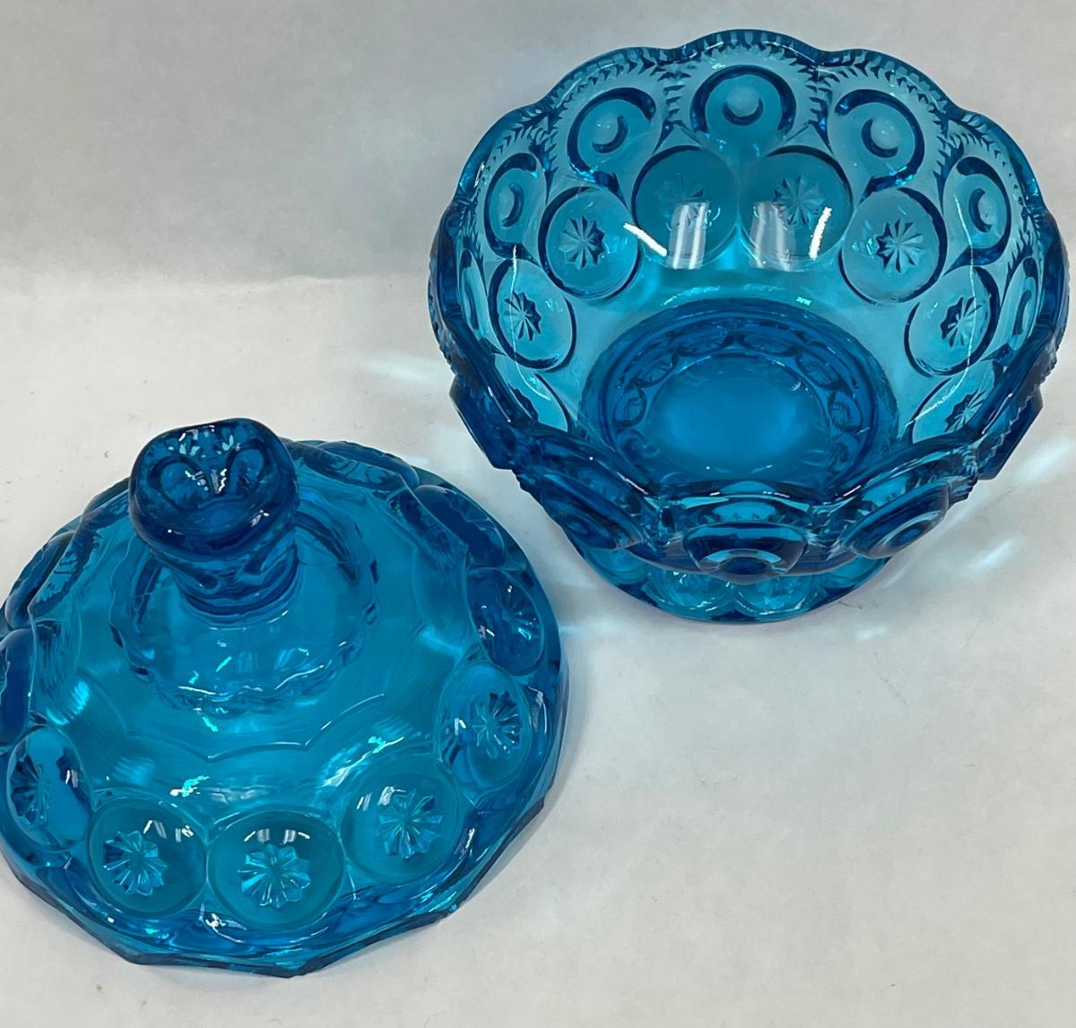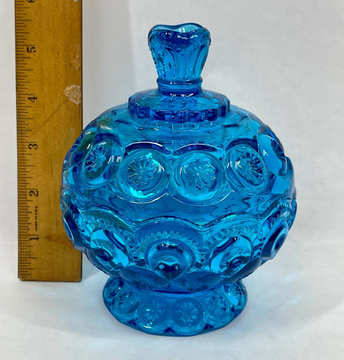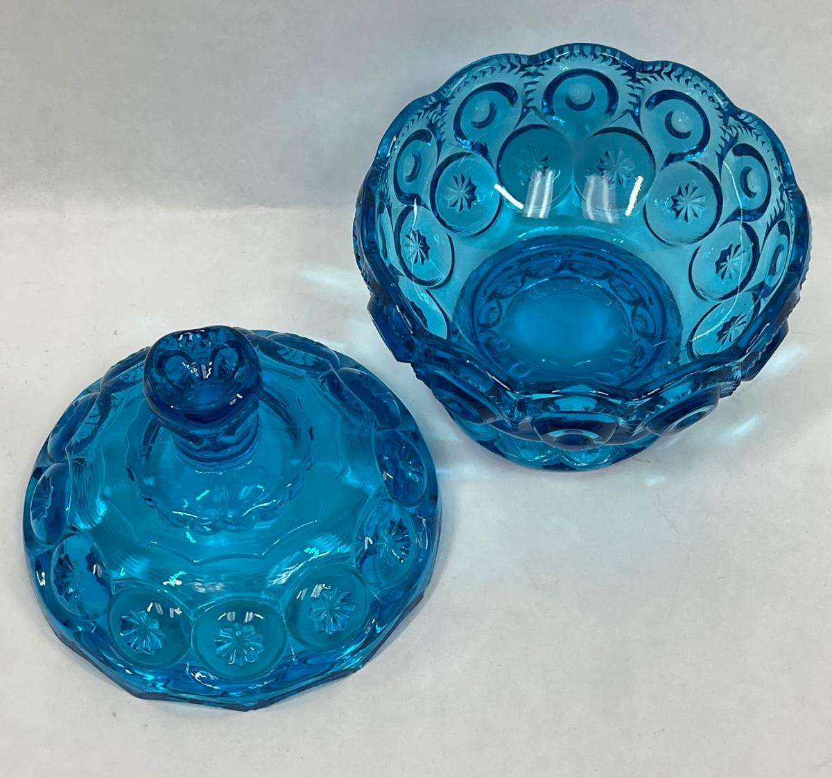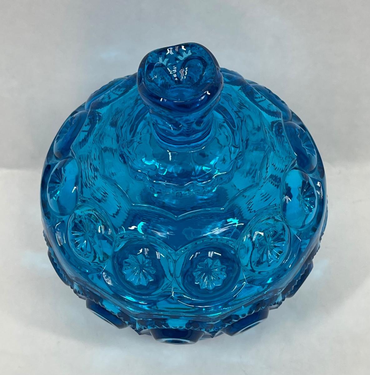 Vintage LE Smith Turquoise Blue Moon & Stars Lidded Candy Dish