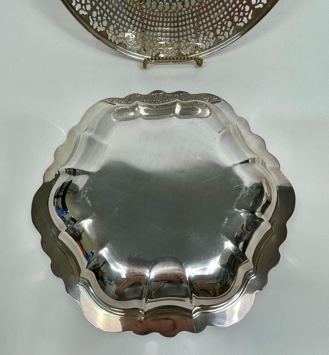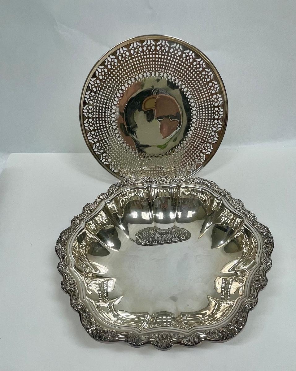 International Silver Company "Countess" Octagon Shaped Bowl and Footed Plate cut-out pattern marked EPNS