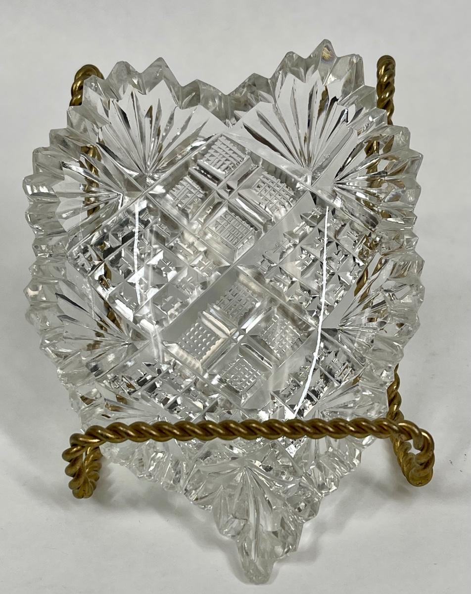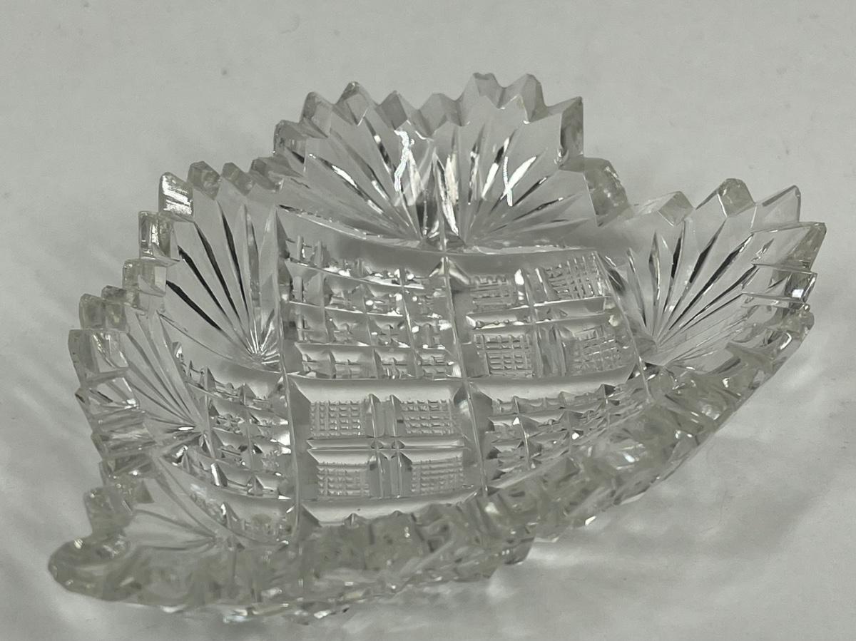 American Brilliant Cut Glass Shallow Bowl Nut Dish Leaf or Heart Shaped