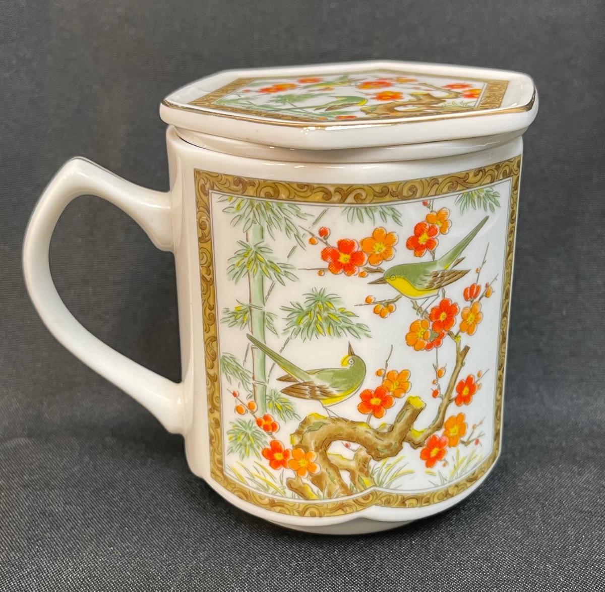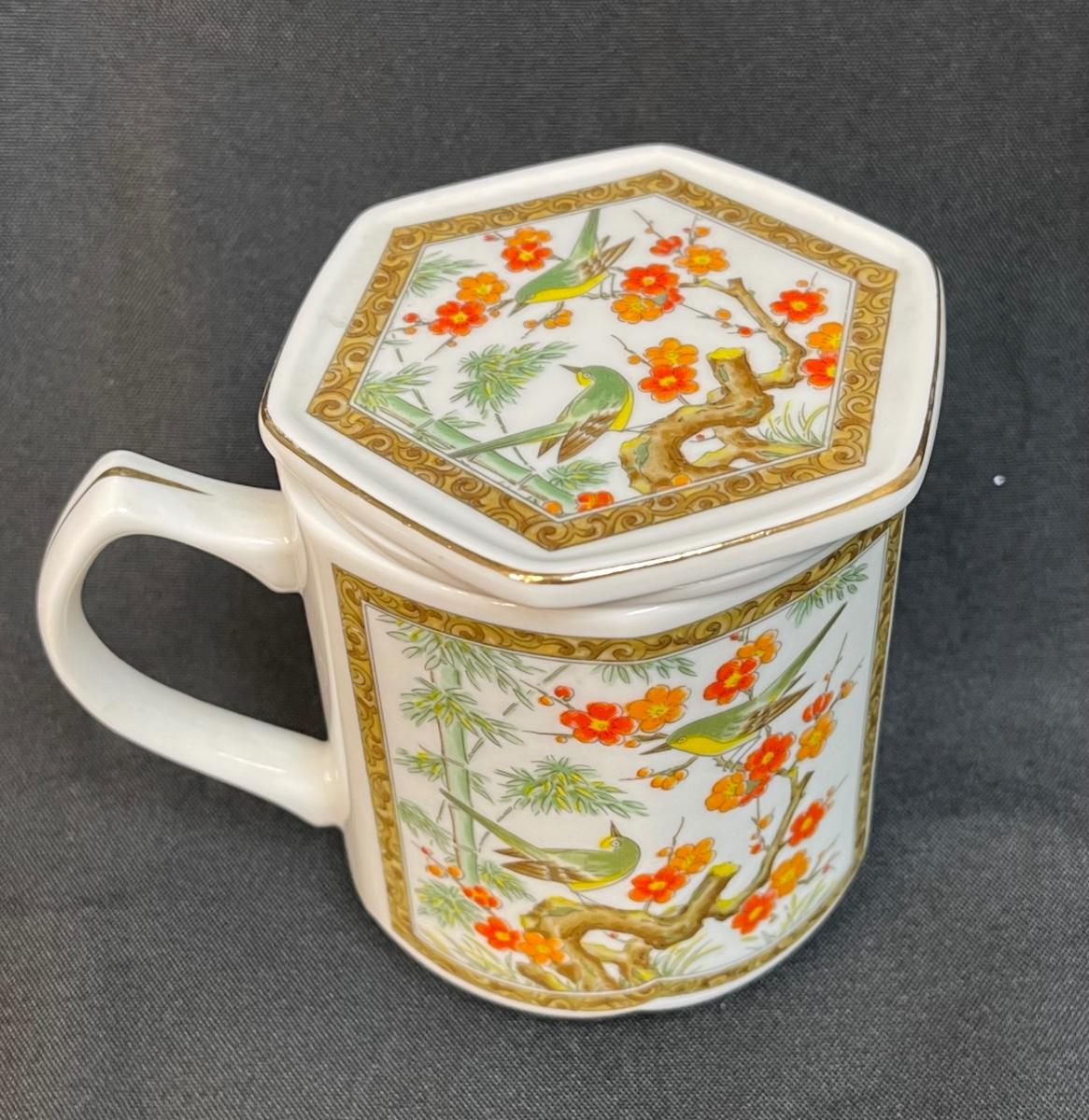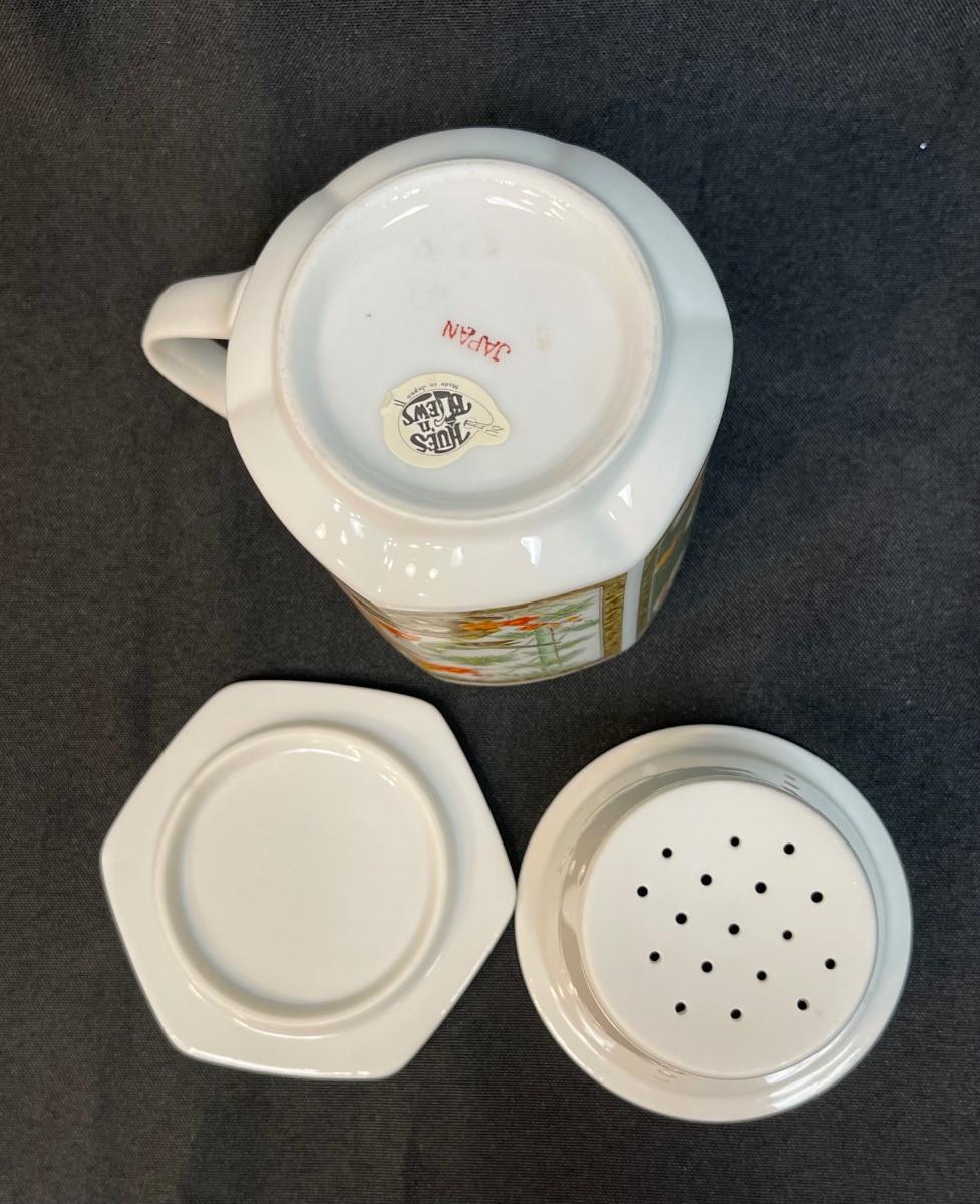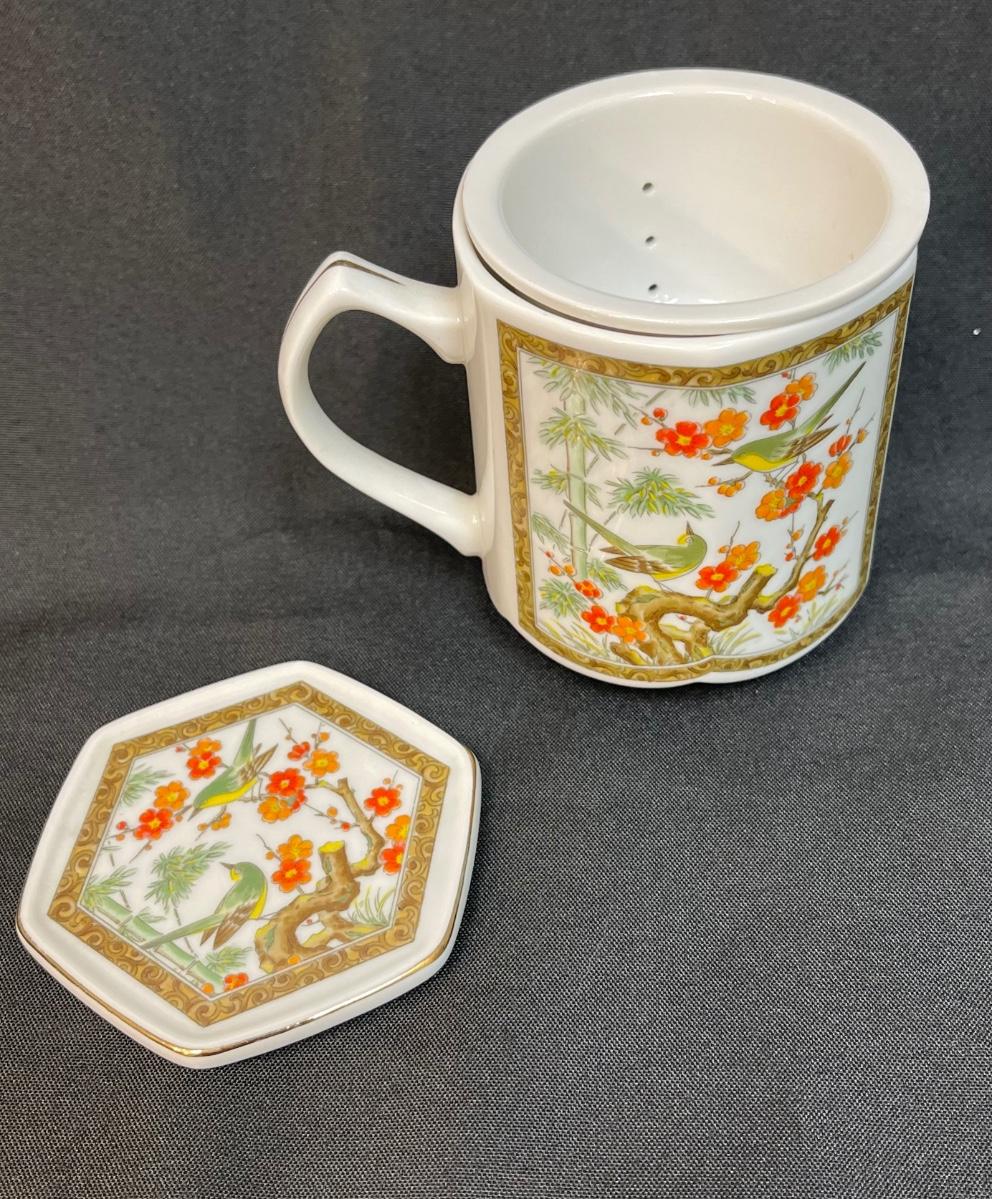 Footed Tea Cup with strainer inset and lid Made in Japan