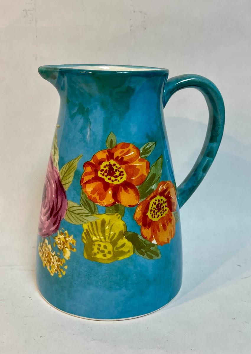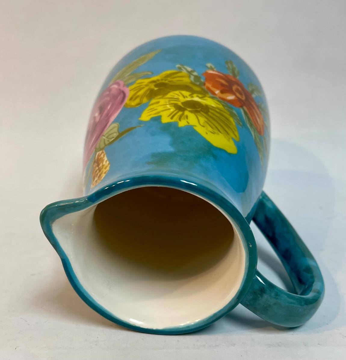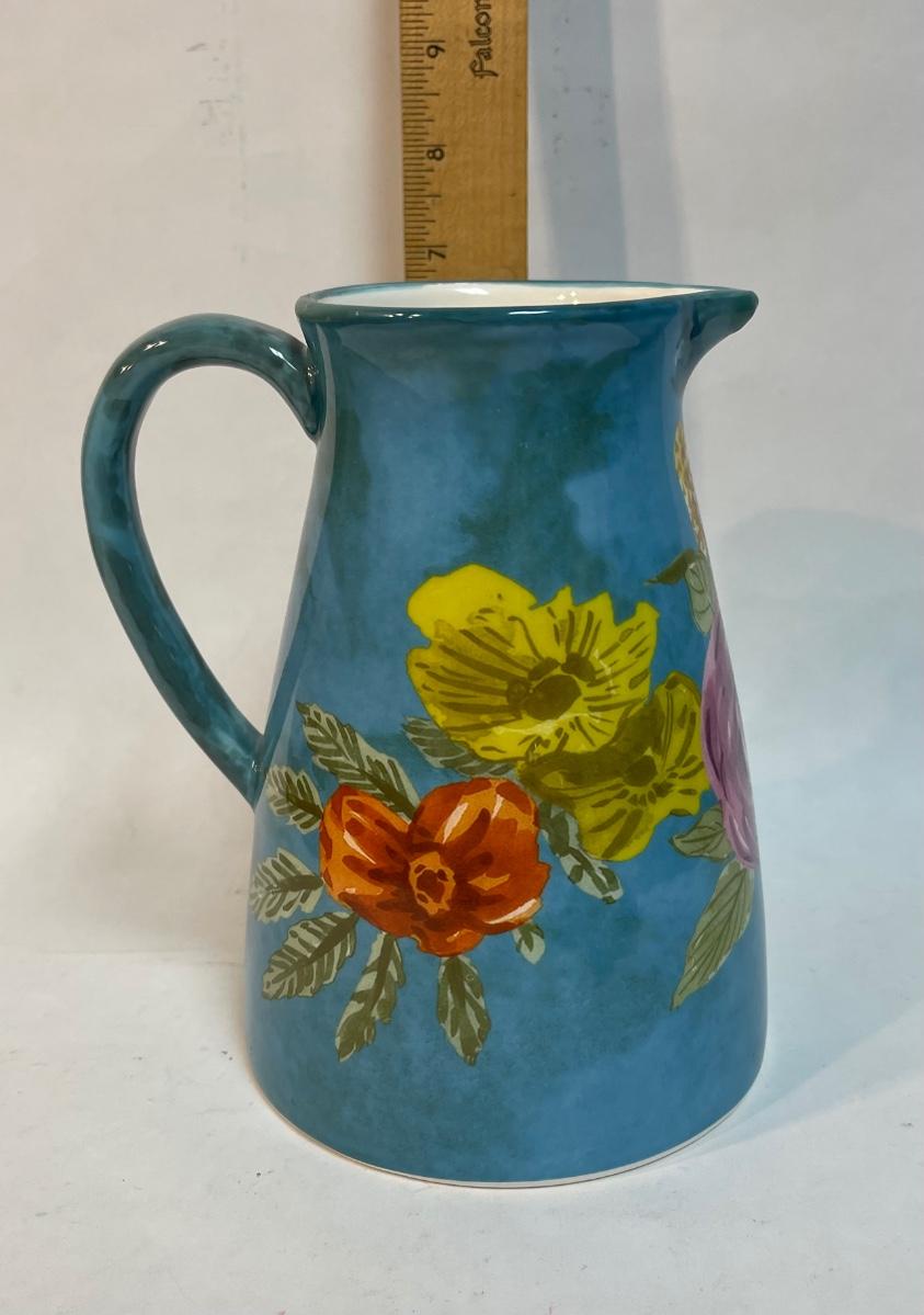 World Market Ceramic Pitcher Turquoise with Yellow and Orange Flowers