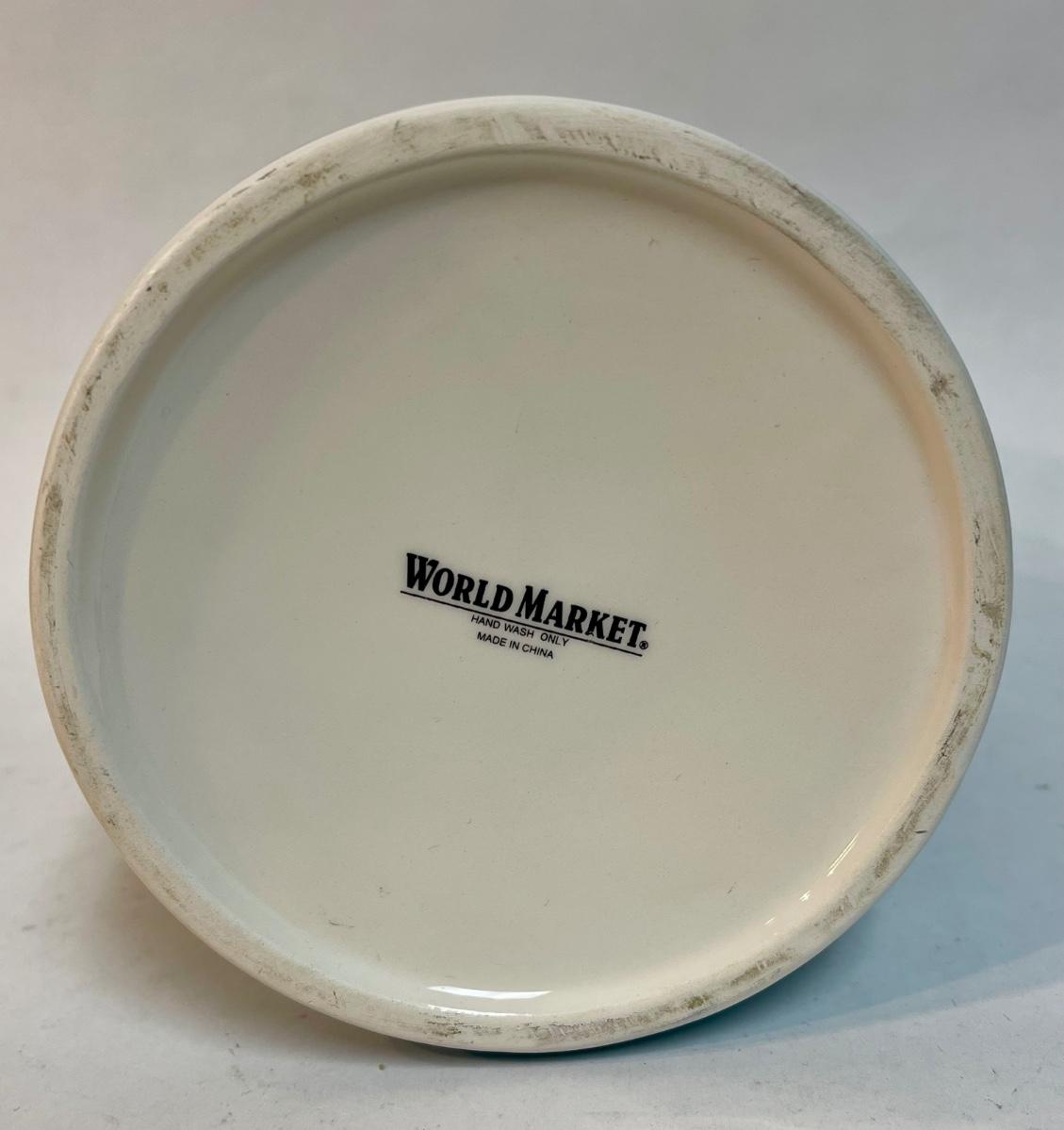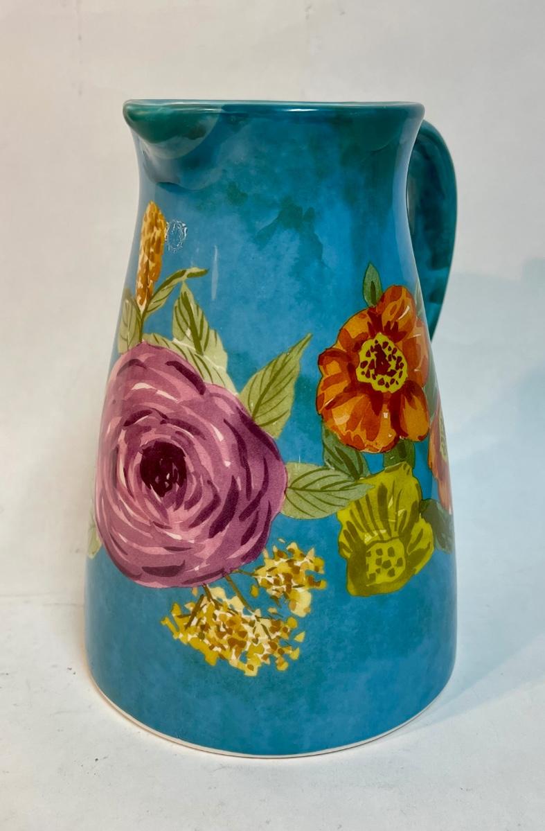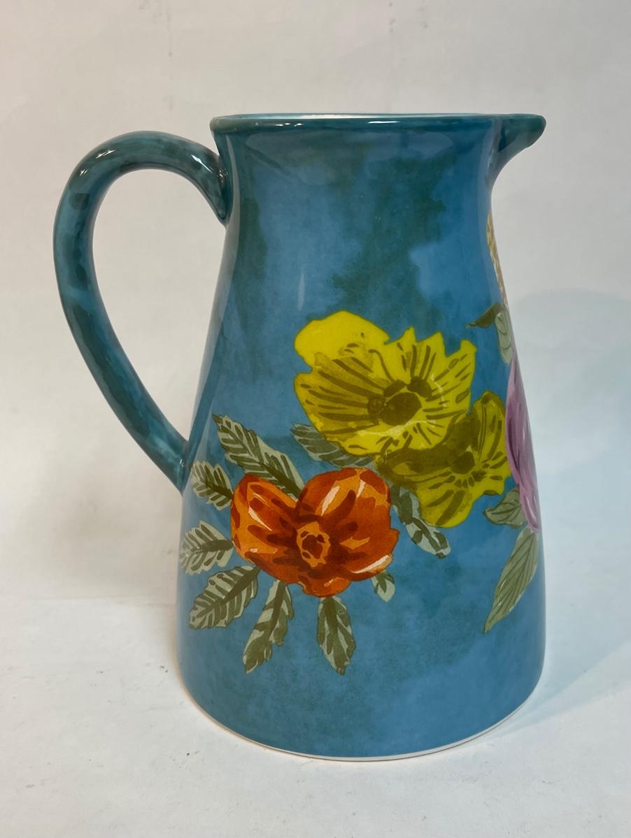 World Market Ceramic Pitcher Turquoise with Yellow and Orange Flowers