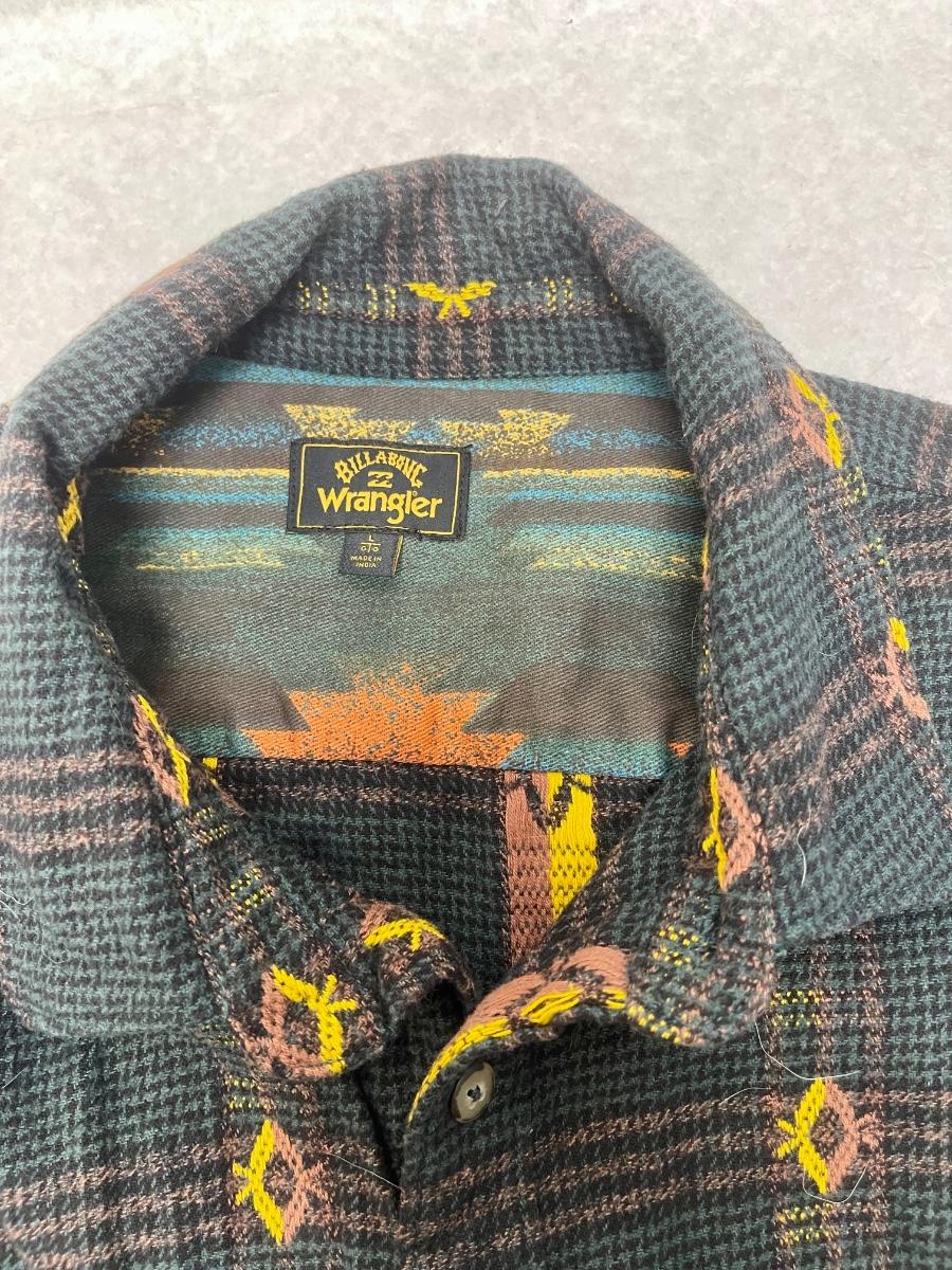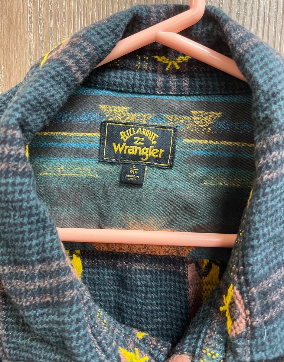 Billabong Wrangler size L large Flannel Shirt - dark green, taupe, gold