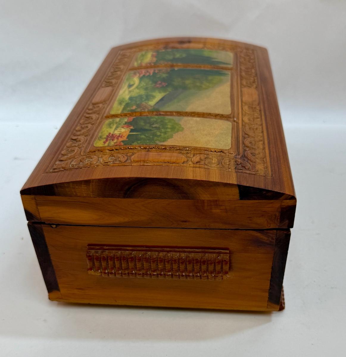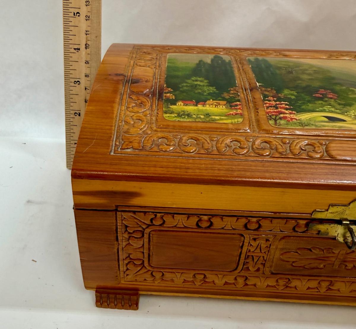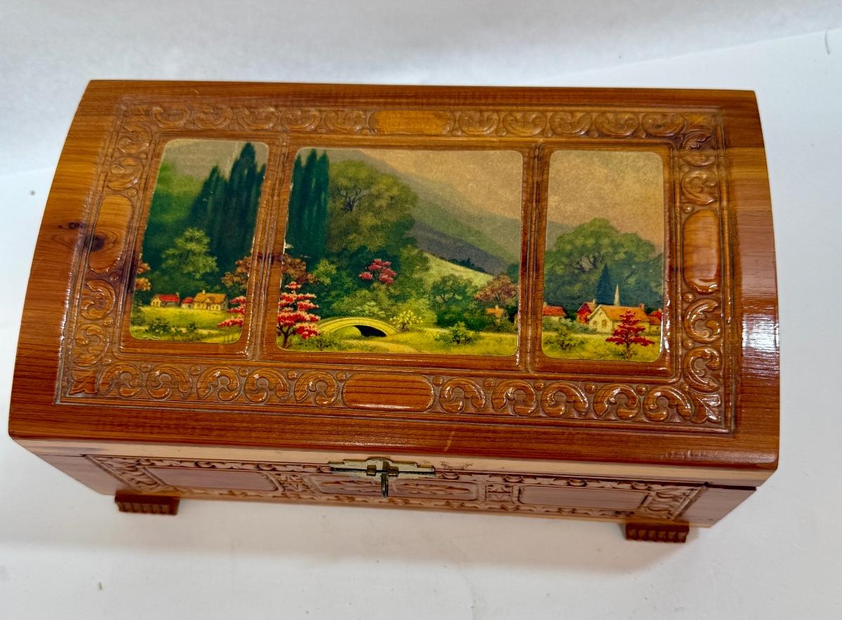 Wooden Jewelry Box with Decoupage Landscape Scene on Top