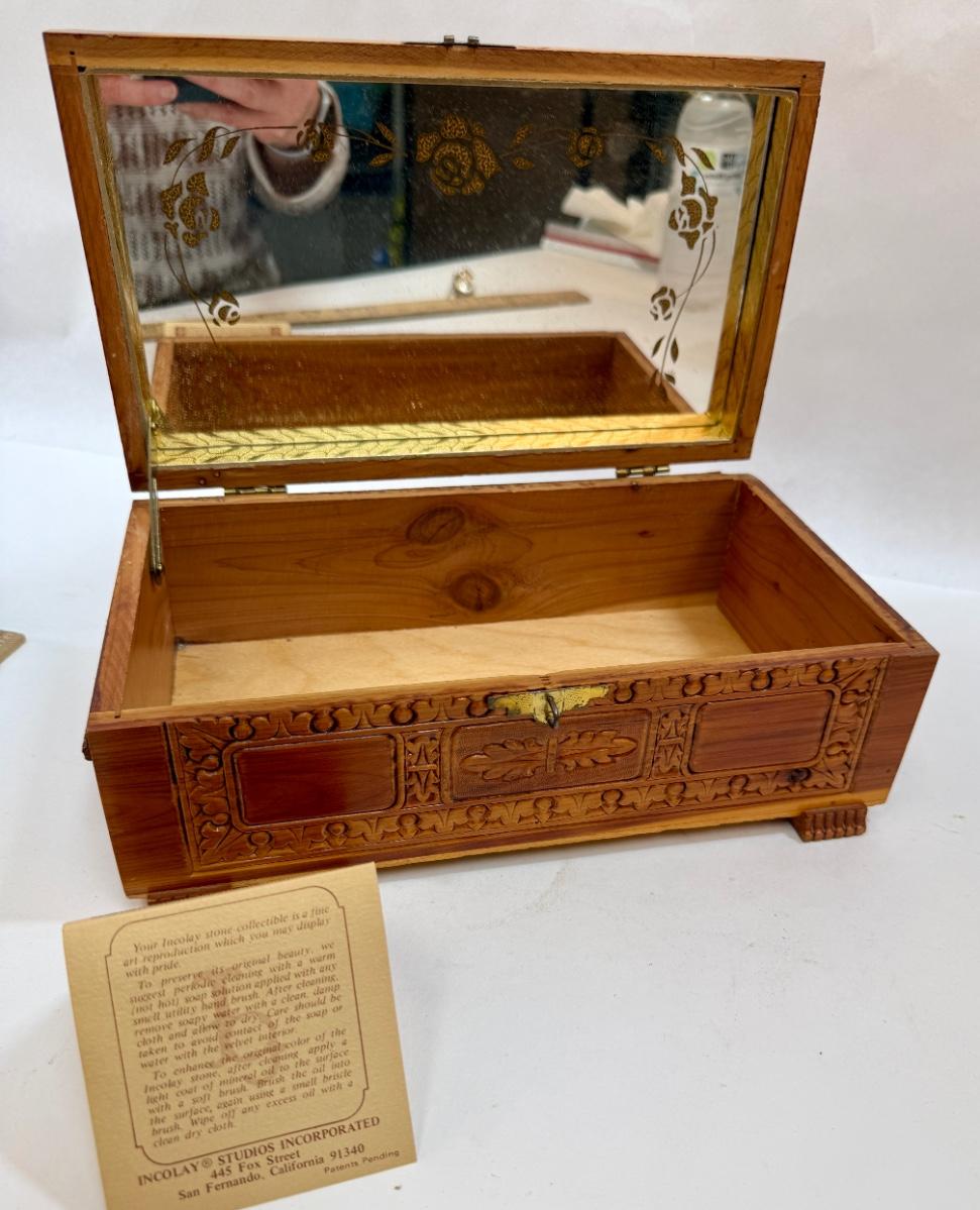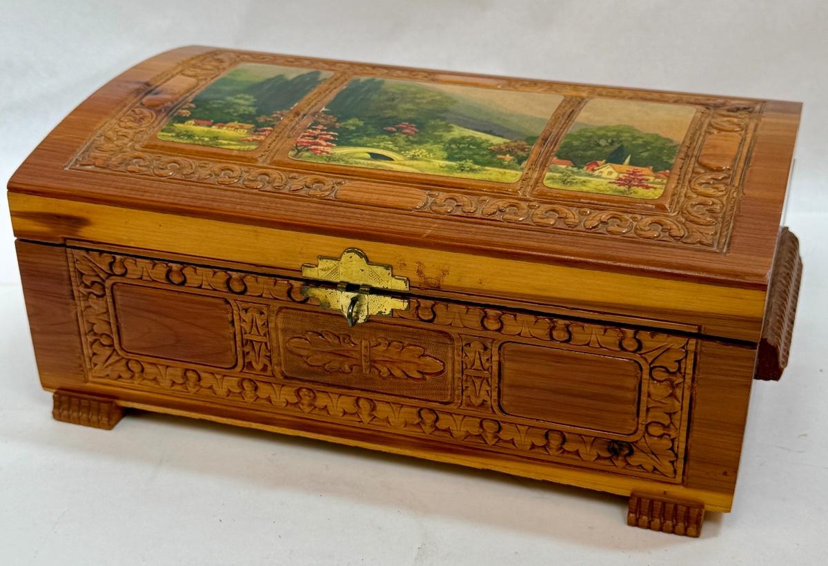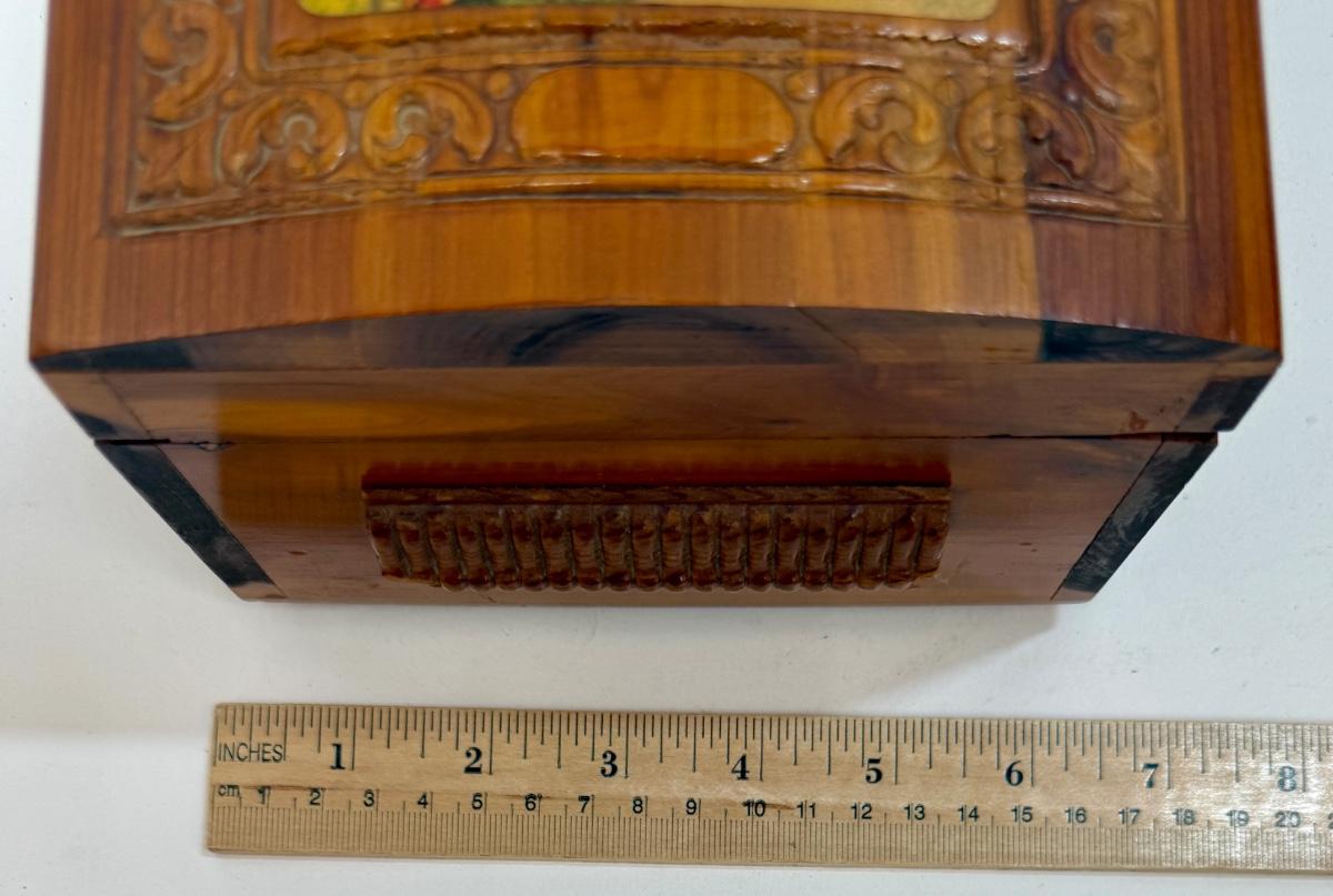 Wooden Jewelry Box with Decoupage Landscape Scene on Top