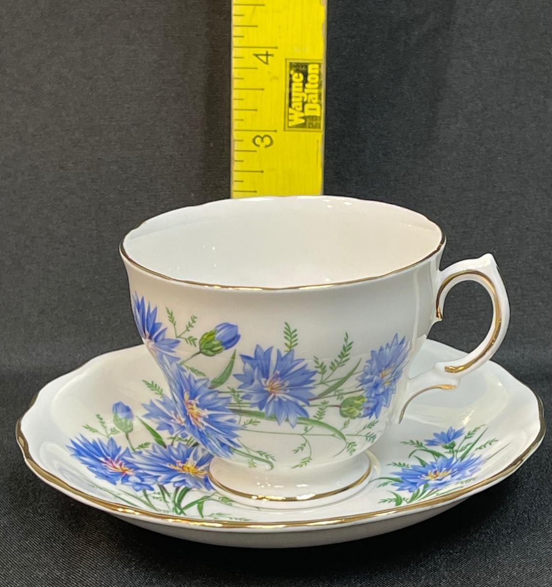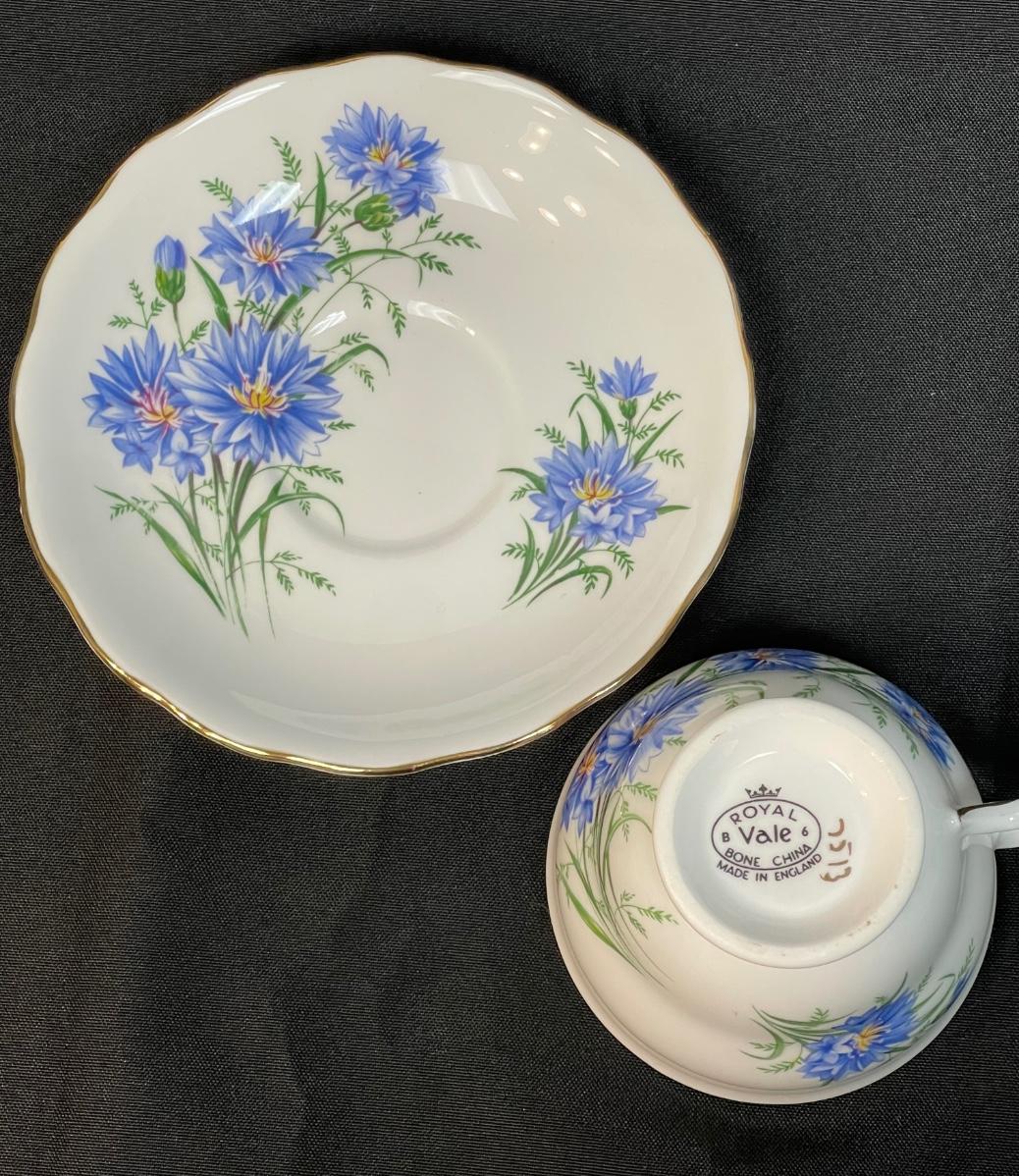 Royal Vale 7513 pattern Teacup & Saucer Set footed cup Blue Flowers