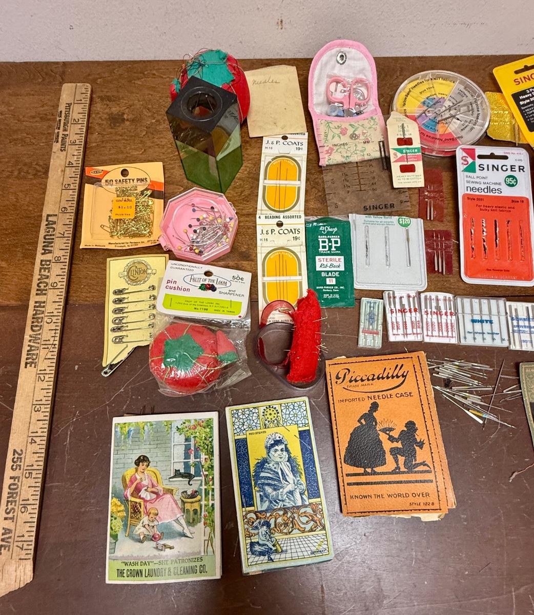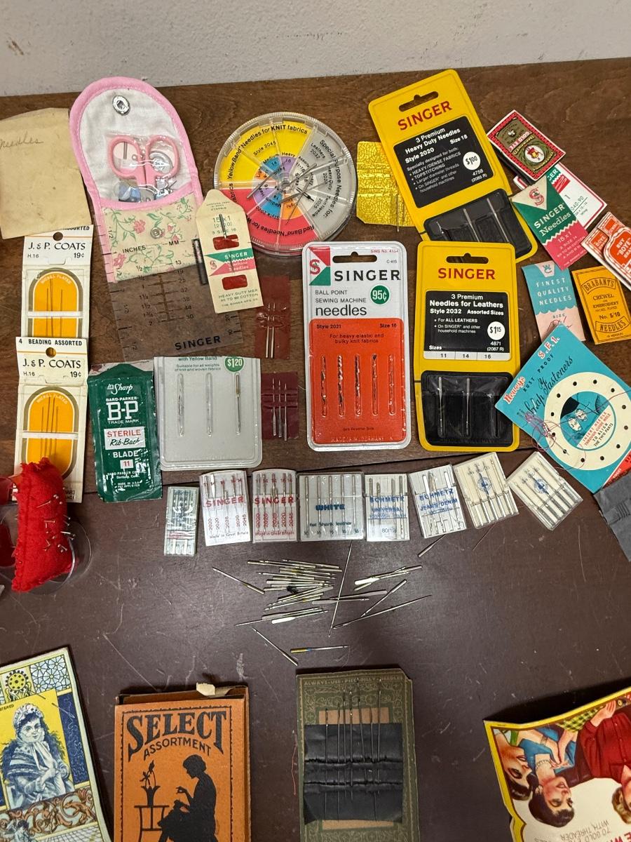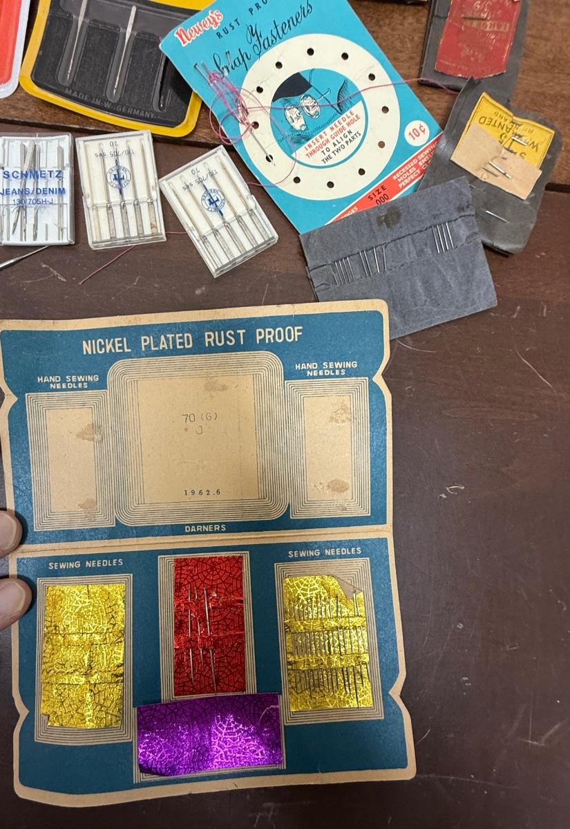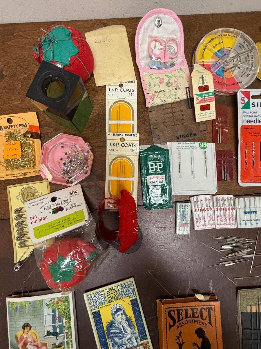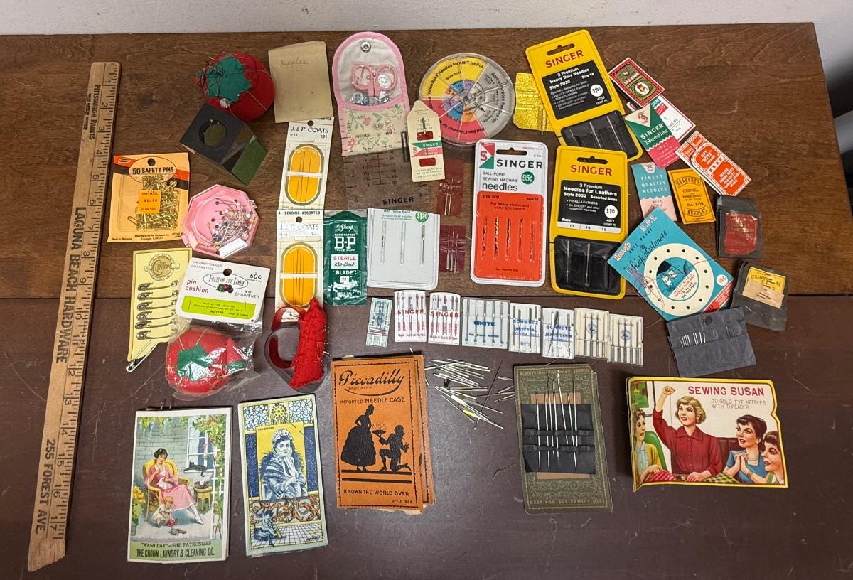 Vintage Sewing Notions Lot - mostly needles, pins - needles in antique paper card booklets