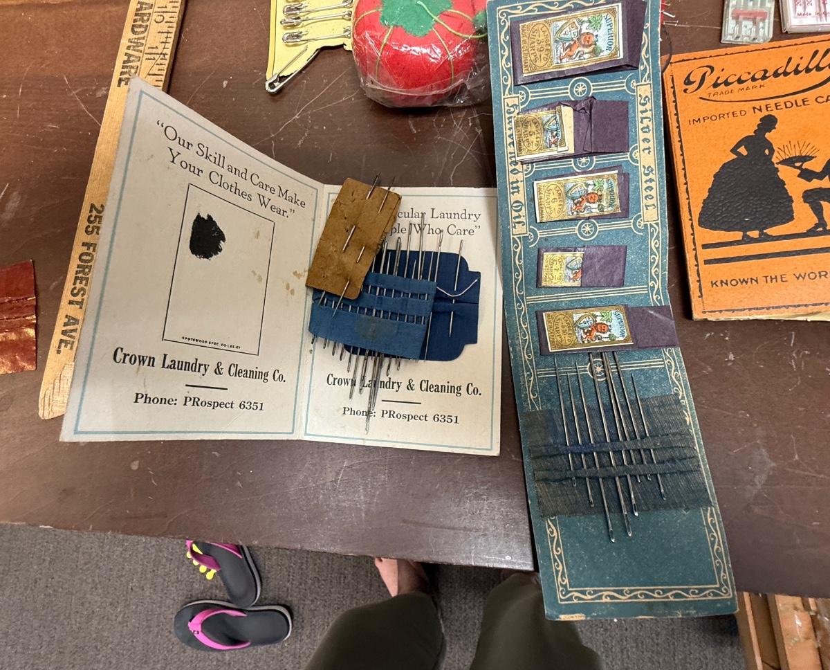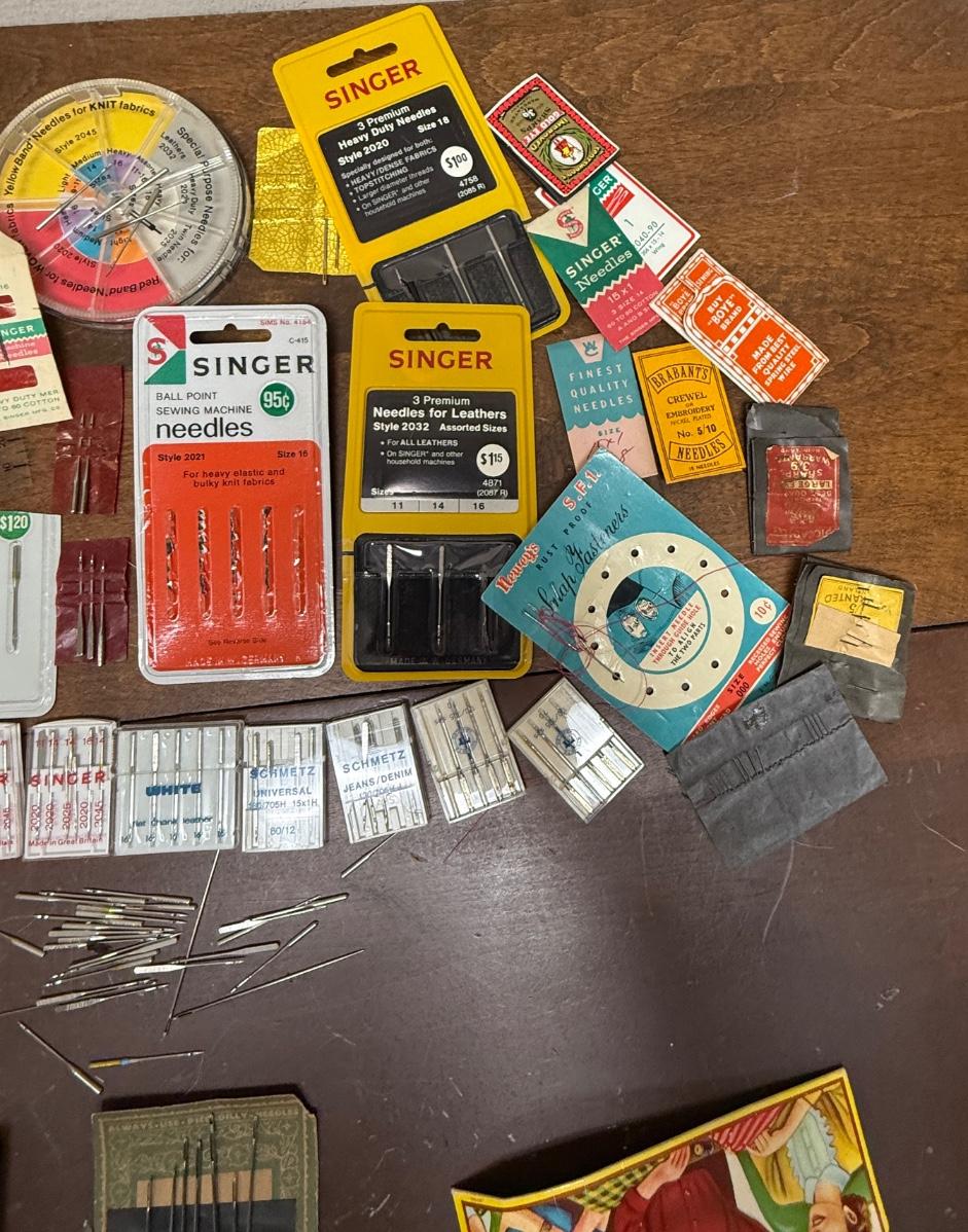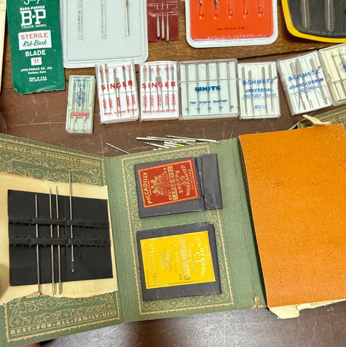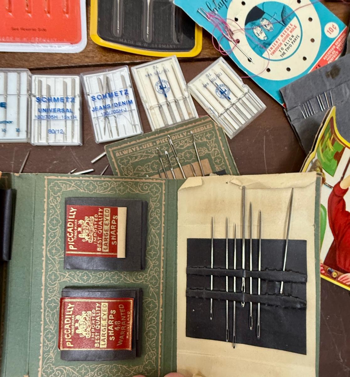 Vintage Sewing Notions Lot - mostly needles, pins - needles in antique paper card booklets