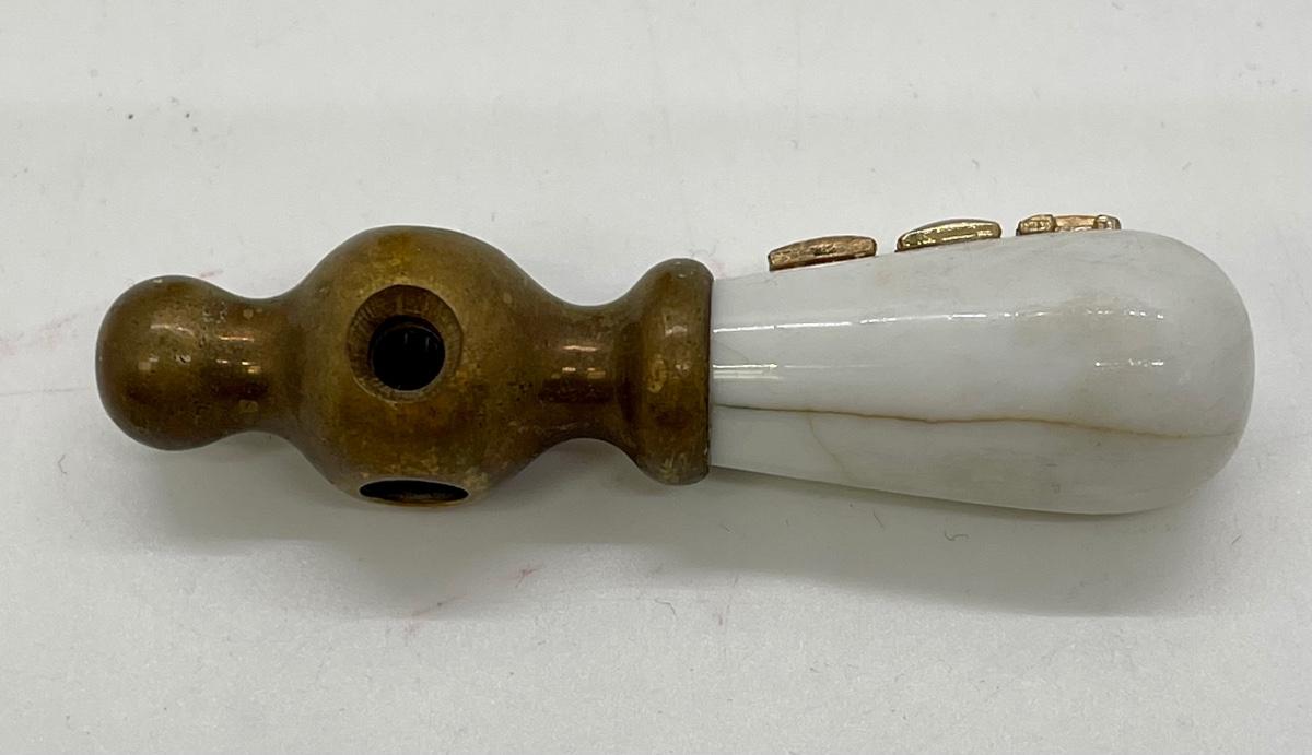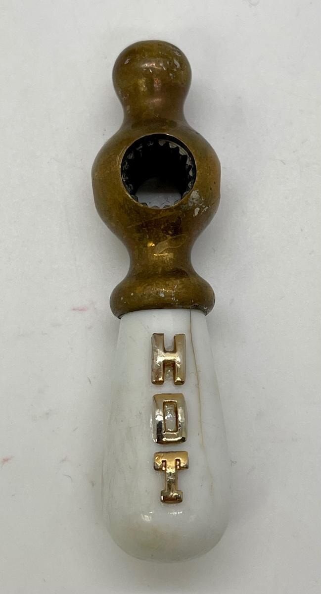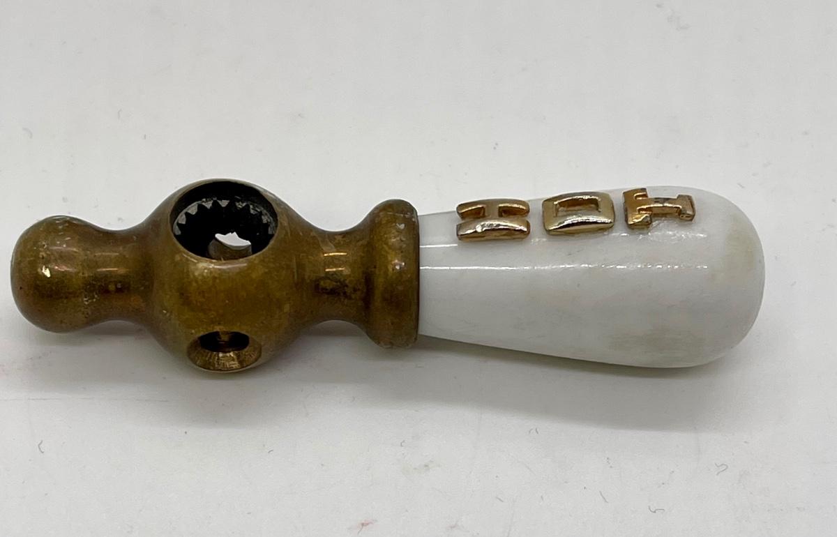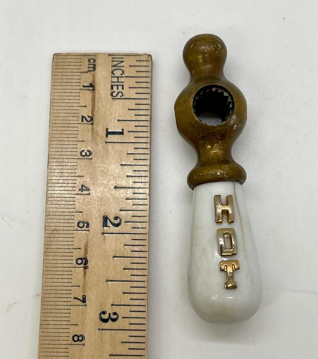 Antique Ceramic & Brass Faucet Handle with "HOT"in raised gold letters HEAVY