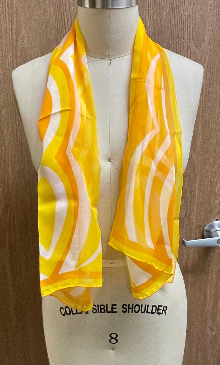 VINTAGE VERA SCARF - yellow, orange, white - rectangular 11 x 44 inches