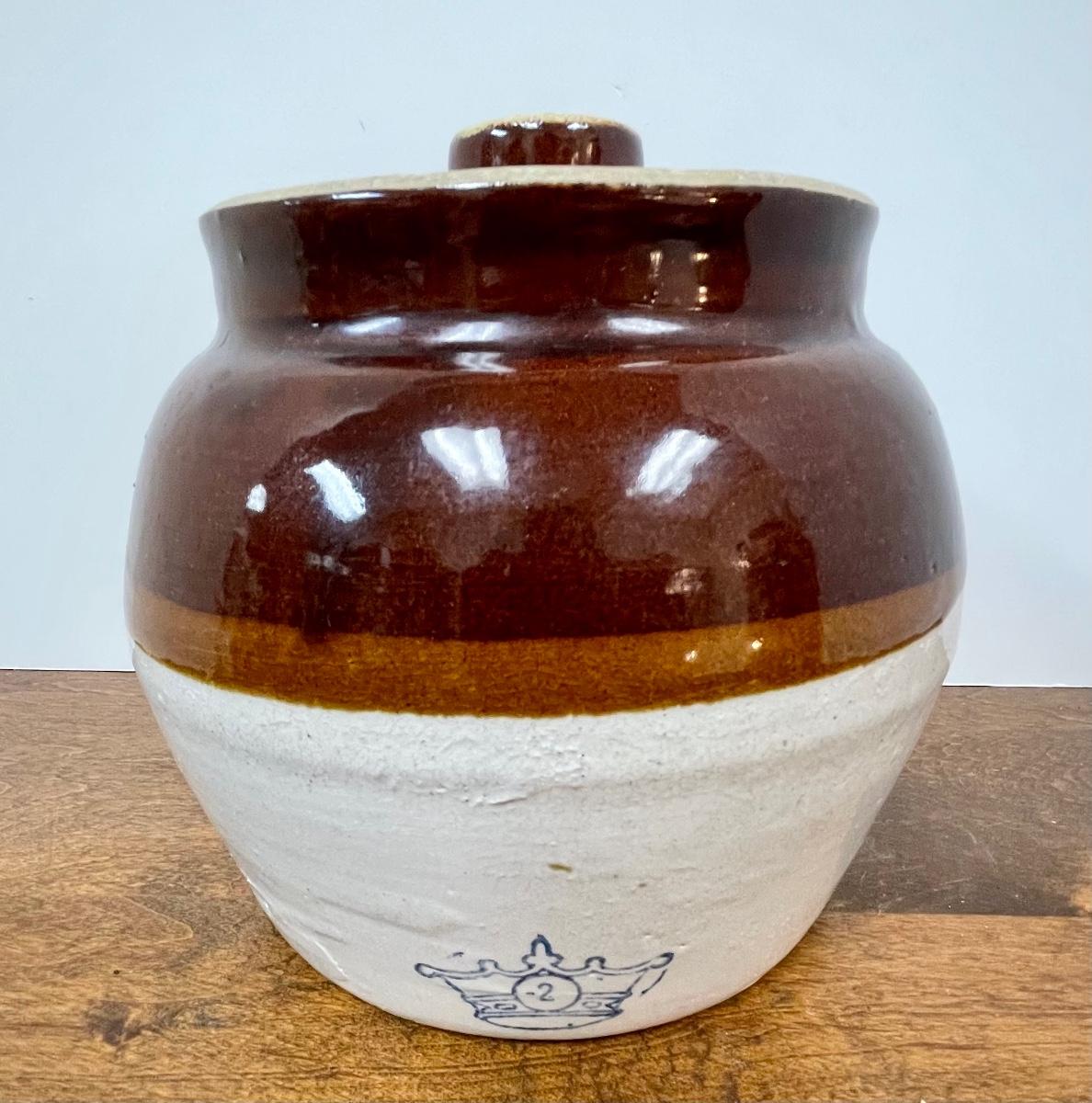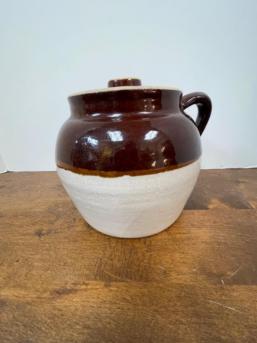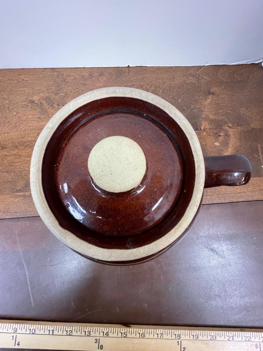 Vintage Stoneware Pottery Bean Pot with Lid and Single Handle Crown #2 Robinson Ransbottom