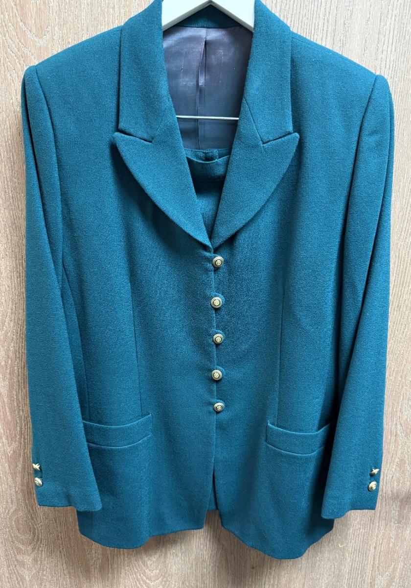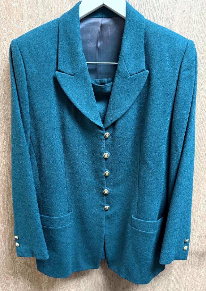 Vintage Jade Green Two-piece Skirt Suit Blazer with Gold Buttons