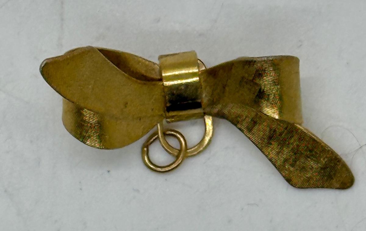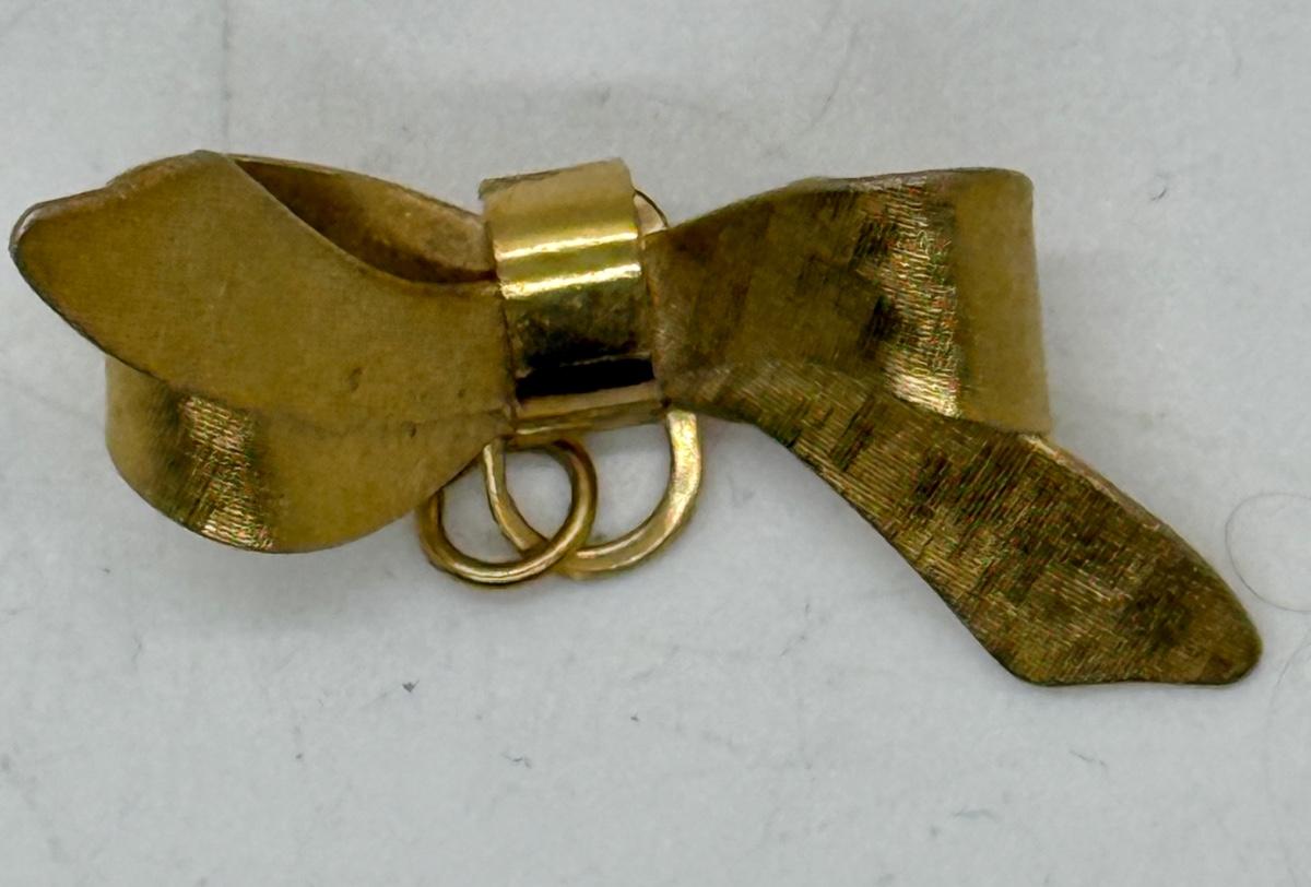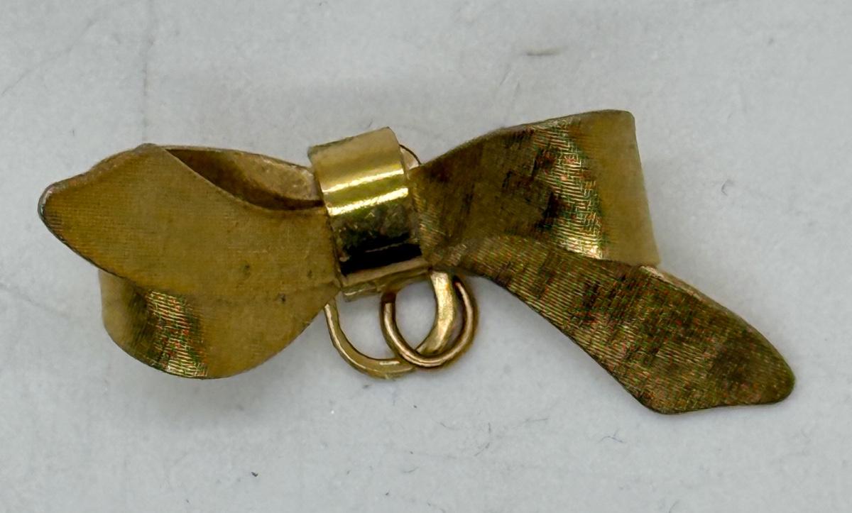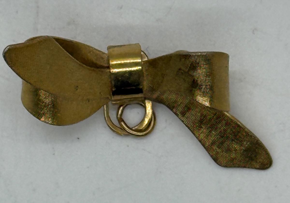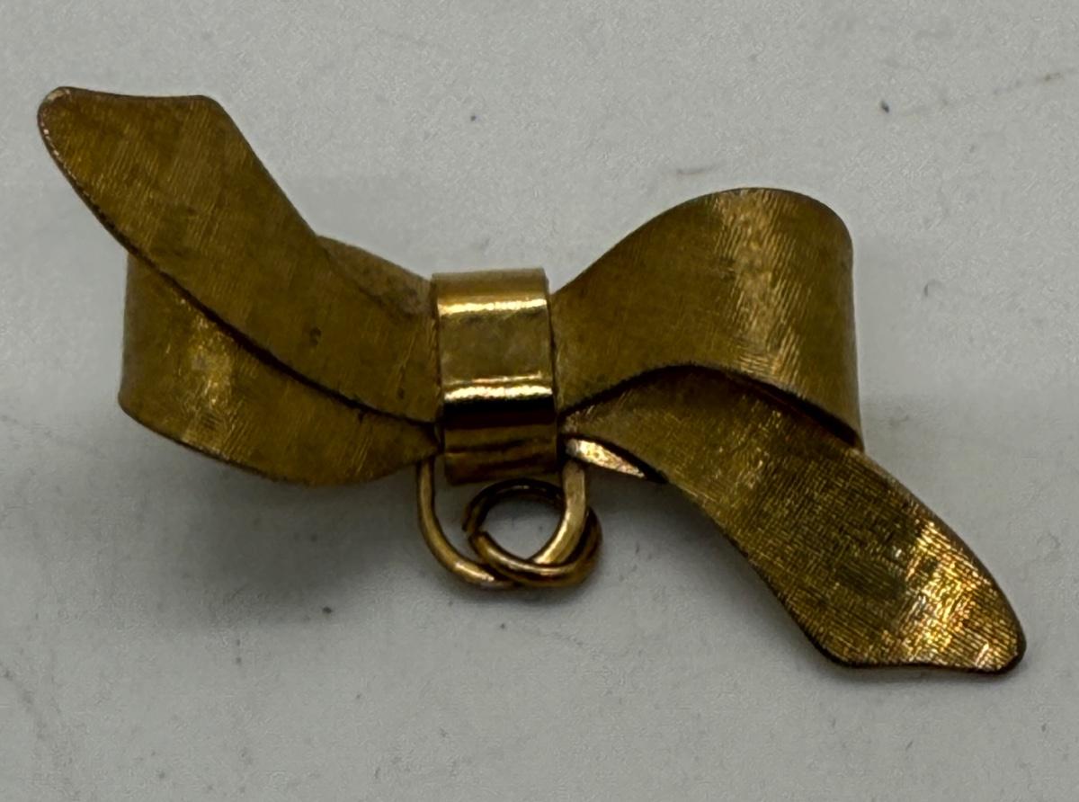 Vintage Ribbon Bow Brooch Pin Gold Tone 1.5” add Charm to Pin or use as Penant
