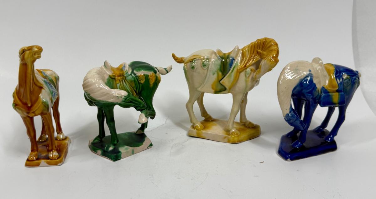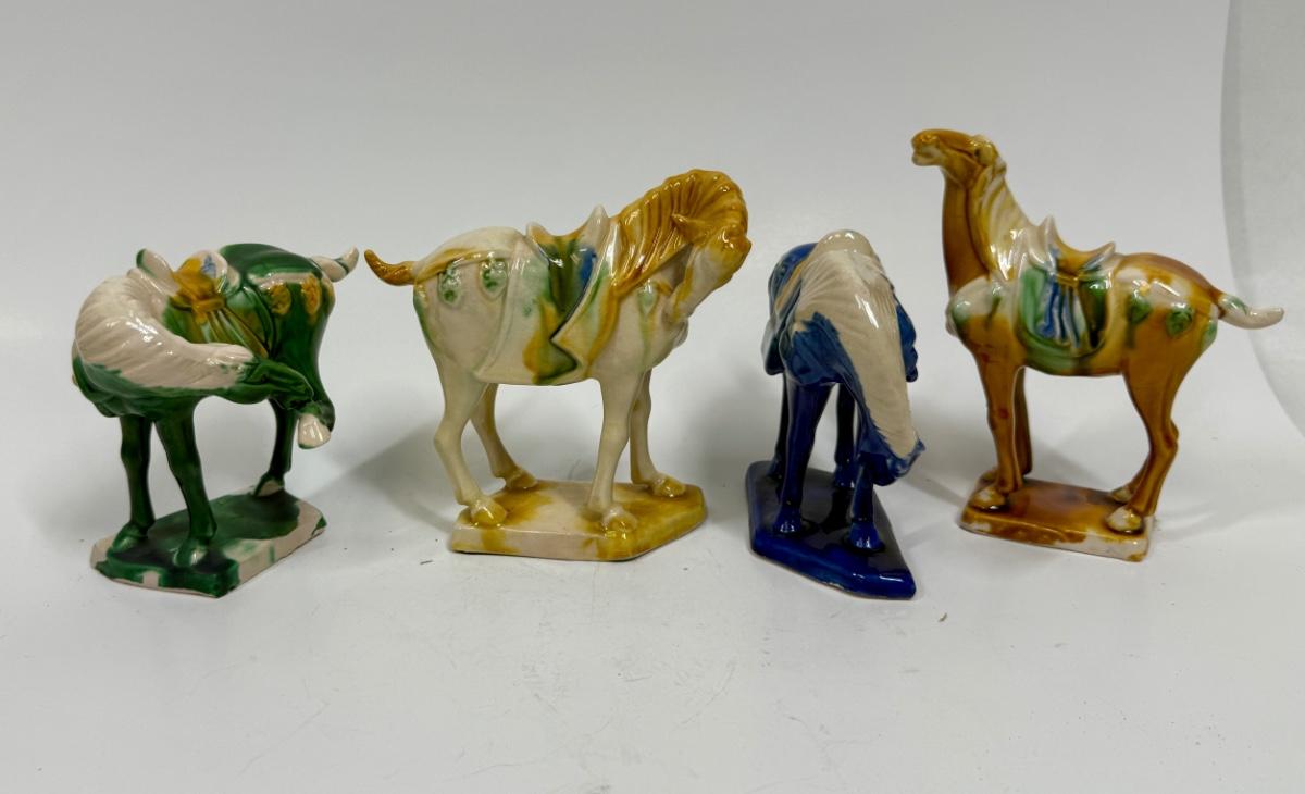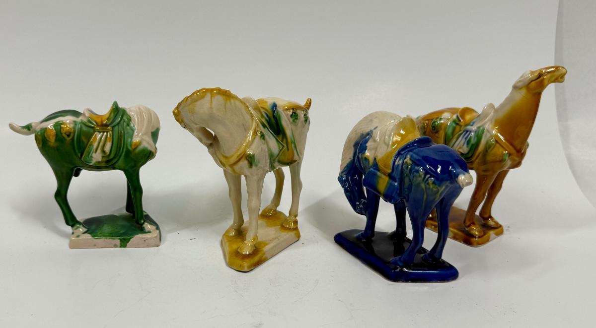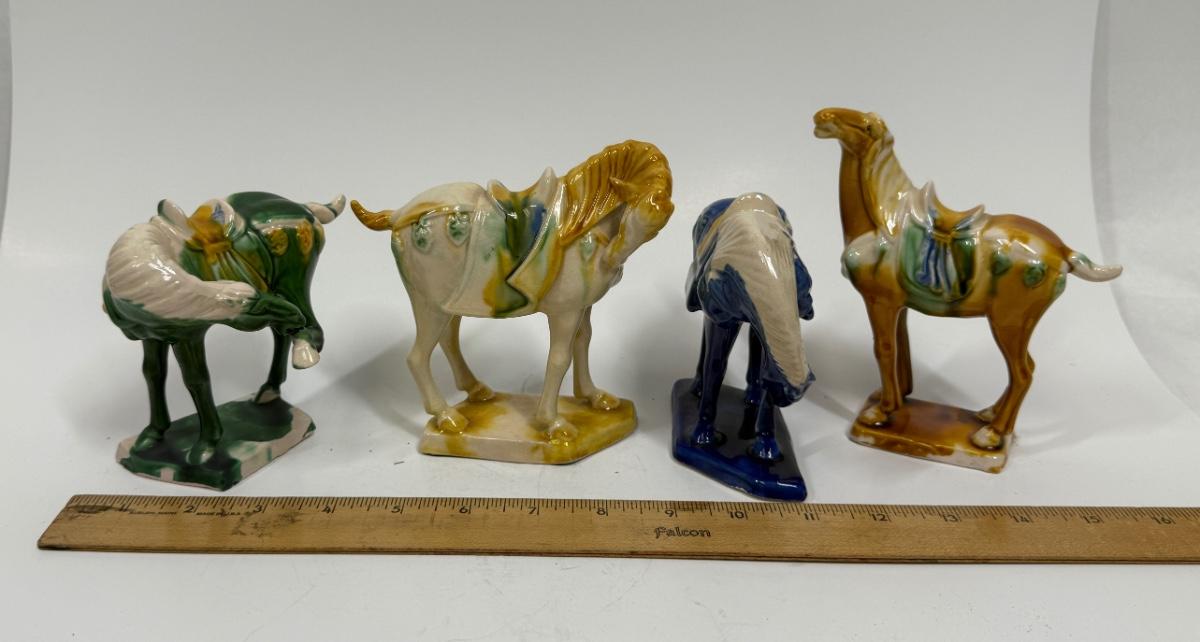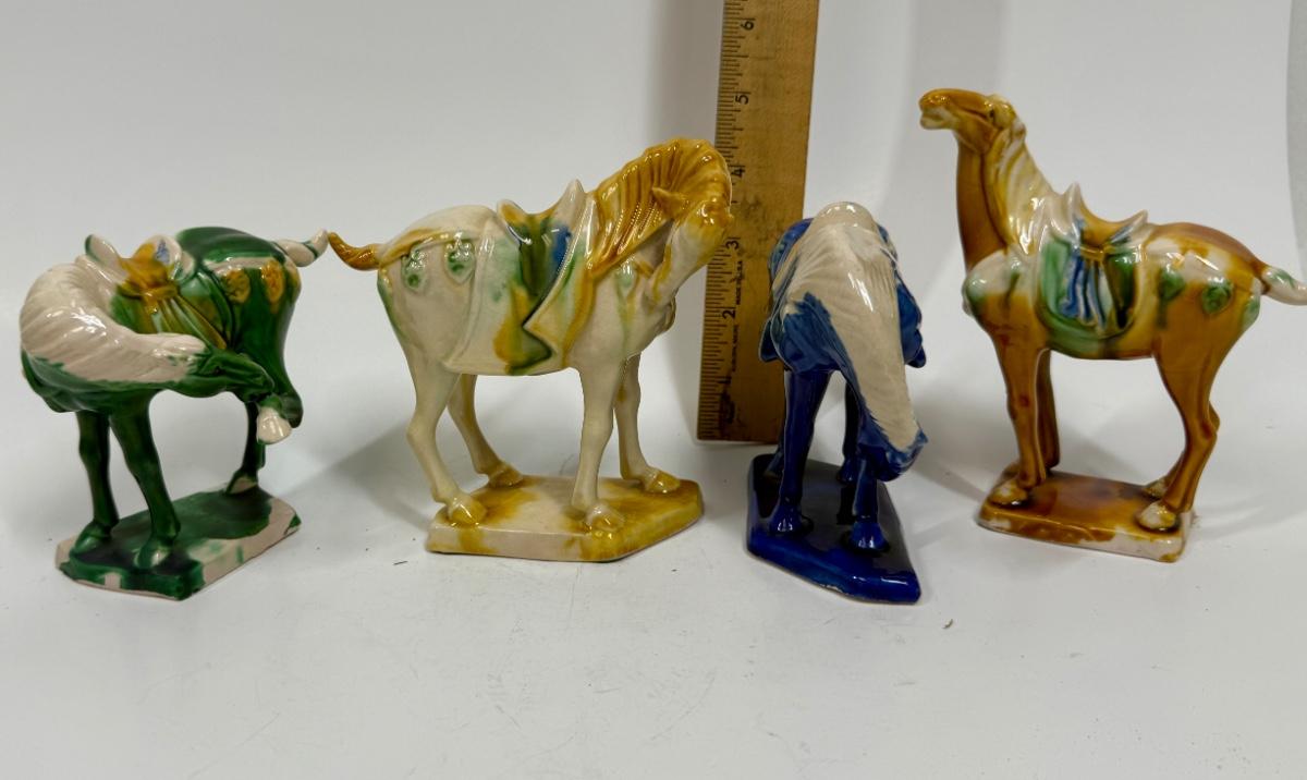 Vintage Chinese Tang Dynasty War Horse Ceramic Figurines