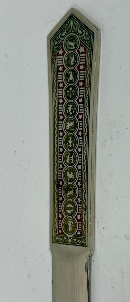Nice scrollwork with the signs of the zodiac on the handle. Good condition.