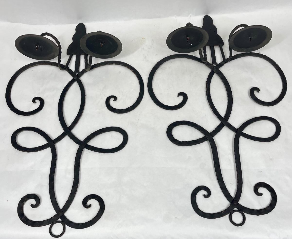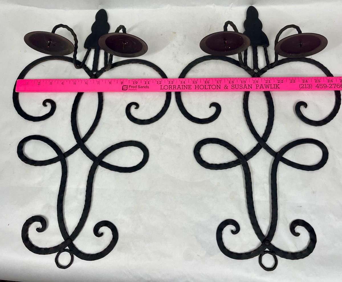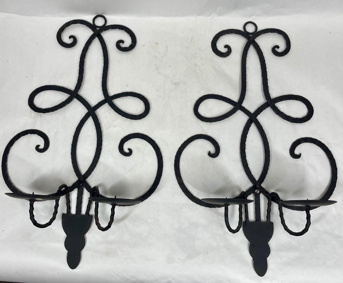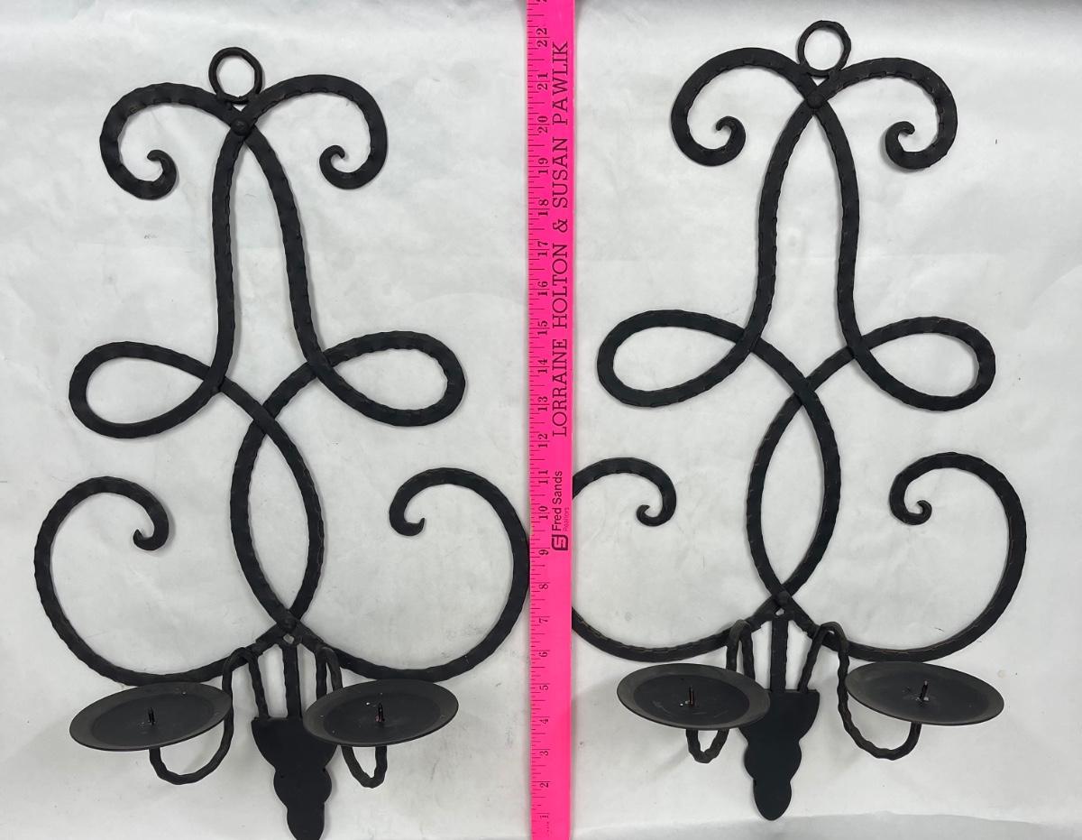 Set of Black Wrought Iron Candlestick Candle Holders Wall Hangings