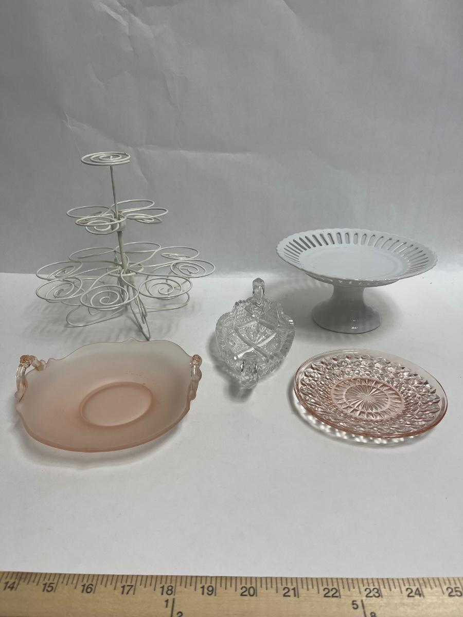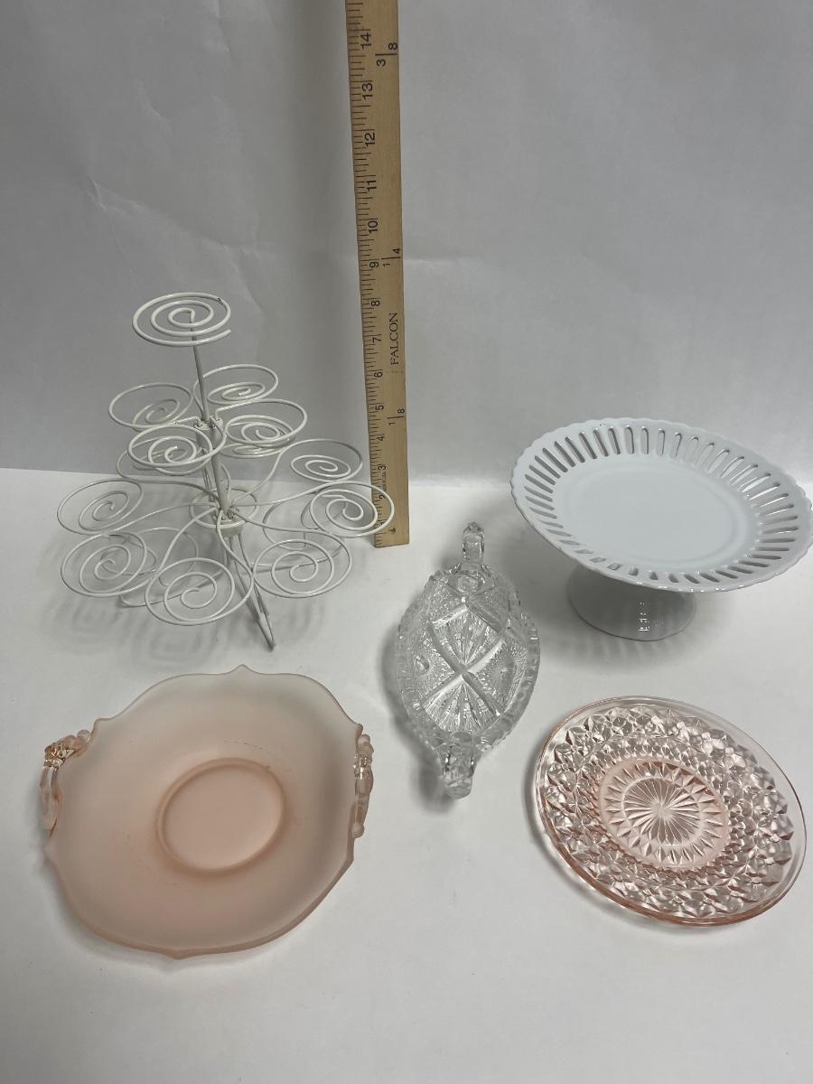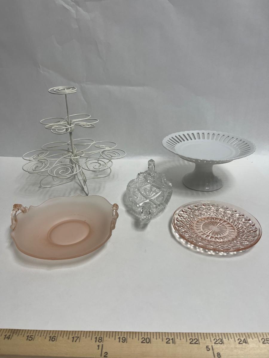 Misc Partyware Glass & Ceramic Dishes and White Metal Cupcake Holder Tree