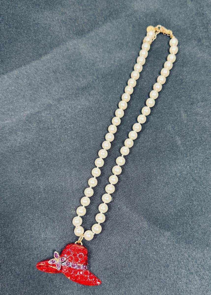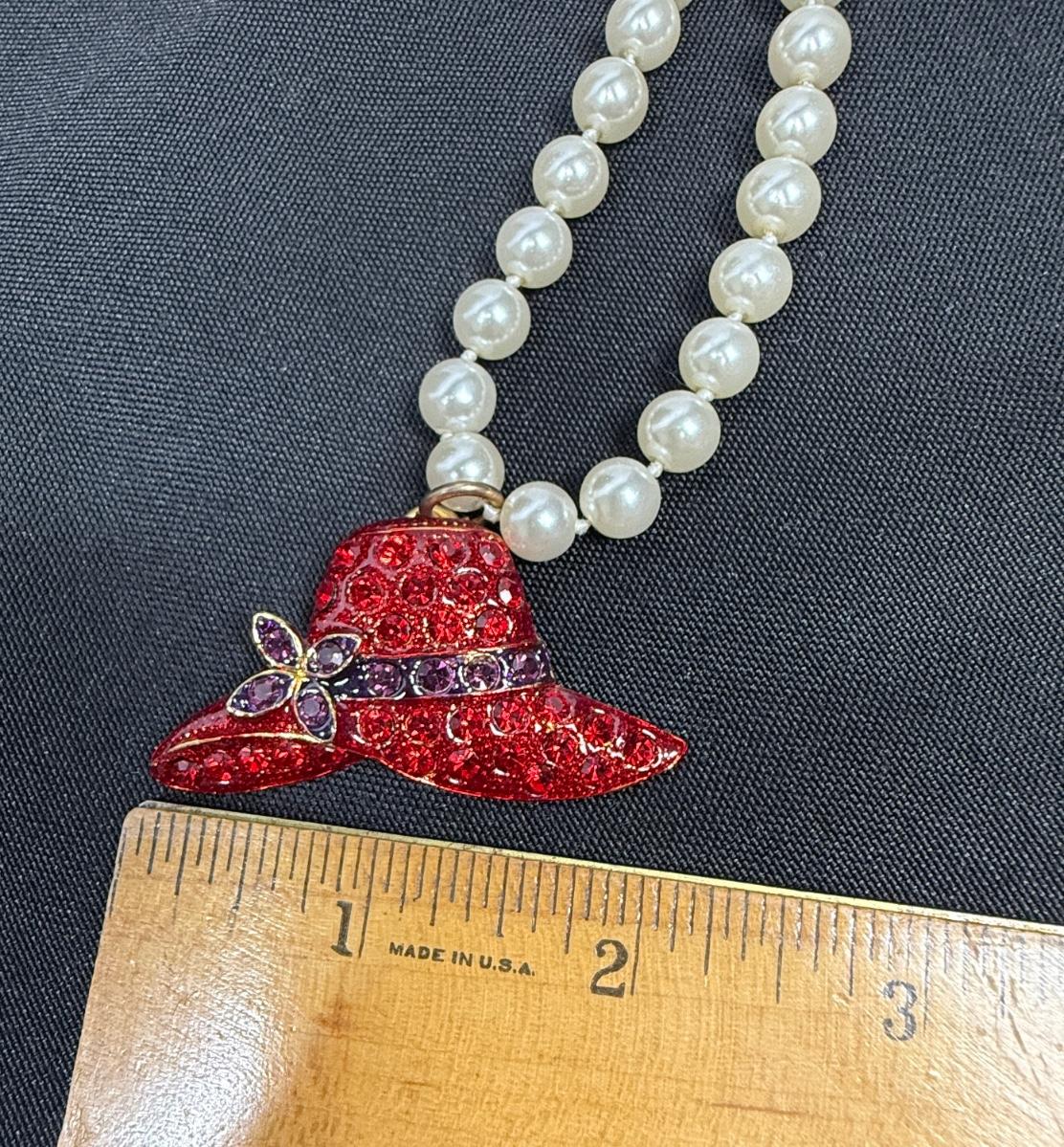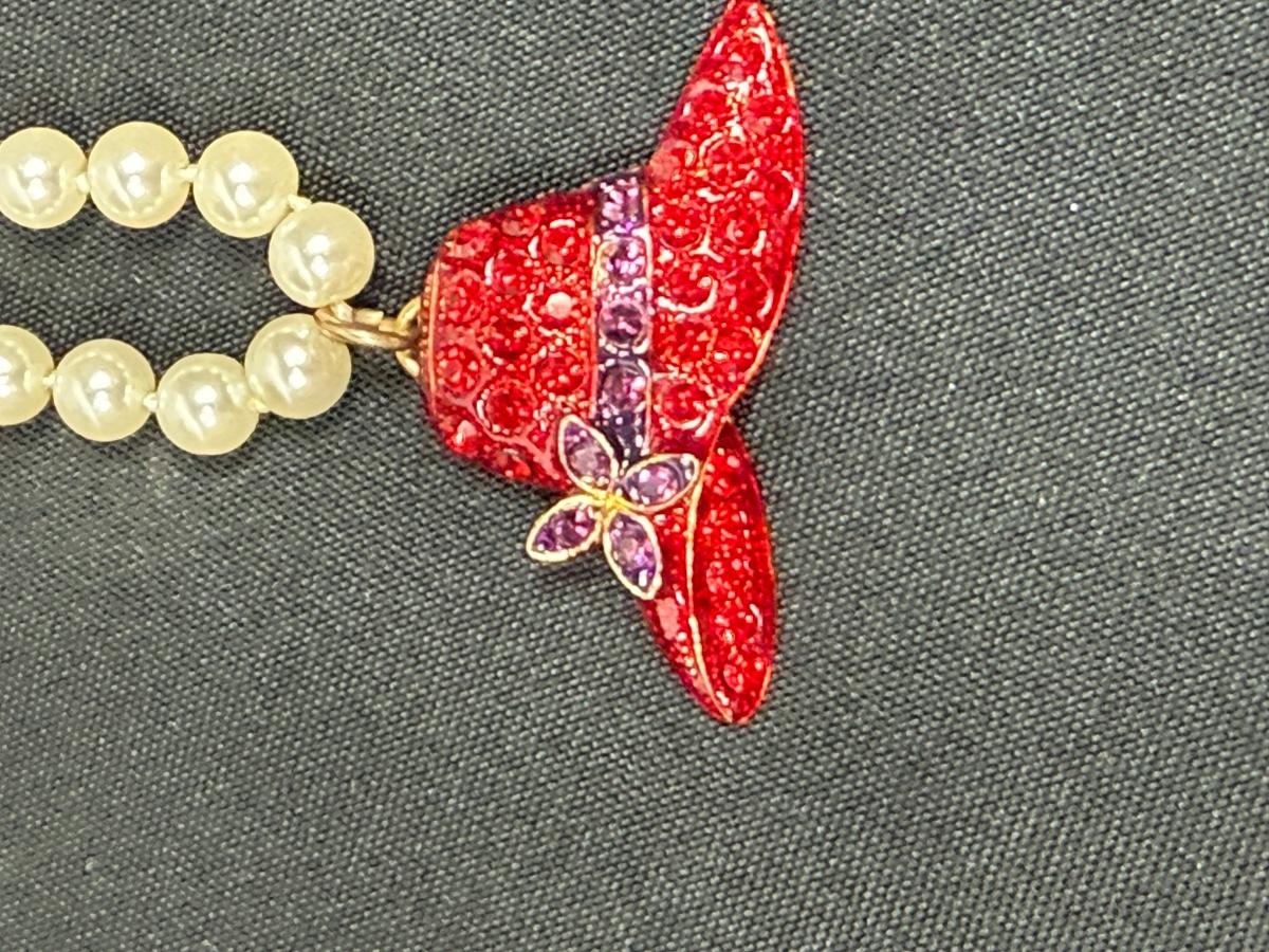Red Hat Society Pendant on Faux Pearl Necklace