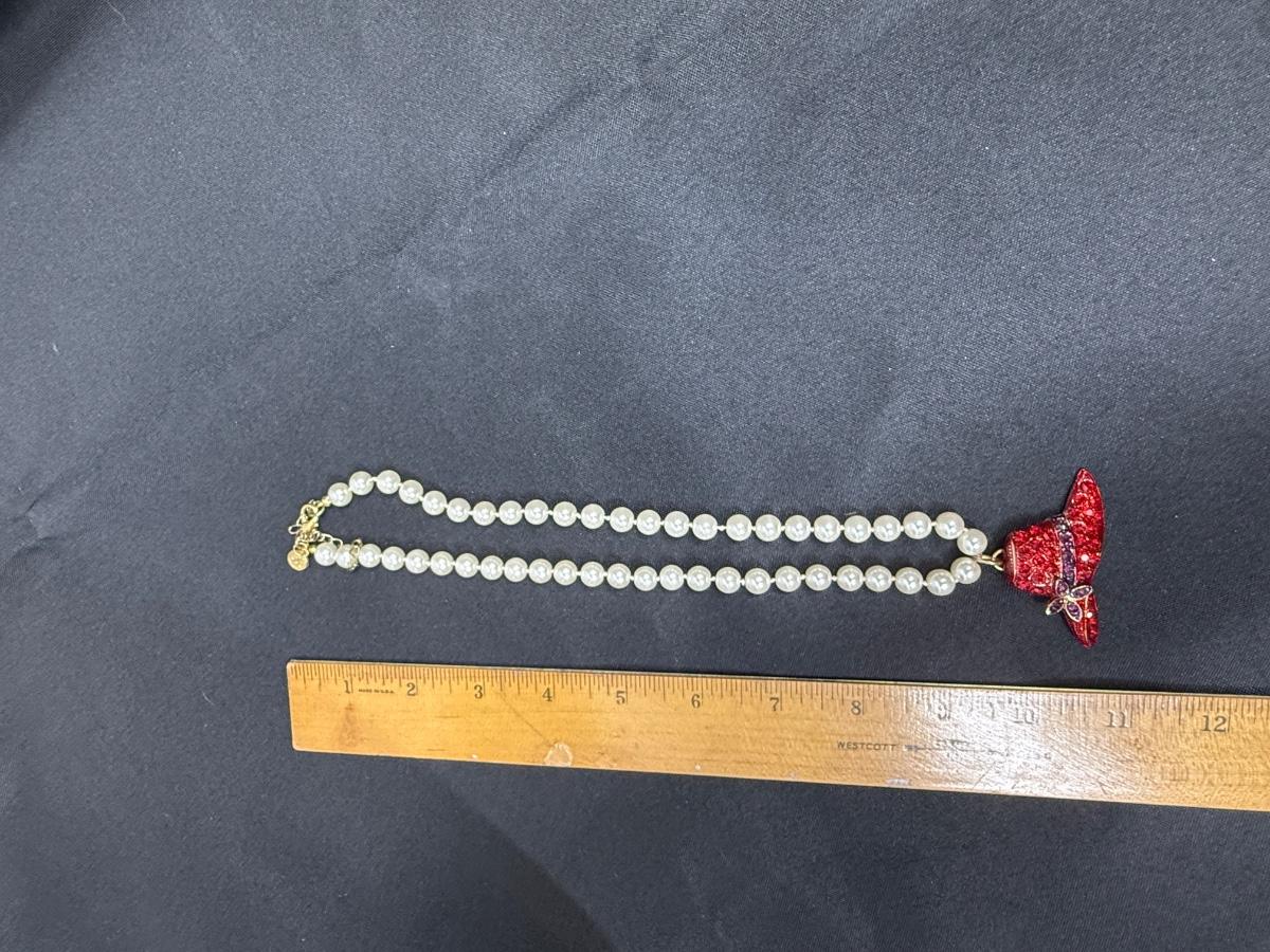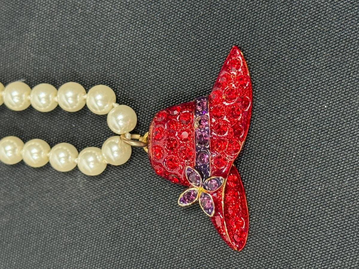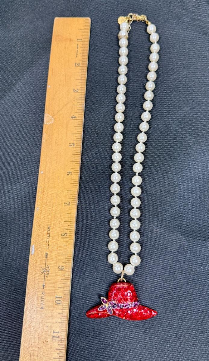 Red Hat Society Pendant on Faux Pearl Necklace