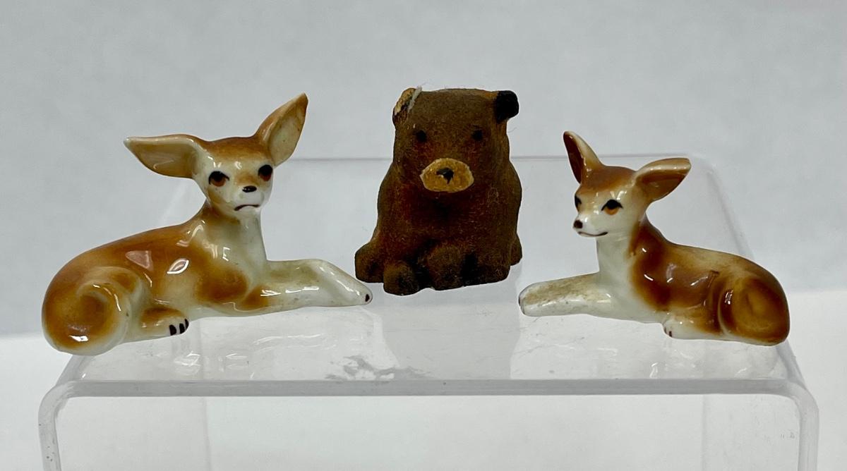 3 Miniature Animal Figurines - 2 deer and 1 bear