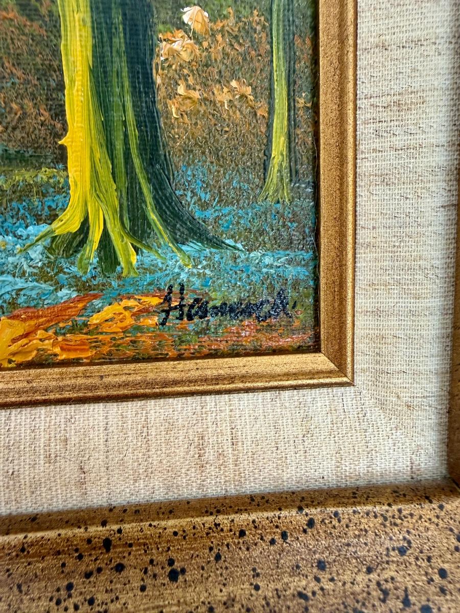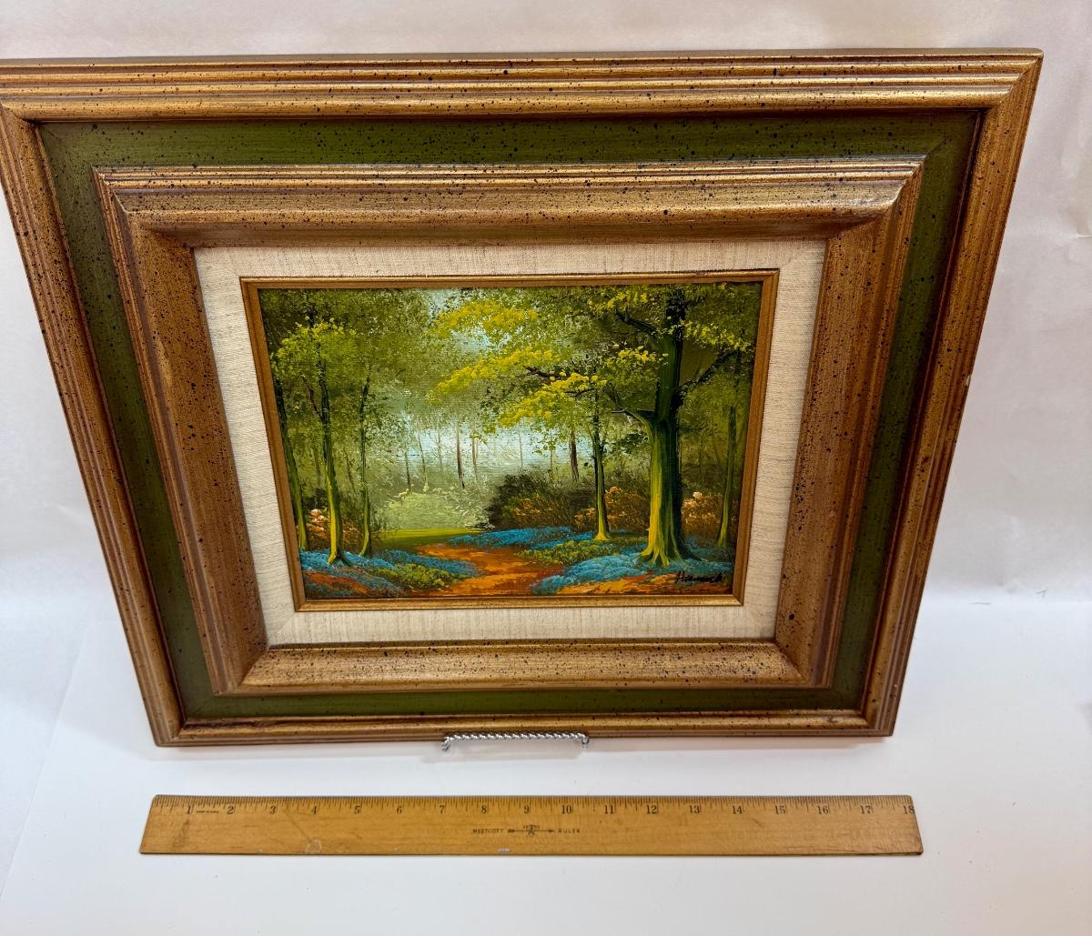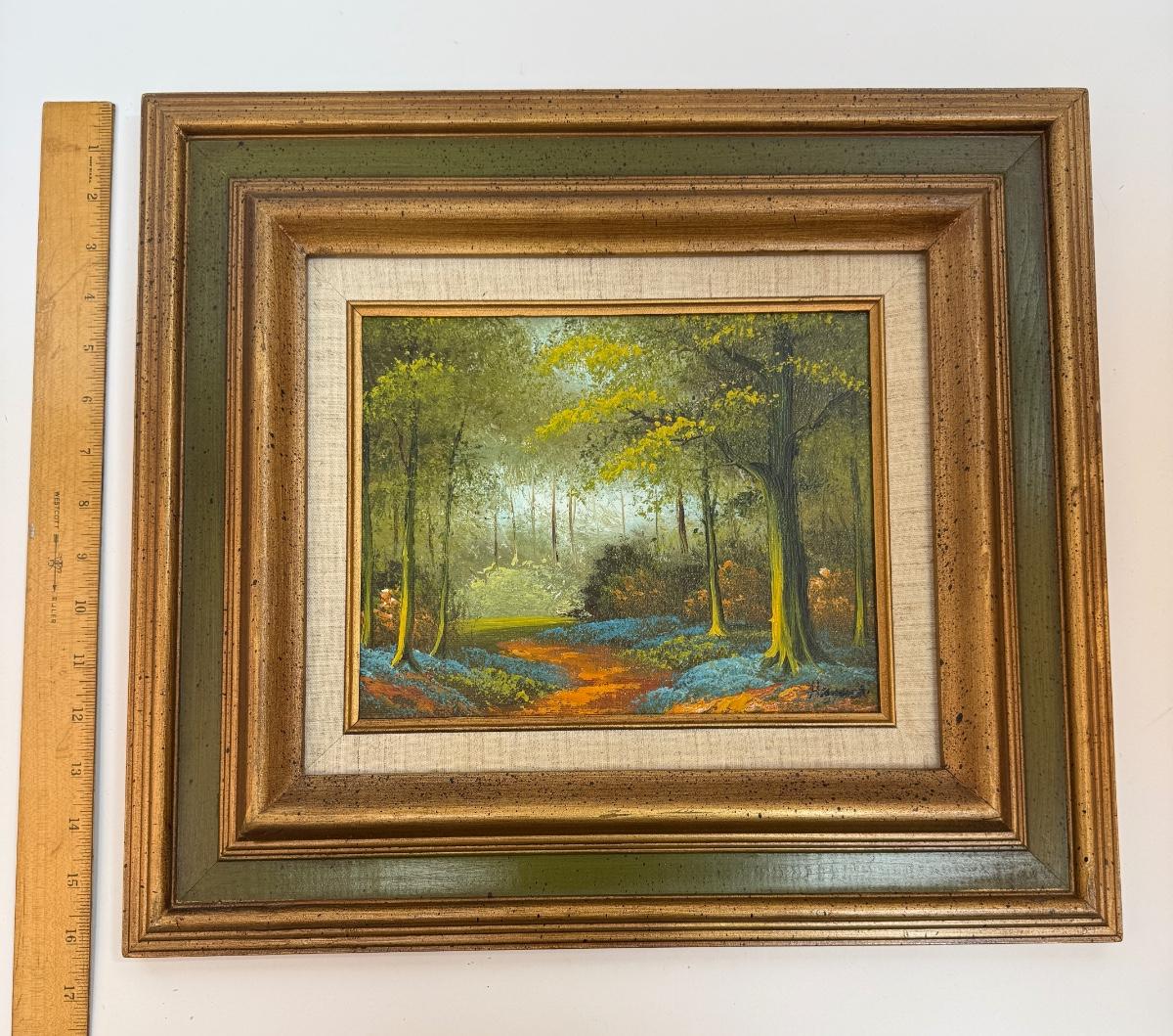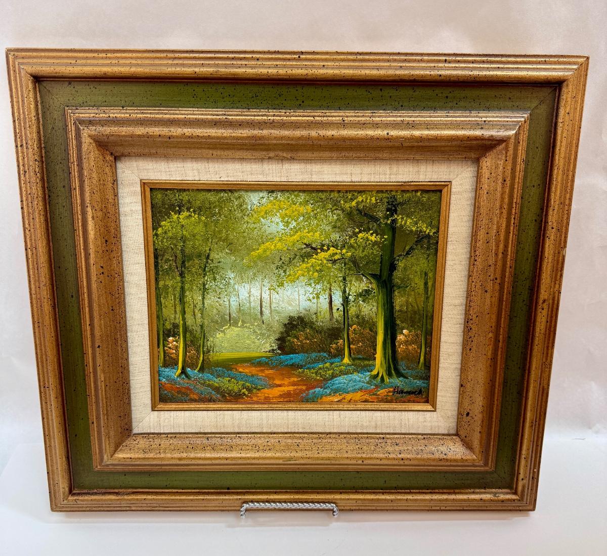 Framed Art: Oil on Canvas Forest Trail Landscape