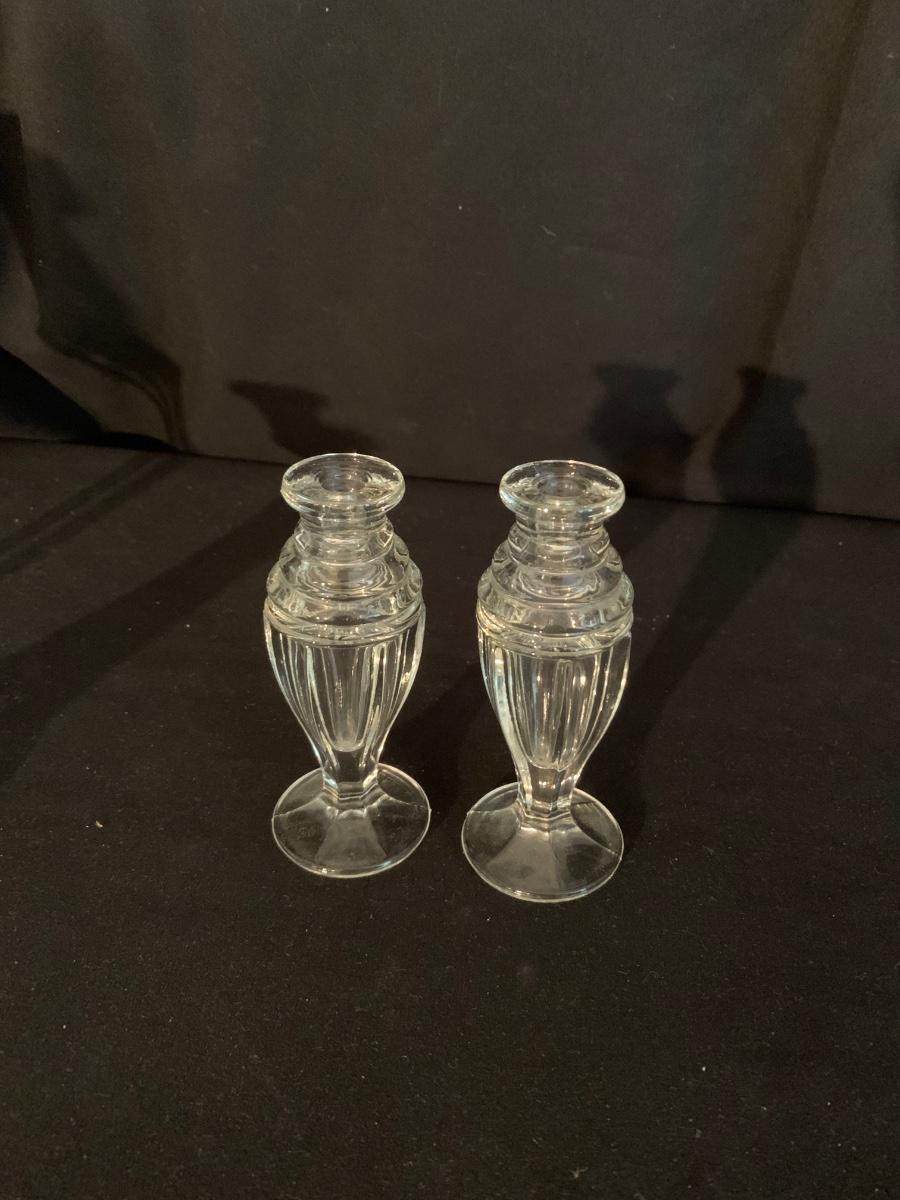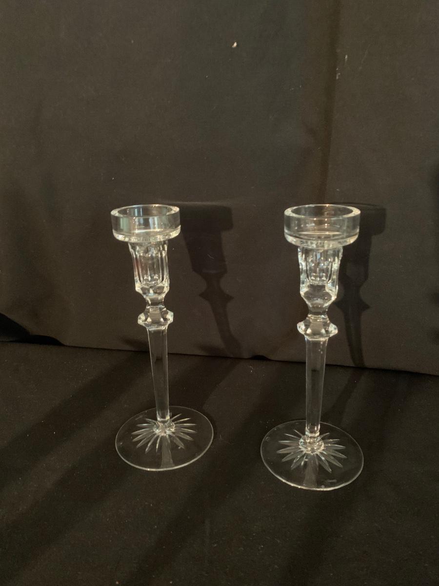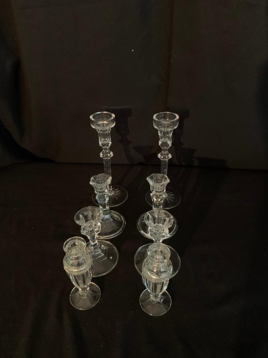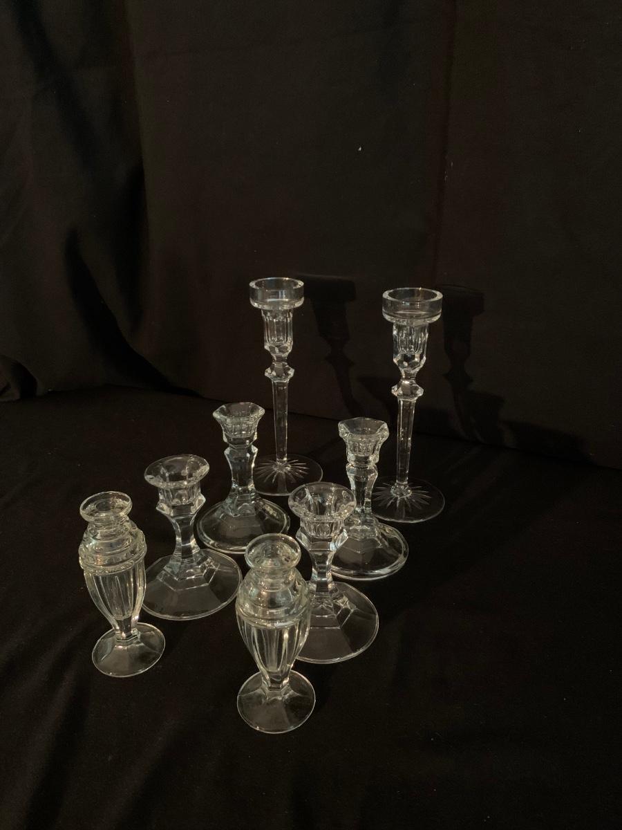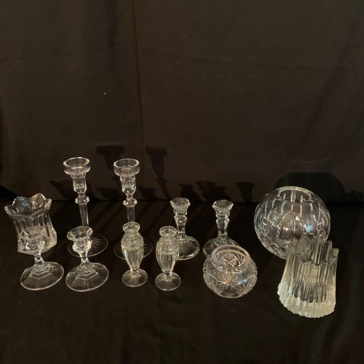 This lot includes a wide variety of Rosenthal glassware. The lot includes 8 candle holders and 4 vases. The tallest set of candle holders appears to be branded (see photos). This glassware appears to Rosenthal. The largest piece measures about 8in. Shipping available.