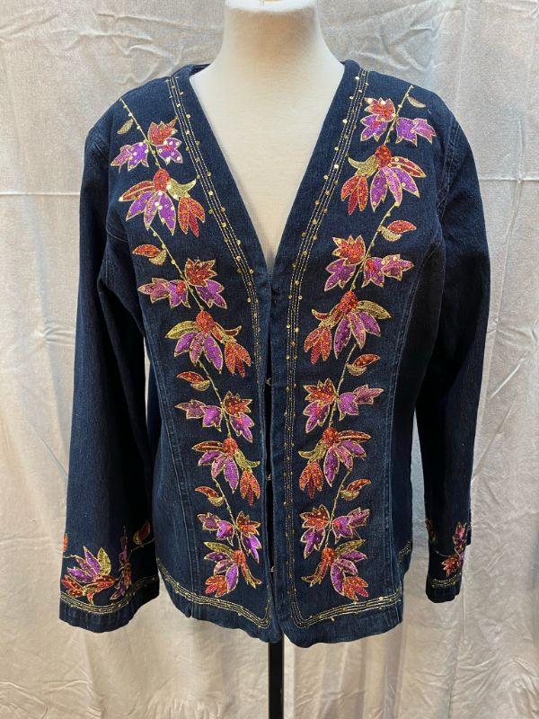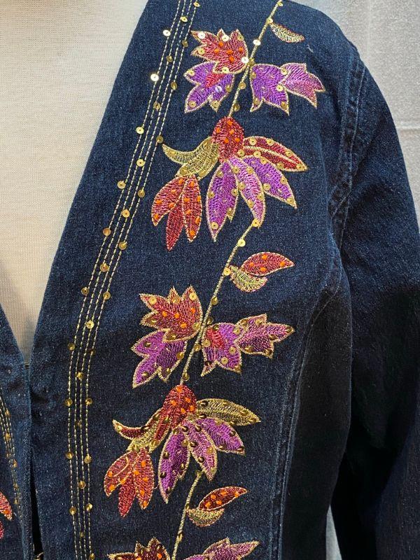 DG2 by Diane Gilman Floral Embroidered Denim Coat Jacket Size XL YD#020-1220-02158
