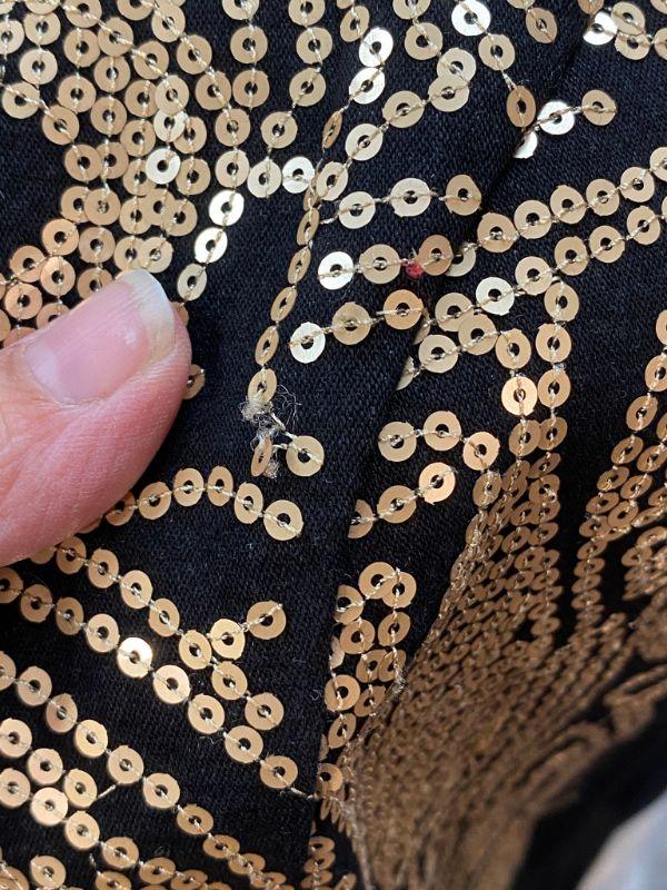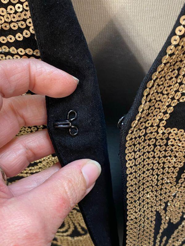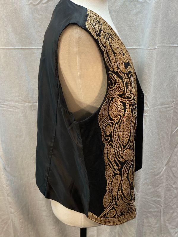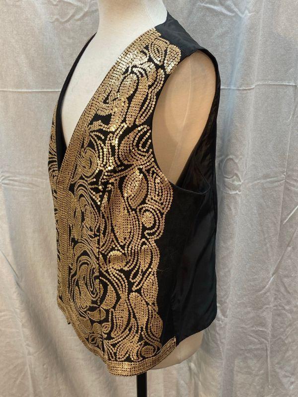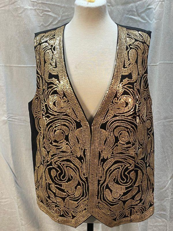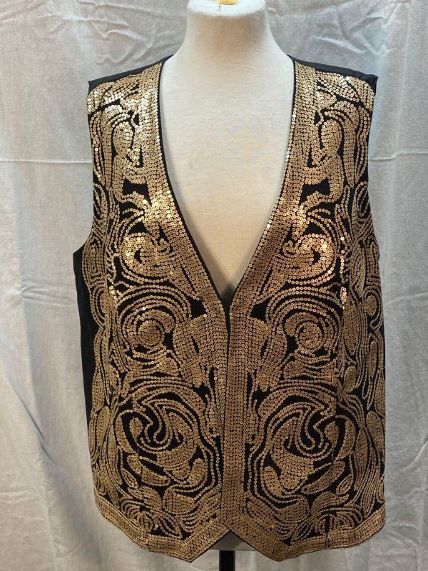 DG2 by Diane Gilman gold sequin embellished vest. Gold on black. Size XL. Hook and eye closure. Good condition, did notice a couple of loose sequins.