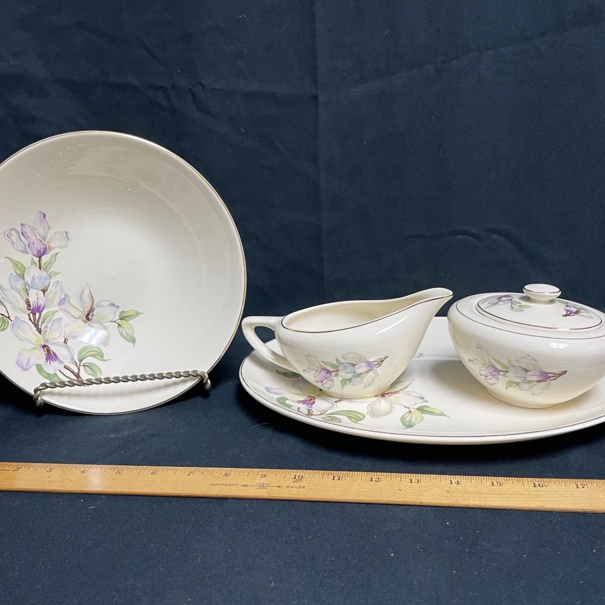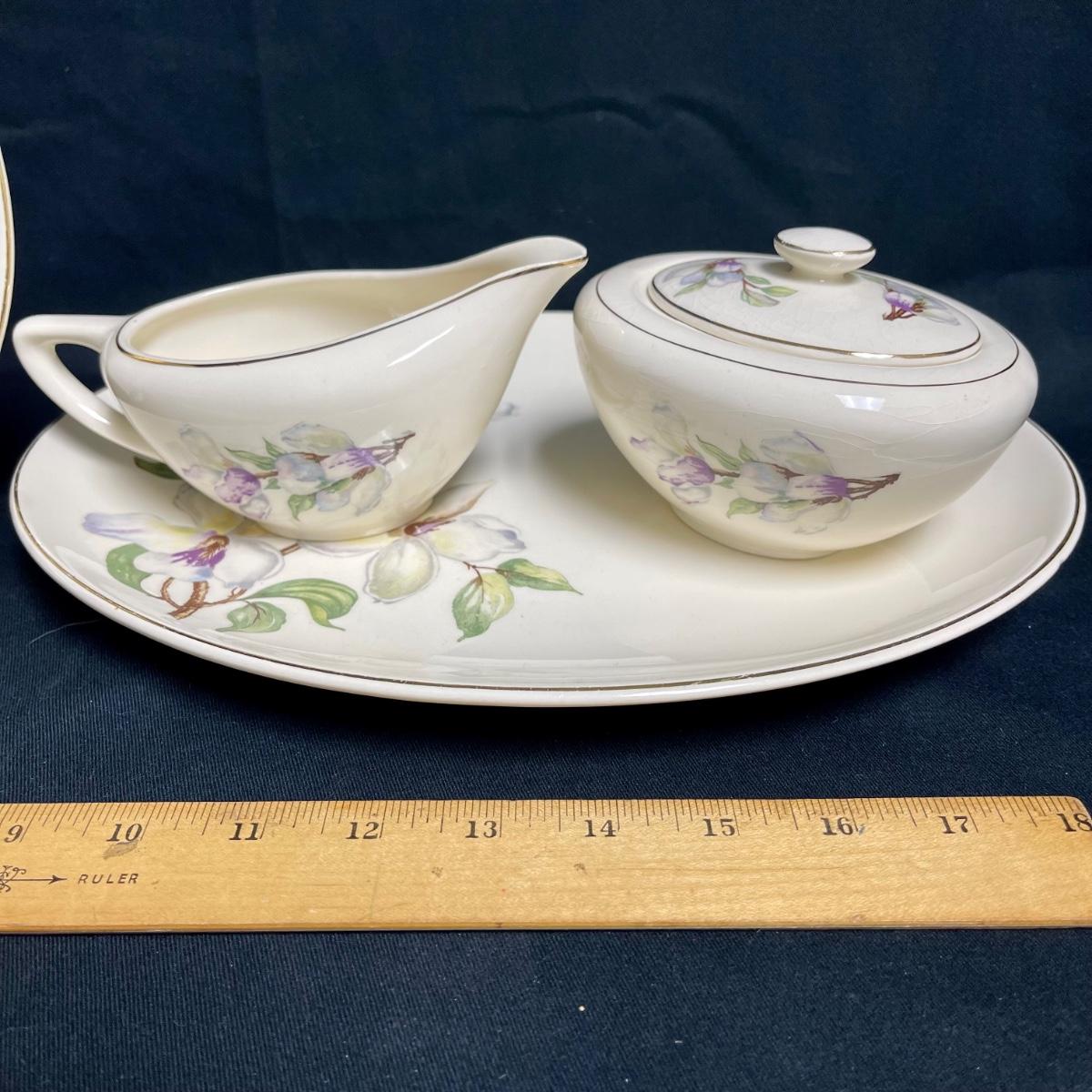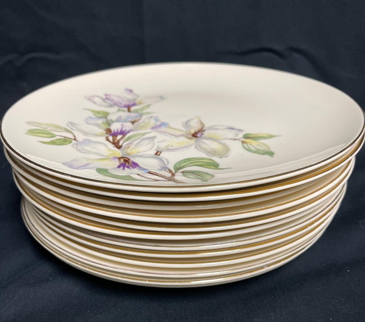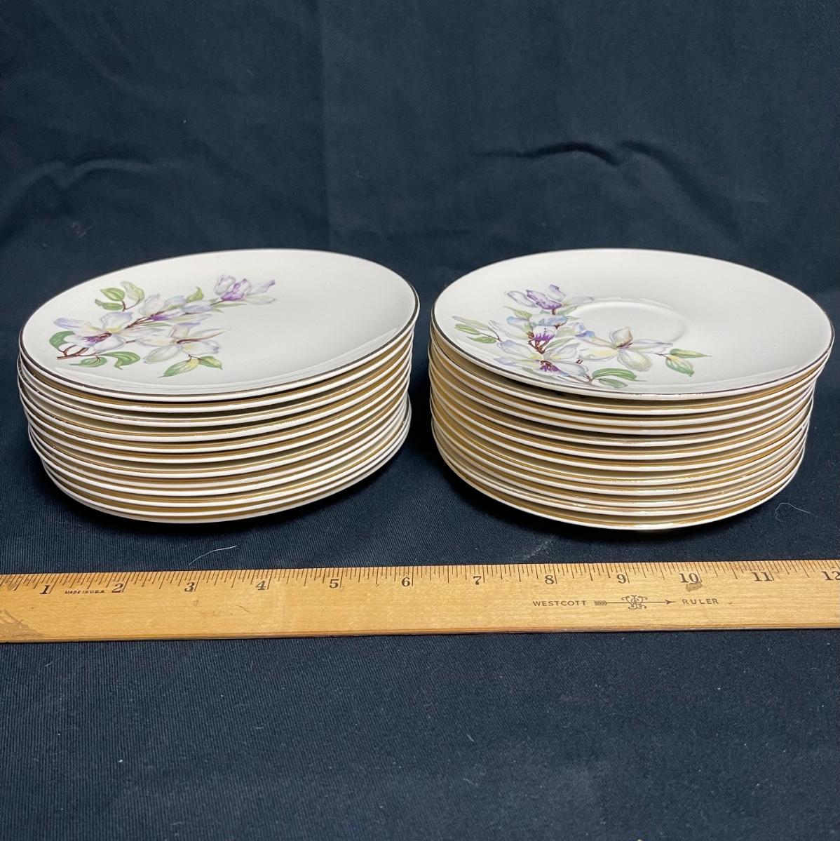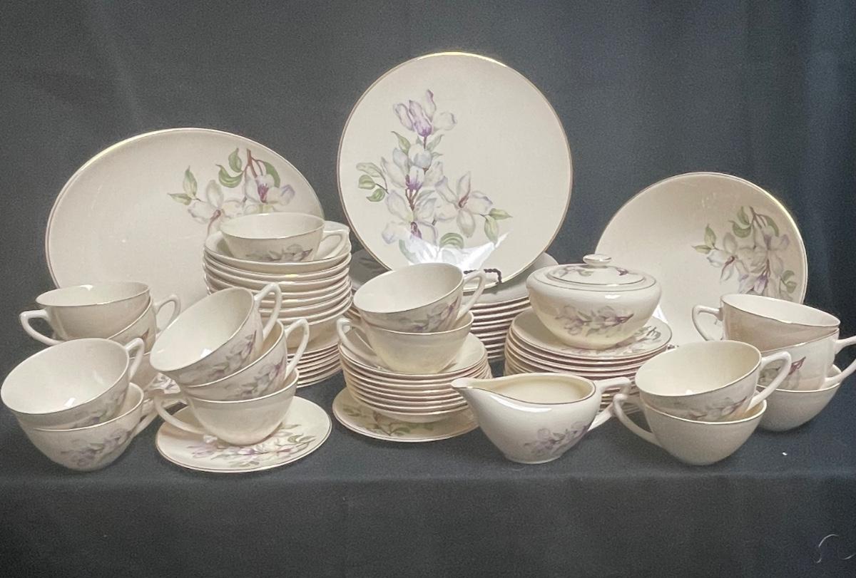Large 70 pc set of Vintage China Knowles Natchez Accent Magnolia Flowers white lavender