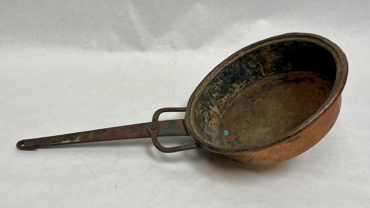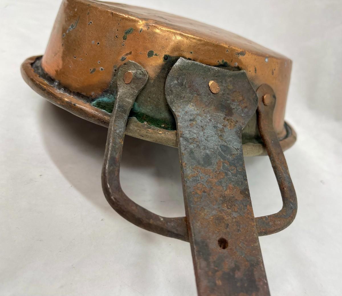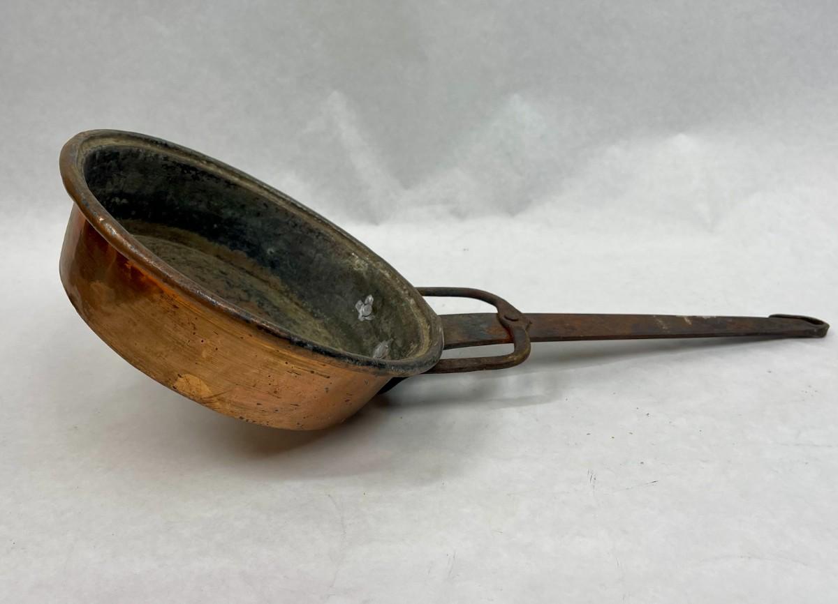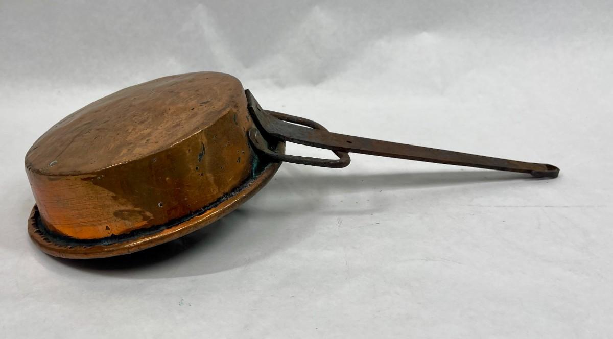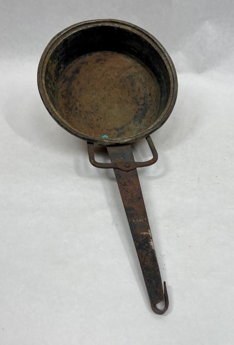Antique Primitive Hand Hammered Copper & Cast Iron Hanging Frying Pan