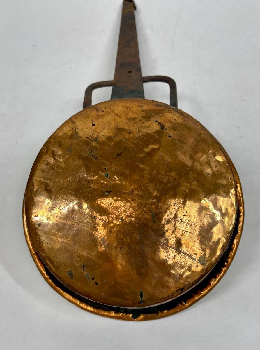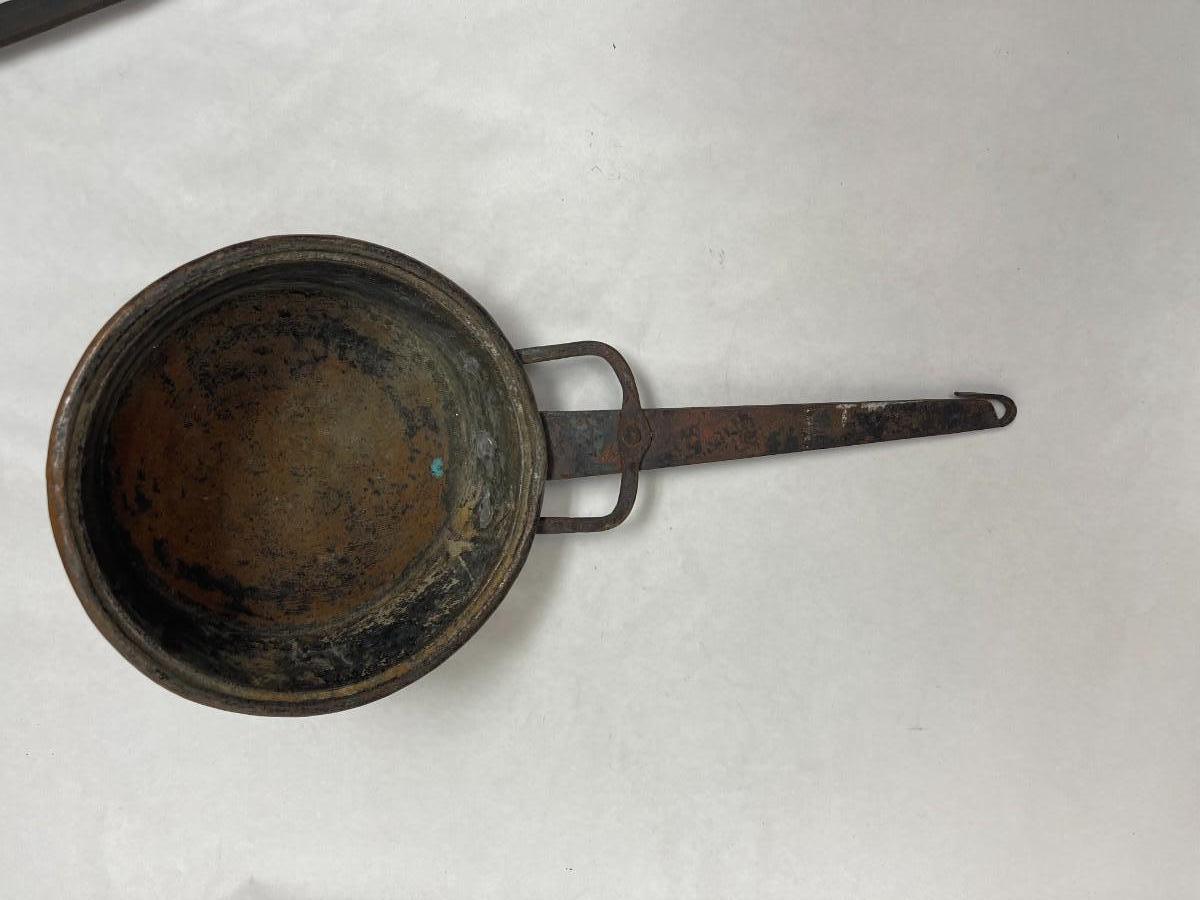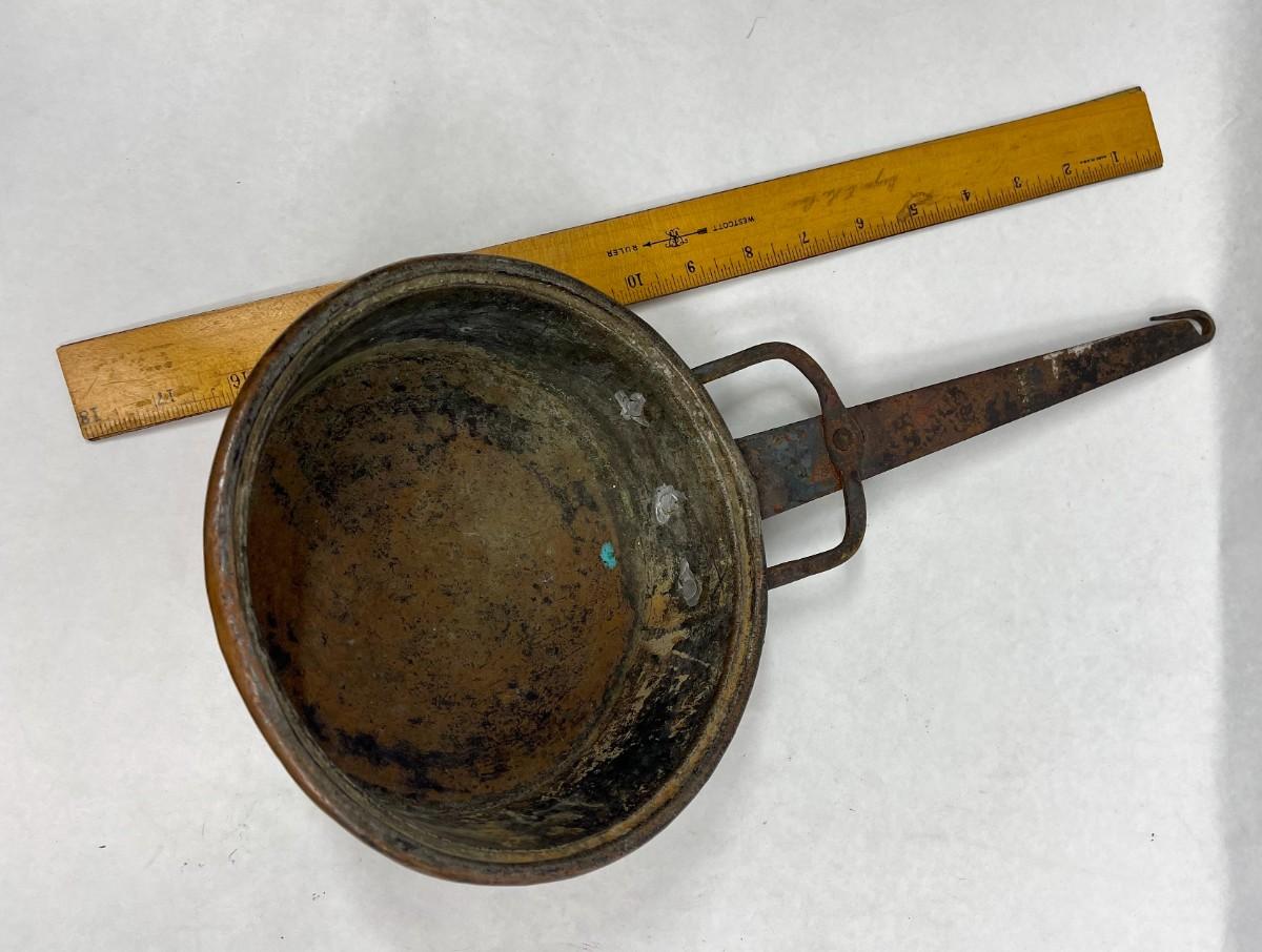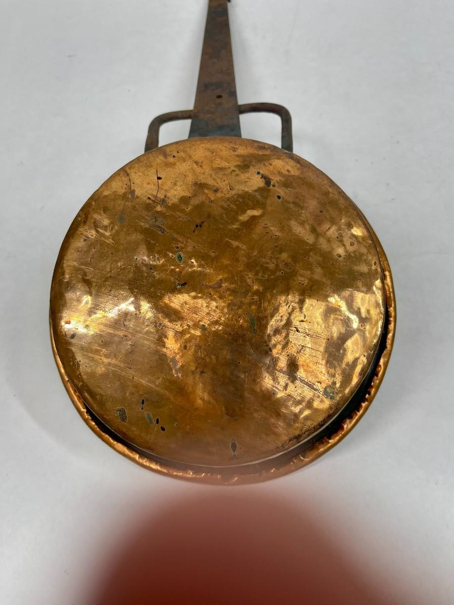 Antique Primitive Hand Hammered Copper & Cast Iron Hanging Frying Pan