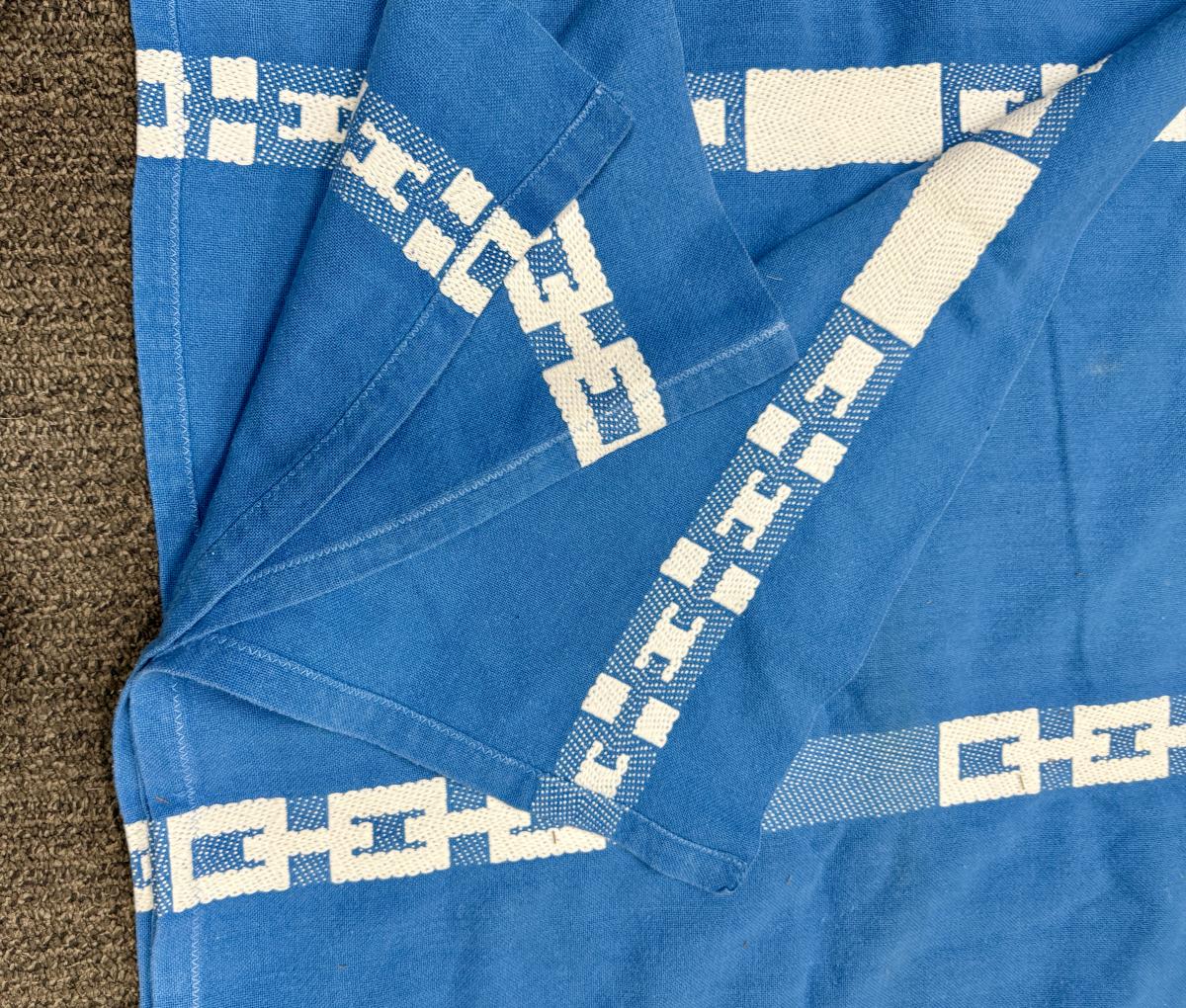 Vintage Linen Woven Cotton Blue and White Bedspread 156” x 132”