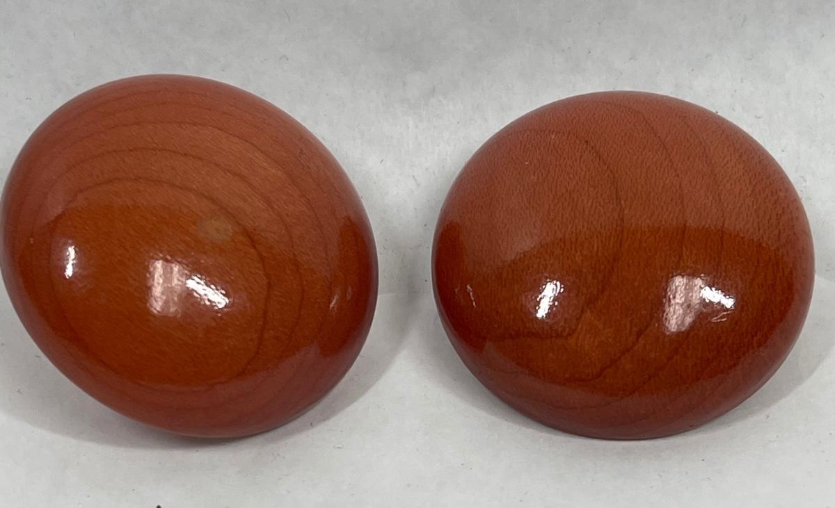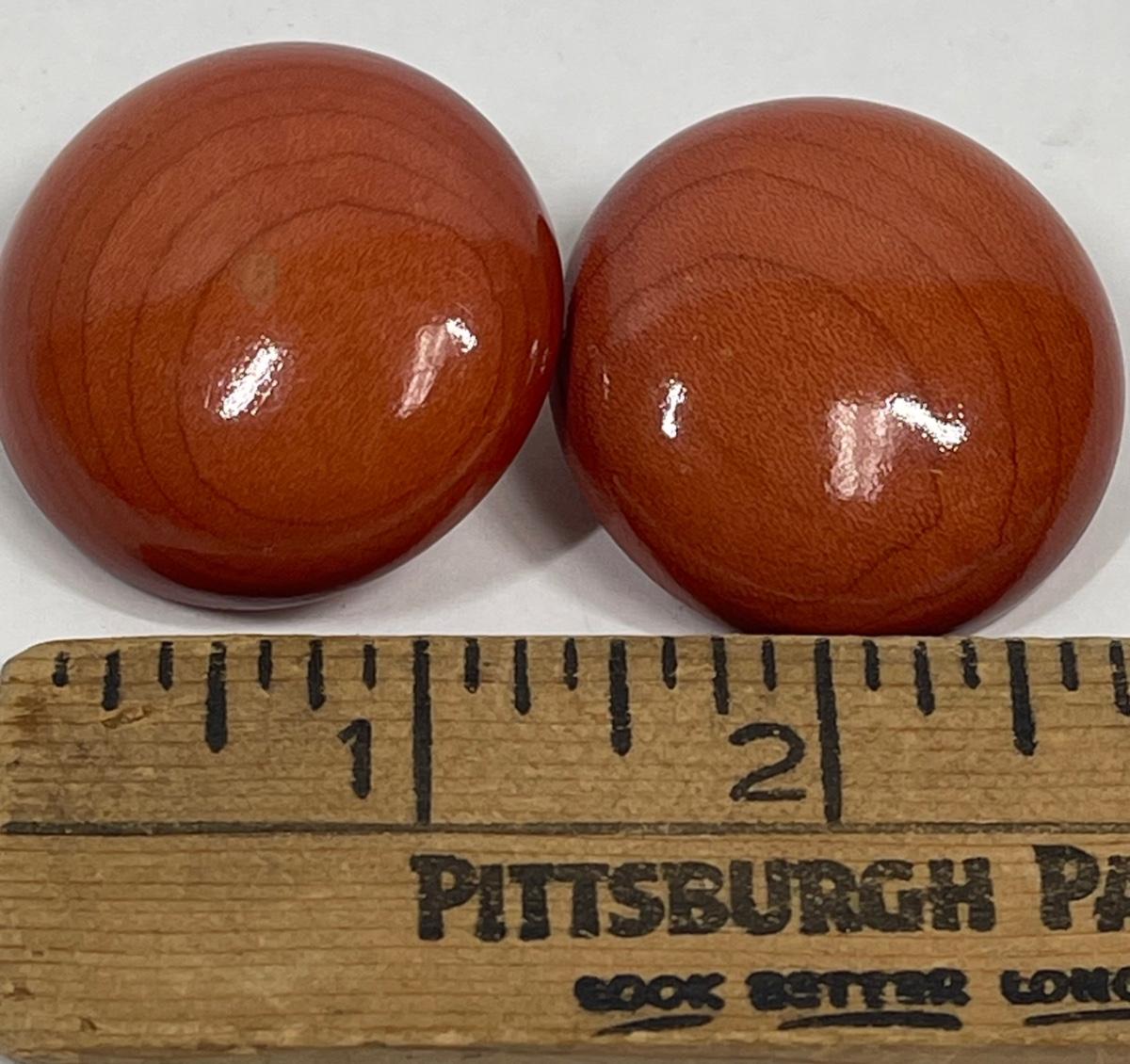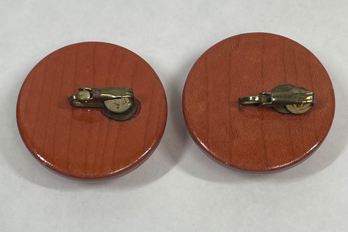 Polished Wood Button Style Clip-on Earrings