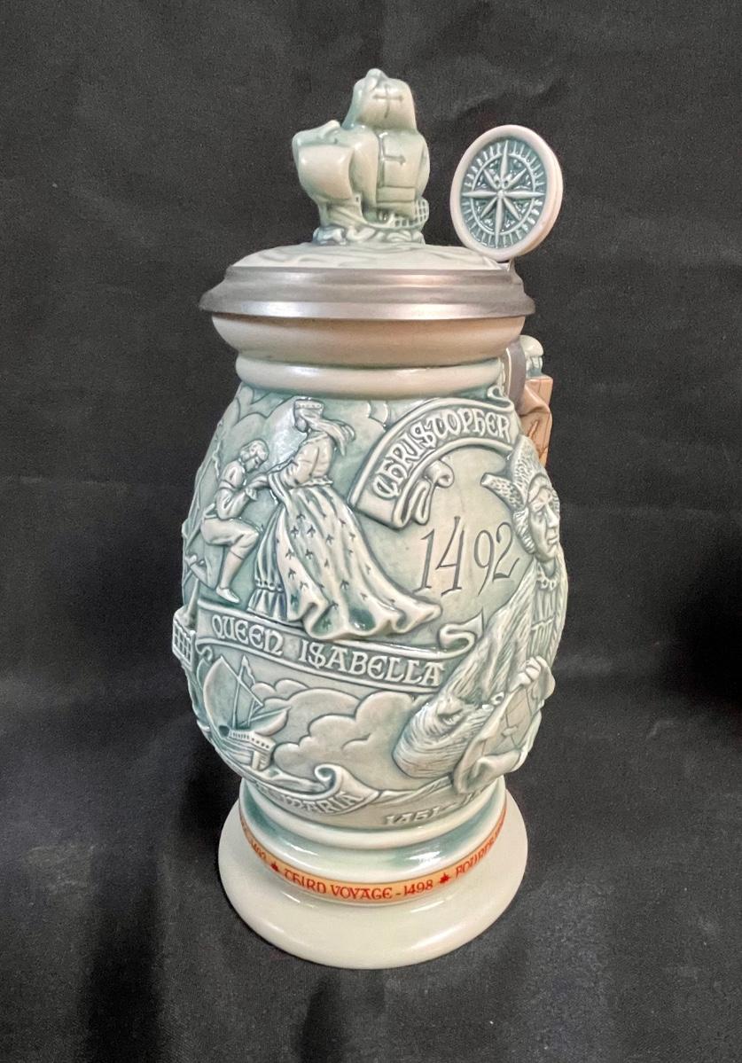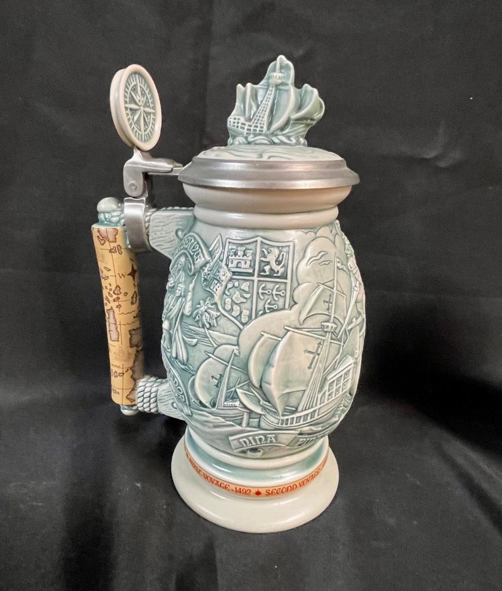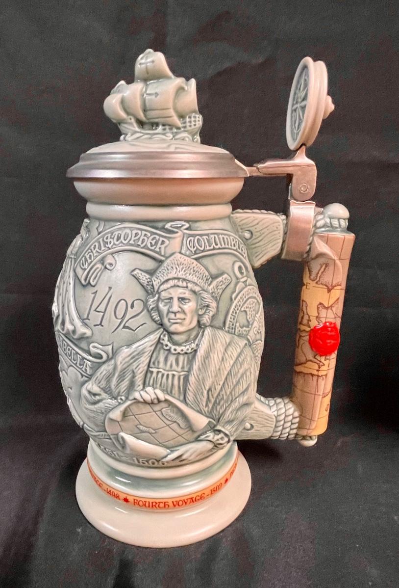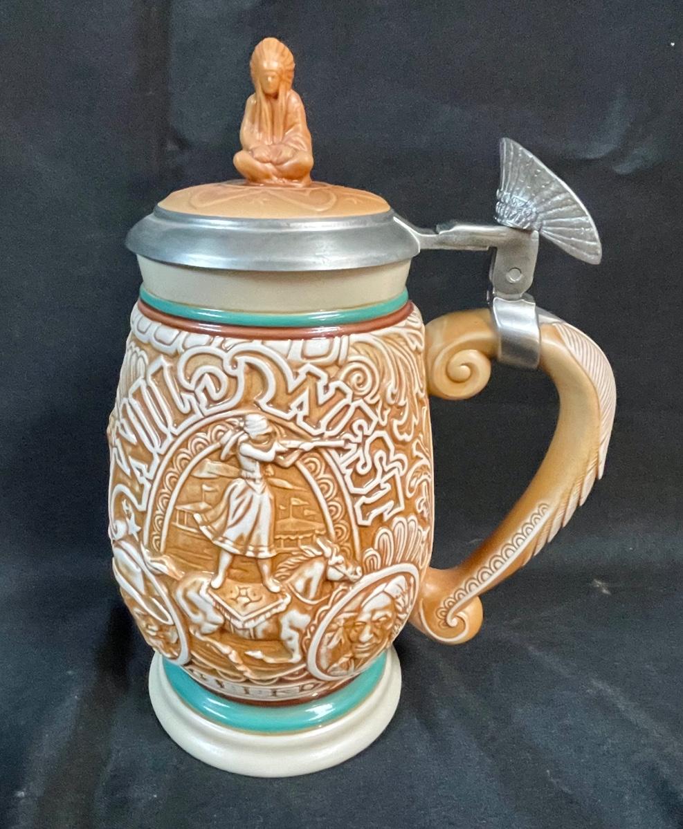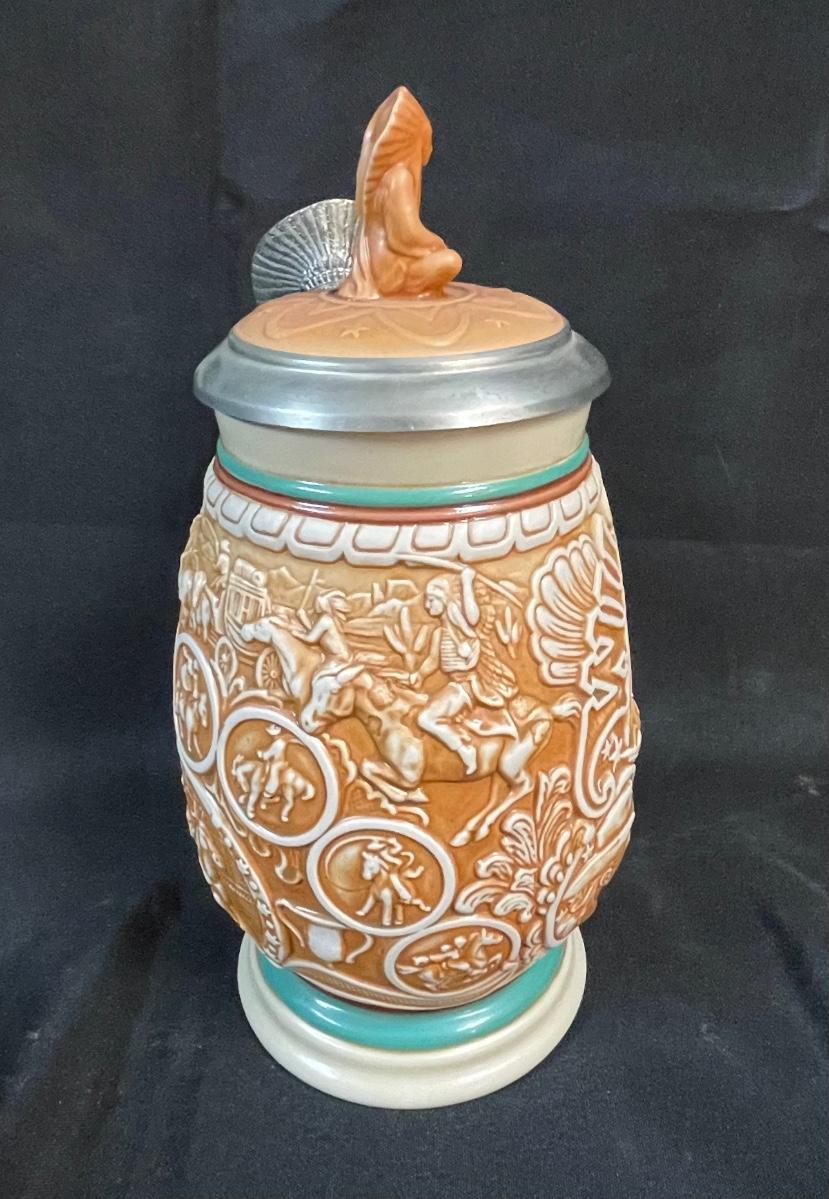 Beer Stein Lot - 4 AVON Beer Mugs Steins with sculpted sides and figural tops Early America theme