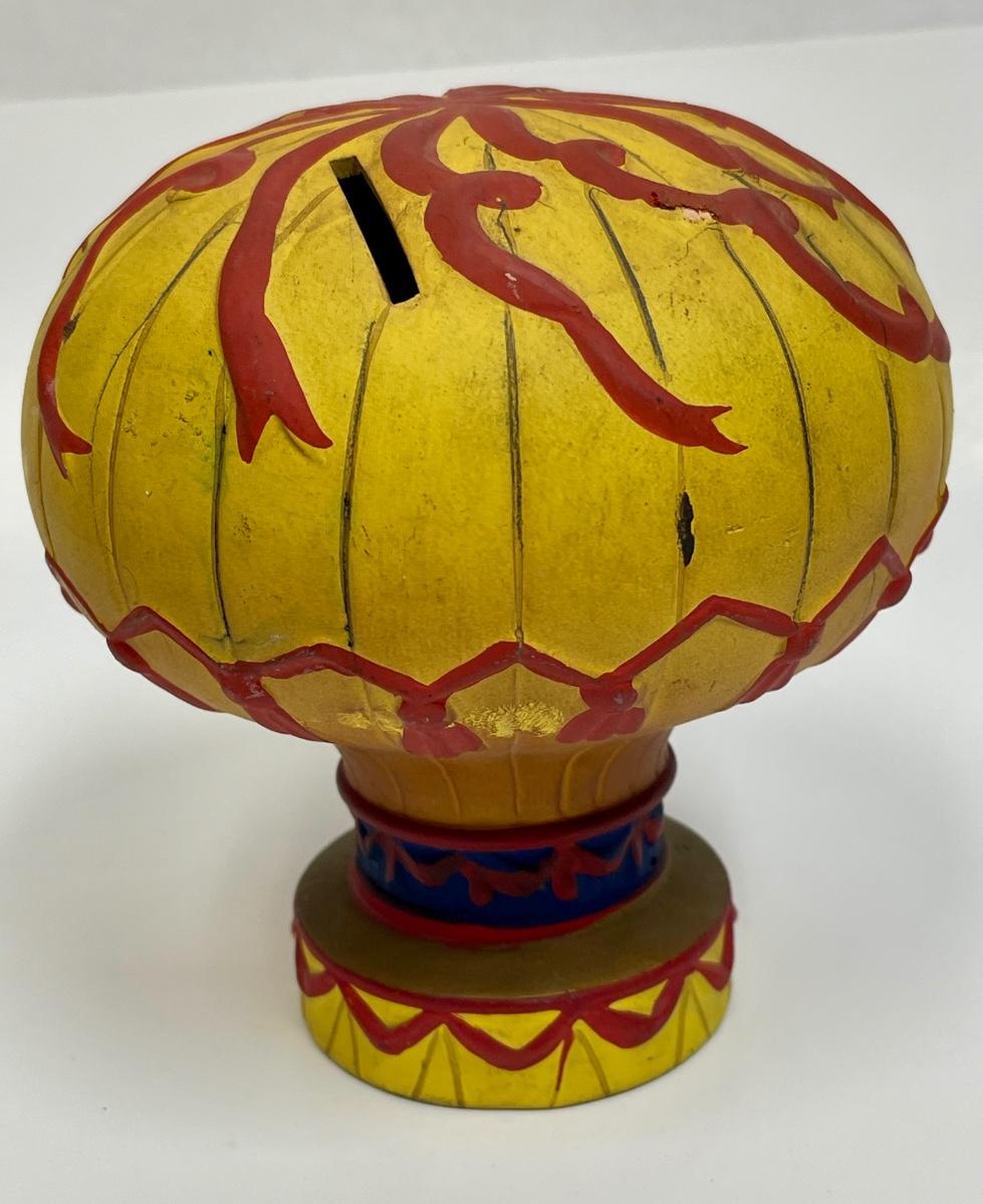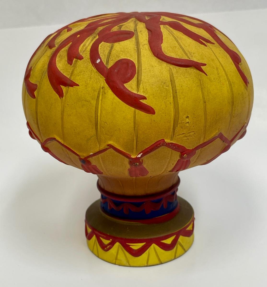 Copies the style of French hot-air balloons of the 18th century. Rubber stopper at the bottom has dried out and falls out of the bottom hole, otherwise in good condition. Approx. 5" tall.