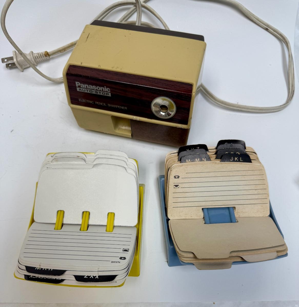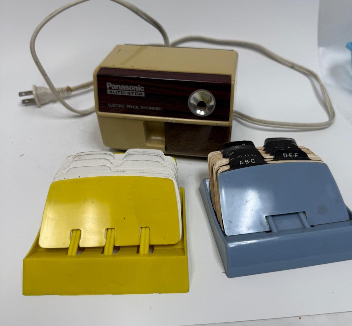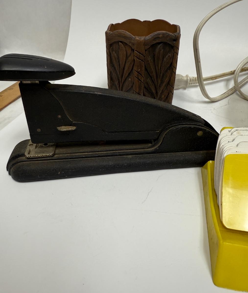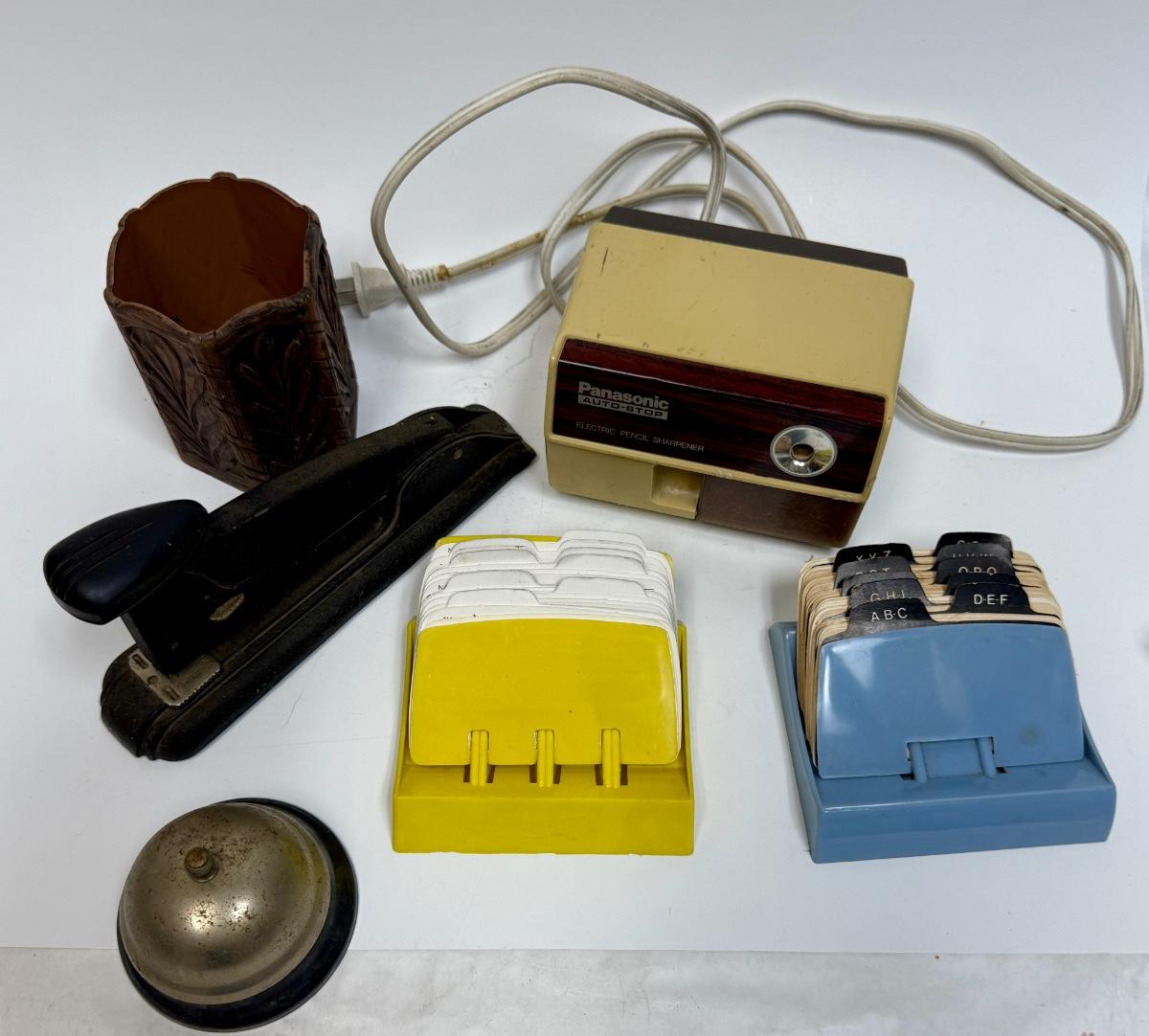 Vintage Office Supplies Tools Sharpener Stapler Bell Pencil Cup Address Flip Files