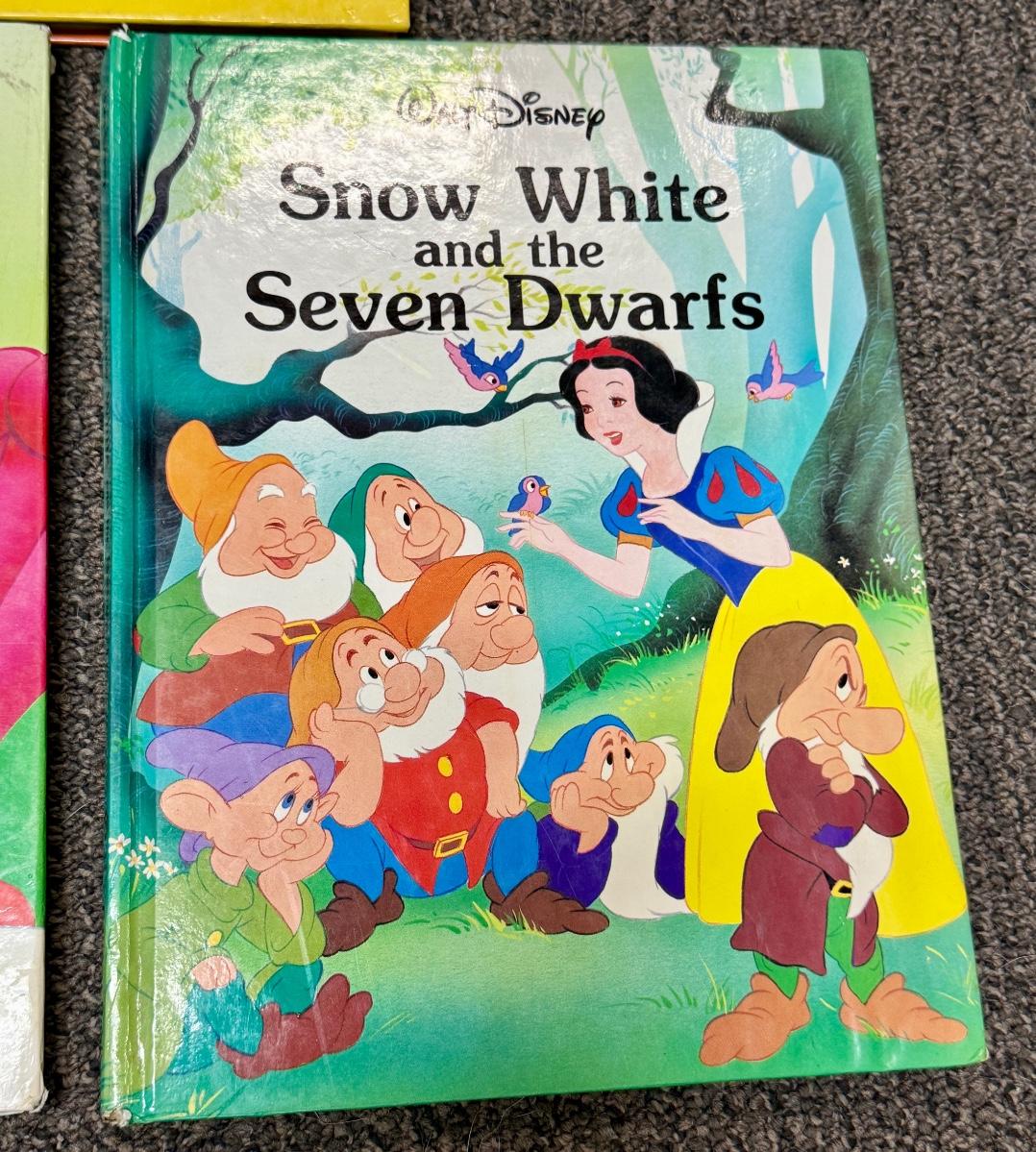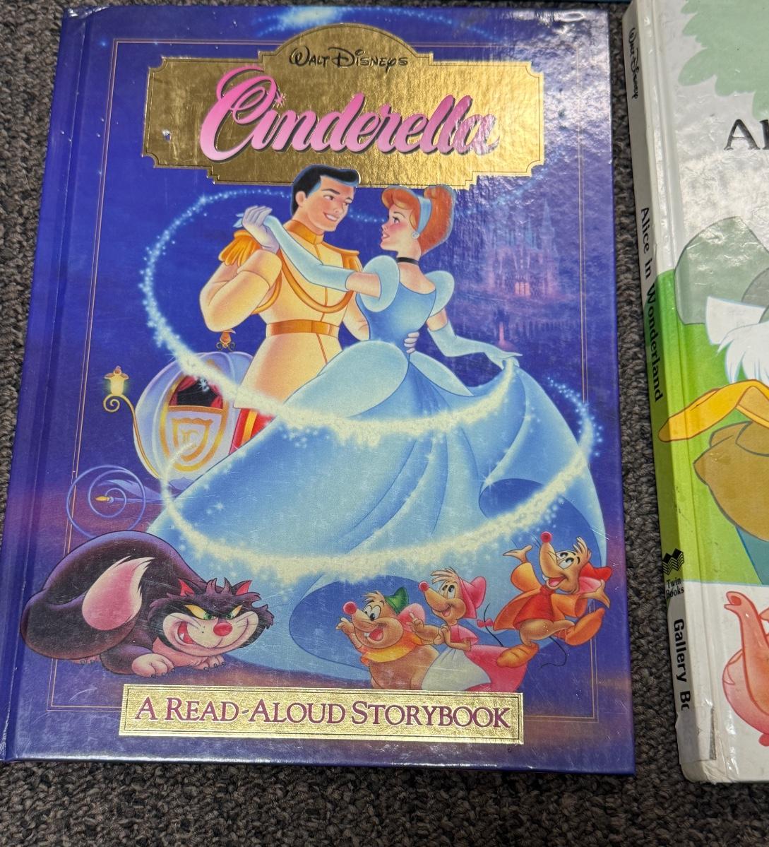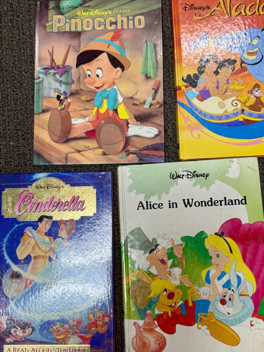 Large format with color images . Titles include Aladdin, Cinderella, Snow White and the Seven Draws, Pinocchio, and more. Like-new condition.