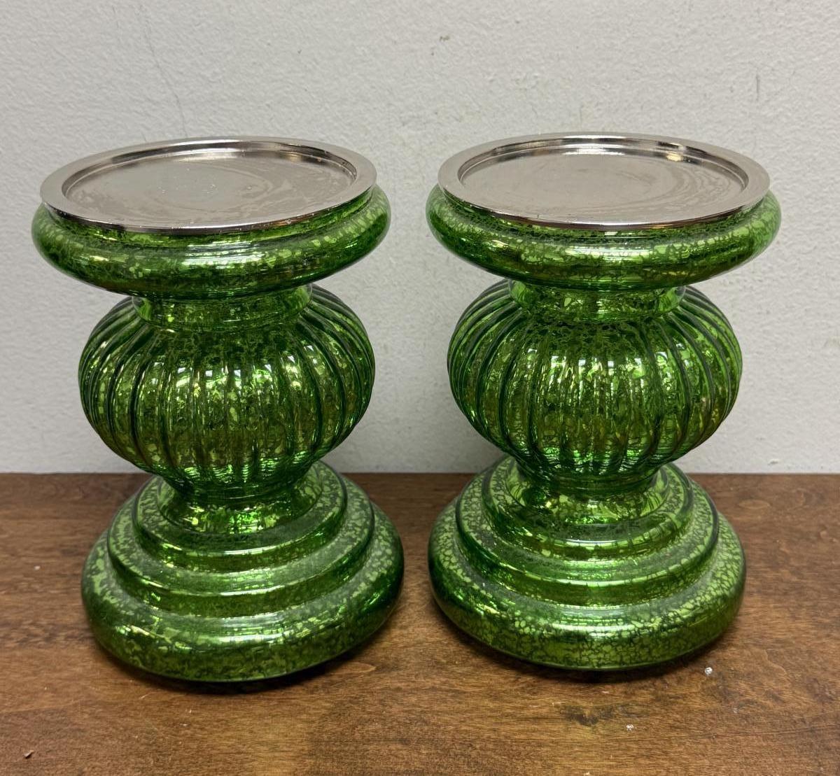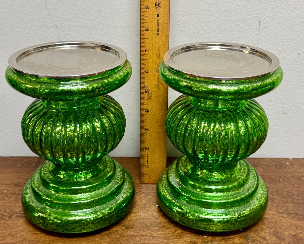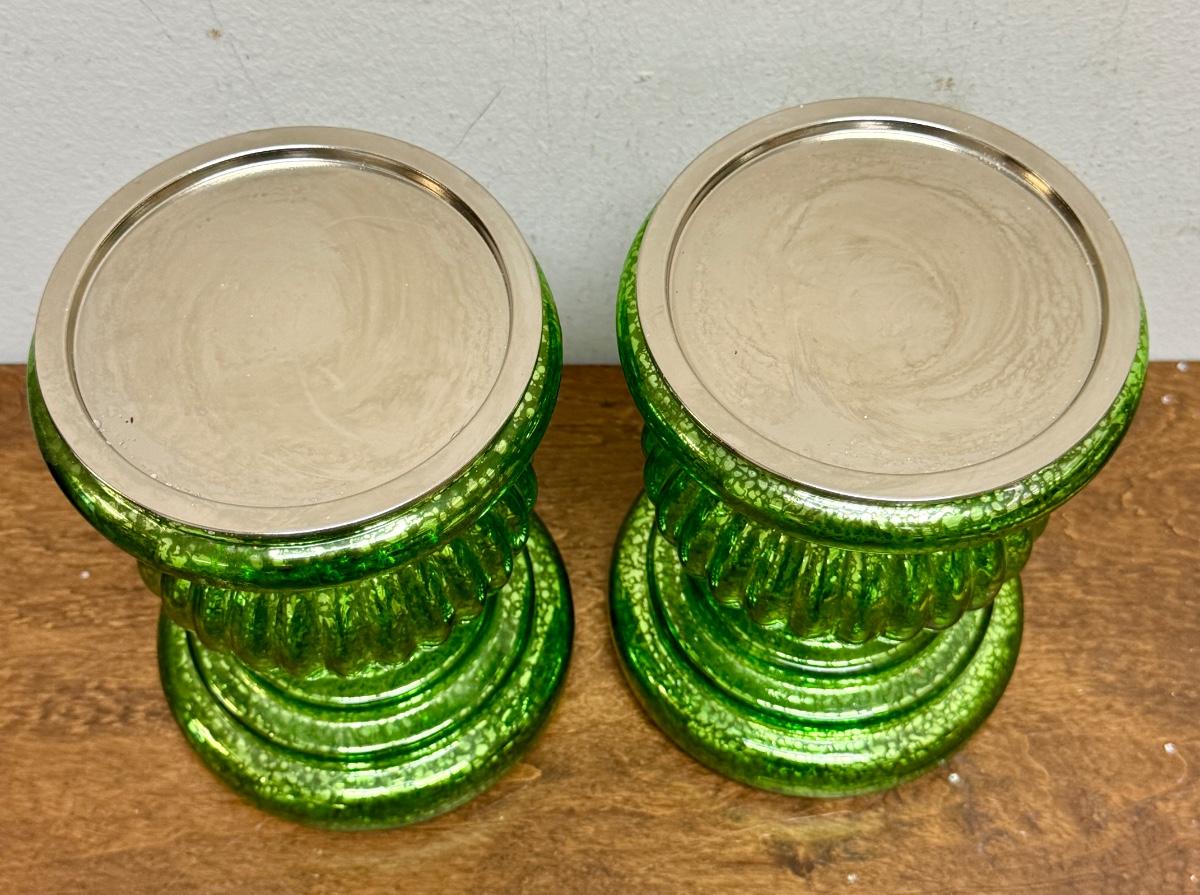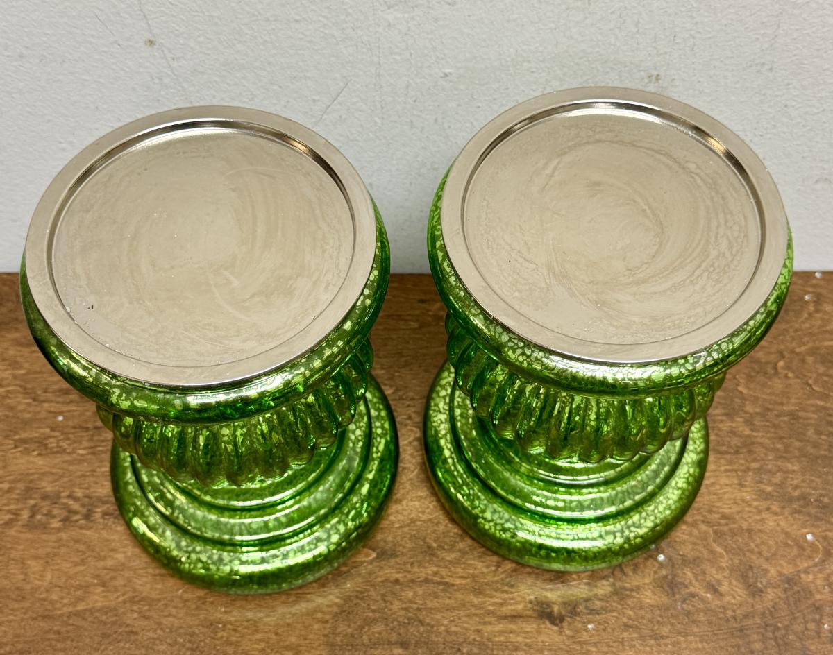Green Candleholders - pair