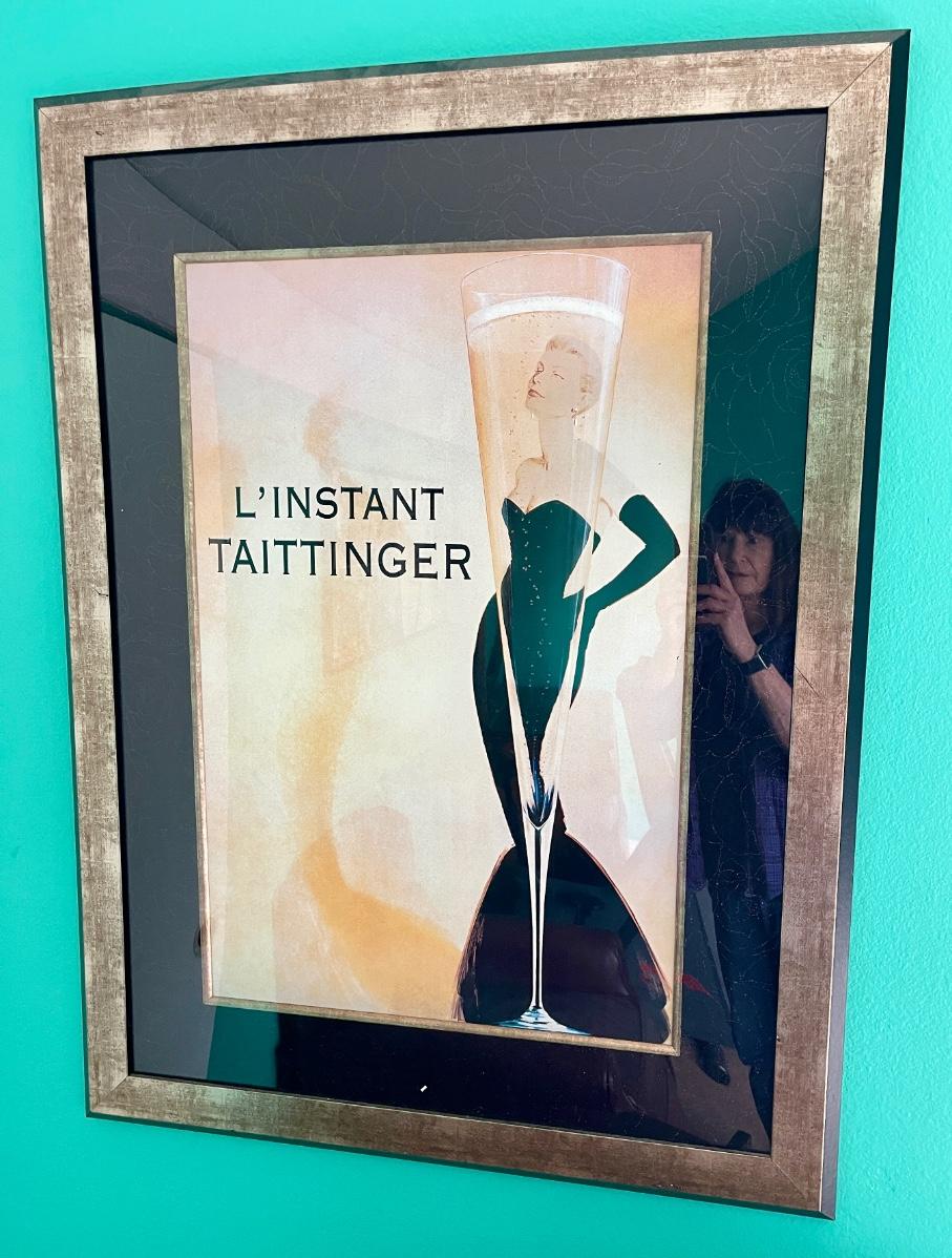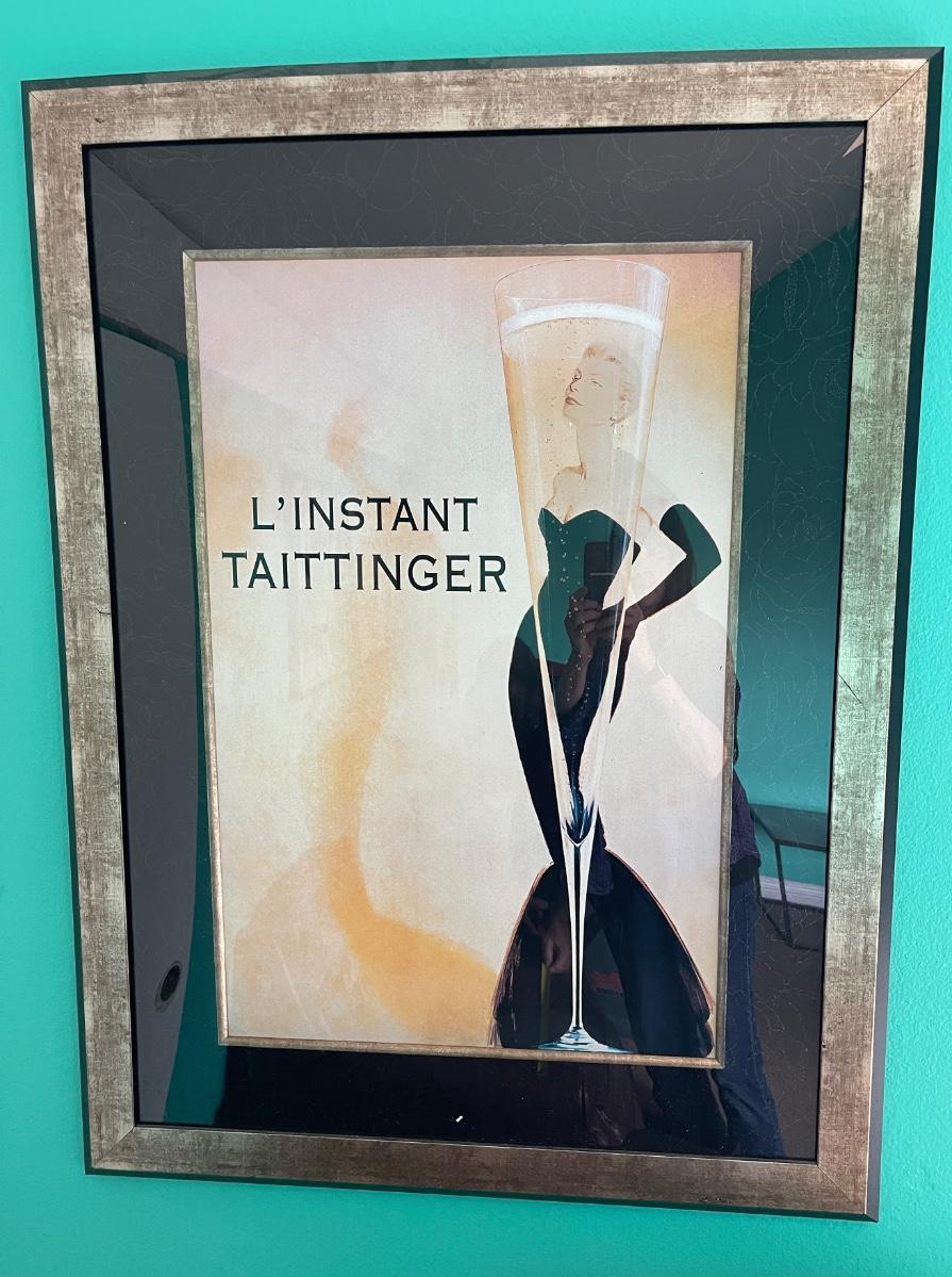 A gorgeous reproduction of L'instant Taittinger ad of Grace Kelly (others claim it is actually Catherine Deneuve). Framed size is approx. 24" x 32". Original art is from France in the 1980"s.