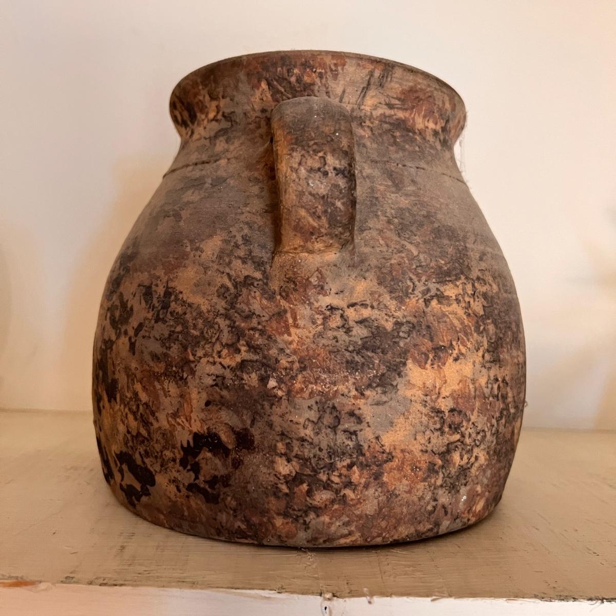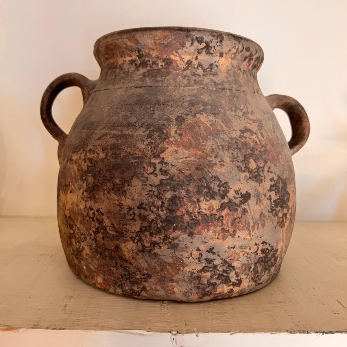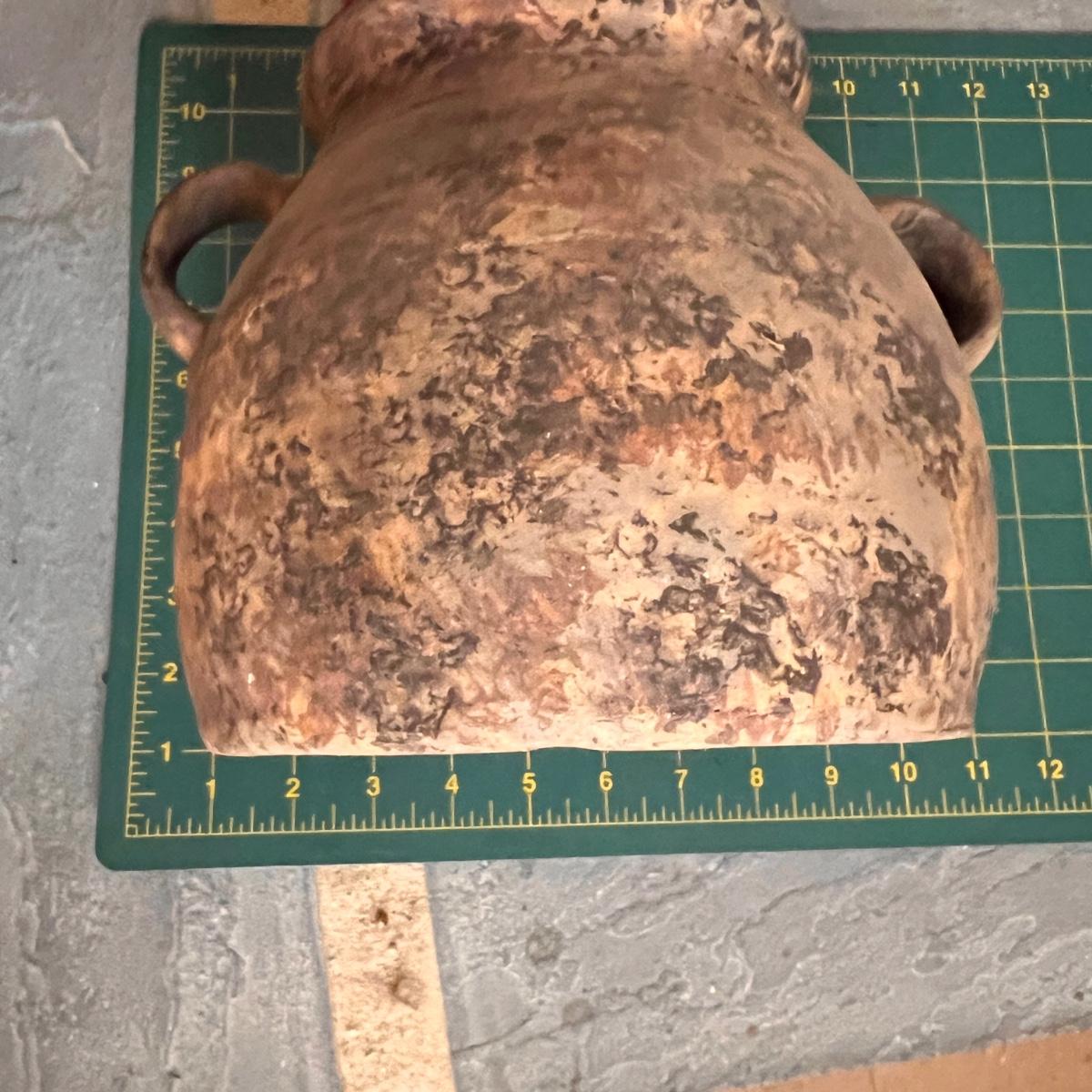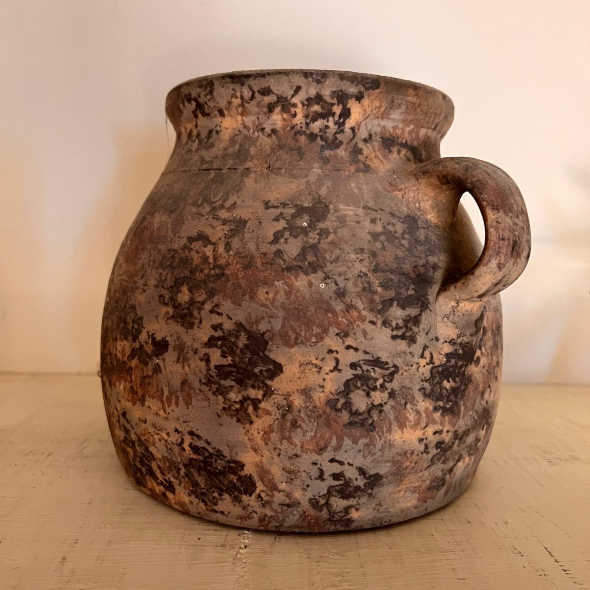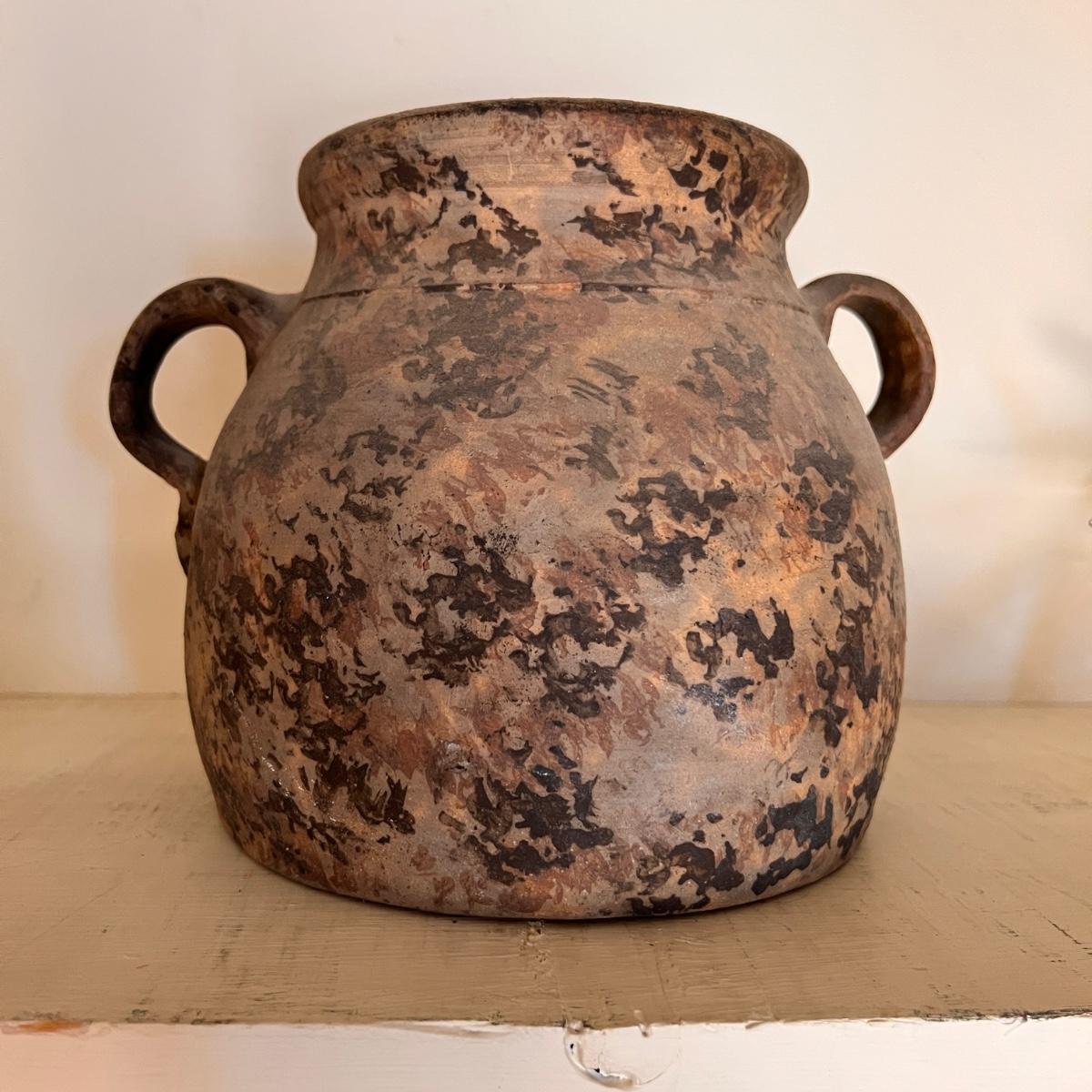 Large spongeware stoneware bean pot pottery. Early spongeware stoneware bean pot by Dan Mercer Pottery Co. in Parkersburg, West Virginia thought to be dated from the early 1900's. The pot is bisque (unglazed) & is in immaculate condition with no nicks, damage or repairs whatsoever. It measures 10” tall with a 10” diameter base.